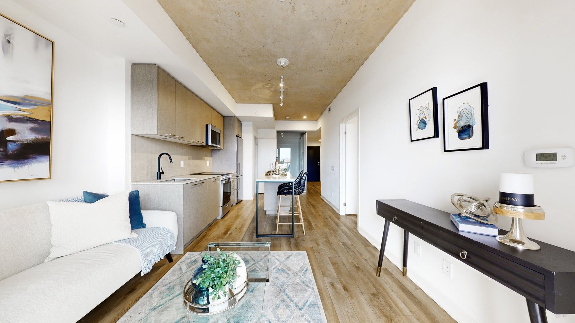 2-bedroom, 2-bathroom condo offering 684 sq. Ft. Of well-designed living space in toronto's vibrant st. Clair west neighbourhood. This bright and functional unit features a modern open-concept living and dining room, ideal for everyday living. The contemporary kitchen is equipped with stainless steel appliances with a generous island counter that provides additional prep. The primary bedroom offers a large closet and floor-to-ceiling window. Conveniently located with easy access to ttc transit and major highways. Just steps to stockyards mall and close to the junction neighbourhood offering a wide selection of dining and shopping options. Building amenities include a fully equipped fitness centre, party and lounge spaces, outdoor terrace, and secure 24-hour access.