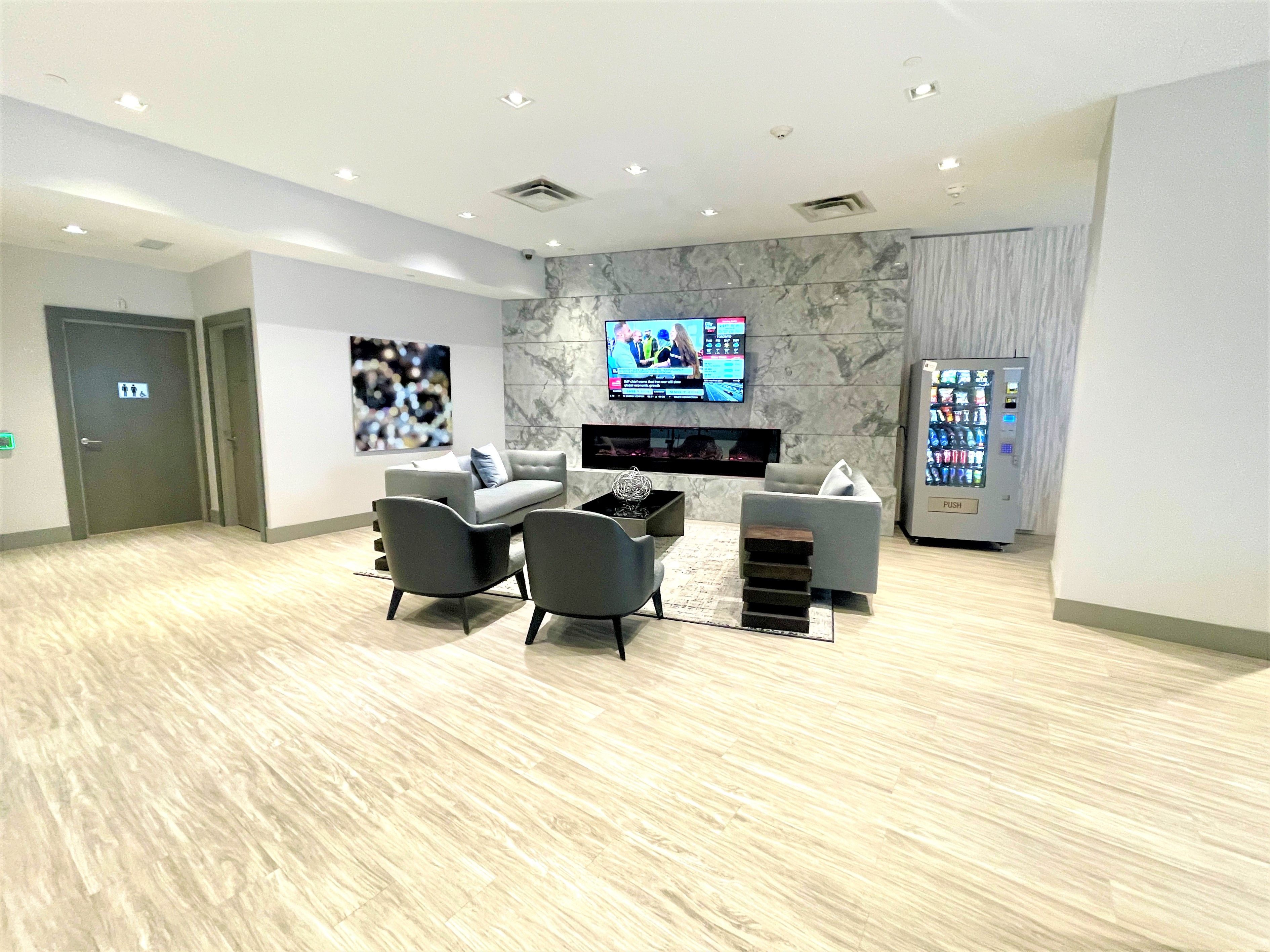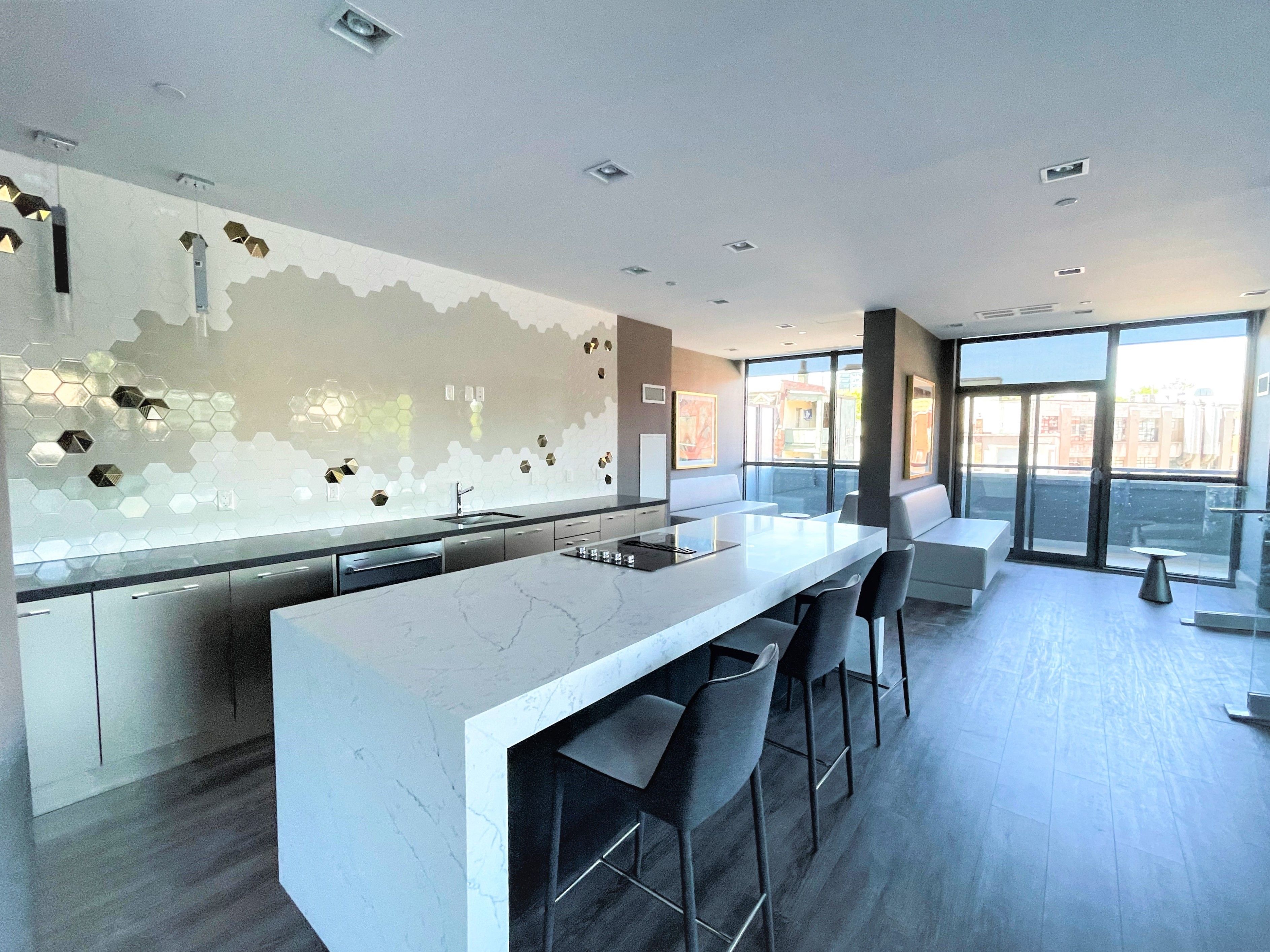 • Amenities include gym, lounge, game room, and rooftop patio.