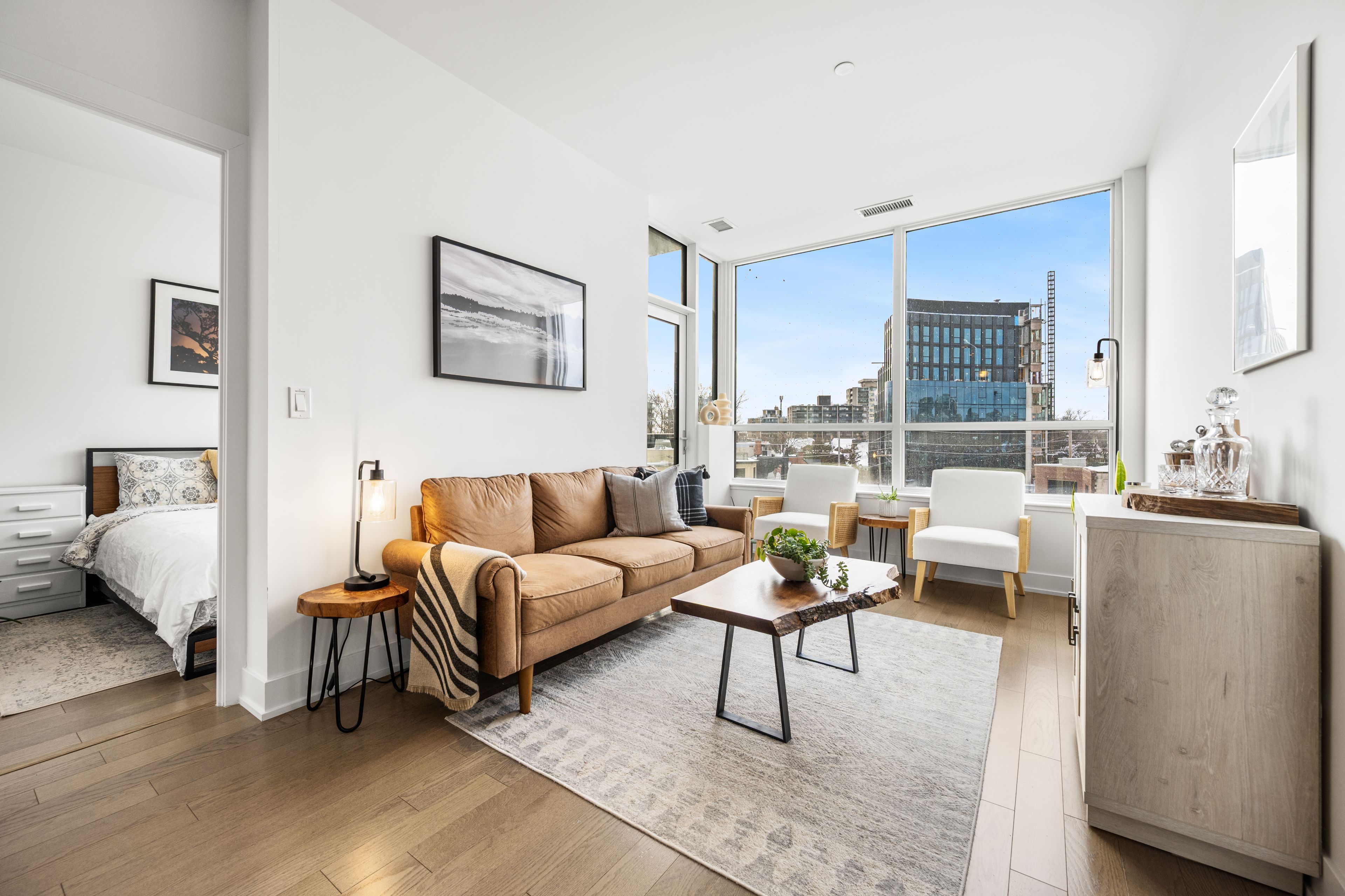 • Amenities include a fitness center, rooftop patio, and 24-hour concierge.
