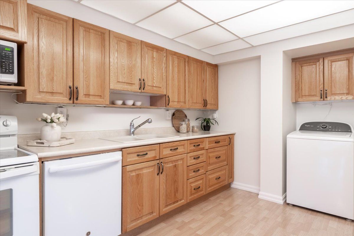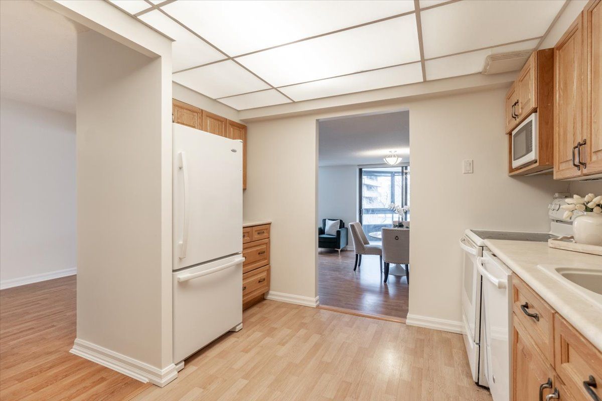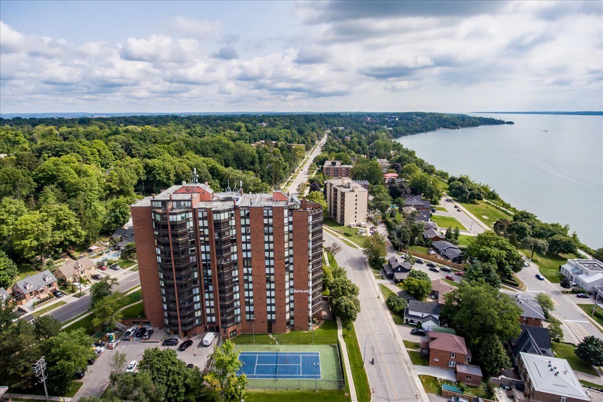 Welcome to the bayclub! Spacious 2-bedroom, 2-bathroom 1,265 square foot suite. This lovely condo has a nice bright southwestern view, overlooking the newly surfaced pickle ball court. Large kitchen with loads of cabinets, pot drawers, double sink and built in laundry area. Roomy storage room that could easily accommodate the laundry for a dedicated laundry room. Spacious living room combined with the dining, bright and cheery with warm wood tones. Both the main bathroom and the ensuite bath have been updated, ensuite has walk-in shower. Large primary bedroom with a large walk-through closet. Home has been recently painted throughout with neutral paint and newer laminate flooring in the primary bedroom. Lovely enclosed balcony, barbecues are permitted. The underground has an assigned parking space and storage locker. The bayclub is located in the highly desired quiet east end of barrie steps to kempenfelt bay, walking path, downtown, and shopping as well as the parkview centre and transit. Best variety of recreational activities of all barrie condos. Fantastic recreation facilities include one of the largest indoor pools of all the barrie condominiums, indoor squash court, outdoor tennis/pickle ball court, expansive workshop for those who are handy or want to be, exercise room, billiards room, library, sauna, party room, guest suite, potting room for plant enthusiasts. Onsite management, superintendent and cleaner. Visitor parking lot and lovely well-kept grounds. Rent includes - upgraded cable package (internet & cable tv) approximate value of $200/month, water, parking, use of all of the facilities.