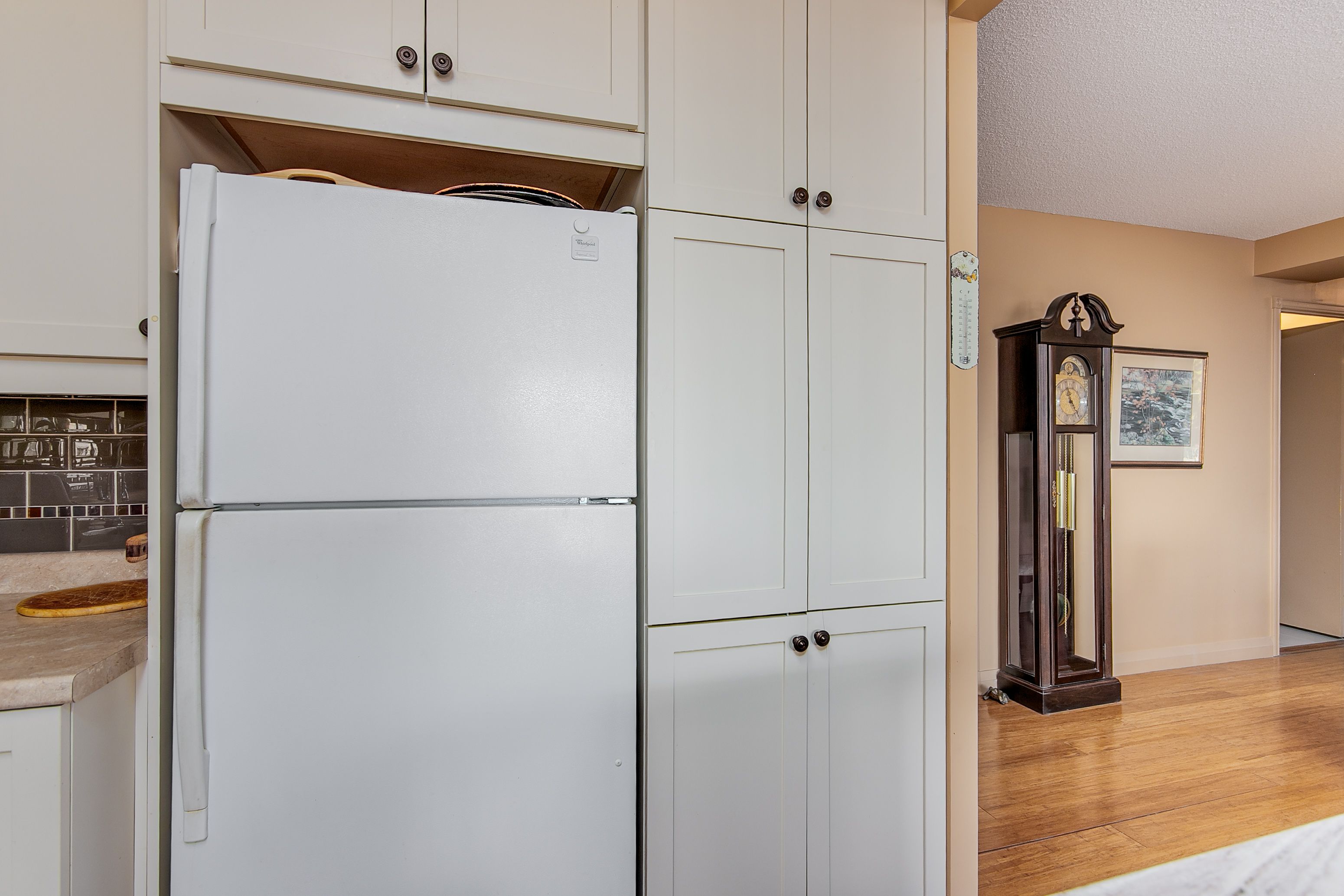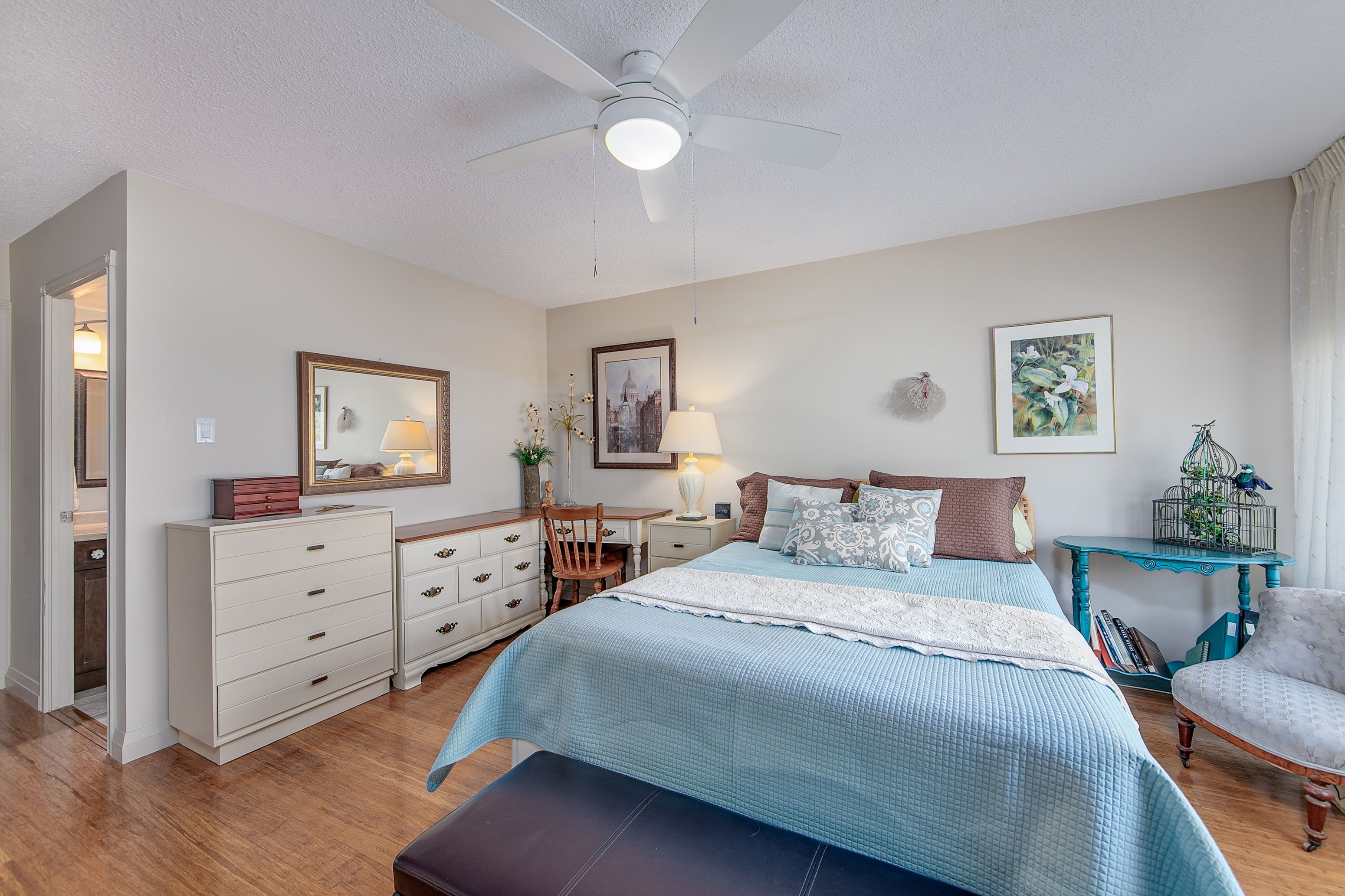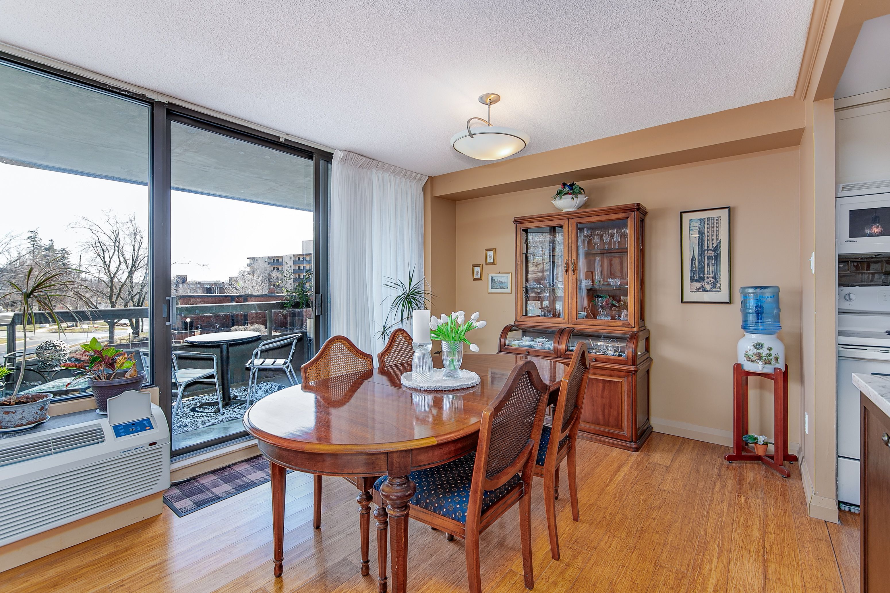 Welcome to an attractively priced opportunity at the bay club, known for its incredible amenities and location. This professionally updated home has an open concept layout with expansive windows. The eastern exposure provides morning sun and afternoon shade which makes the open air balcony pleasant all day. This bright and cheerful unit offers 1,324 square feet of living space. This 3 bedroom, 2 bath home is highlighted by bamboo floors and rich ceramics throughout resulting in a seamless flow from one room to the other. The updated kitchen will delight any chef; it has tons of cupboards and counter space and offers a huge island which works well as a breakfast bar or servery and is complimented by additional storage. The living room, dining room, kitchen and den are open concept making it a breeze to entertain. The bedrooms are generous size with large closets. One bedroom has been opened up and is a sitting room however, it could easily be reversed should the third bedroom be required. The two bathrooms are updated and lovely. There is ensuite laundry and a really handy utility room with shelves. This unit has 3 heat pumps which provides warmth in the winter and cooling in the summer. They are economical to run and keep the expenses down. To complete this package, there is an exclusive underground parking space and locker. The incredible facilities include an indoor pool, sauna, hot tub, fitness center, party room, billiards room, tennis/pickleball court, squash/ping pong room, woodworking shop, potting room where you can leave your plants when you are away, puzzle room, library, and to top it off, a wonderful guest suite with kitchenette. The club is located just outside the downtown core; it is a short walk to restaurants, groceries, art gallery, churches, shops, public transportation and the waterfront walking trails. Condo fees covers hot and cold water, parking, cable, internet, common elements, and management fees. Hydro costs are approximately $74 per month