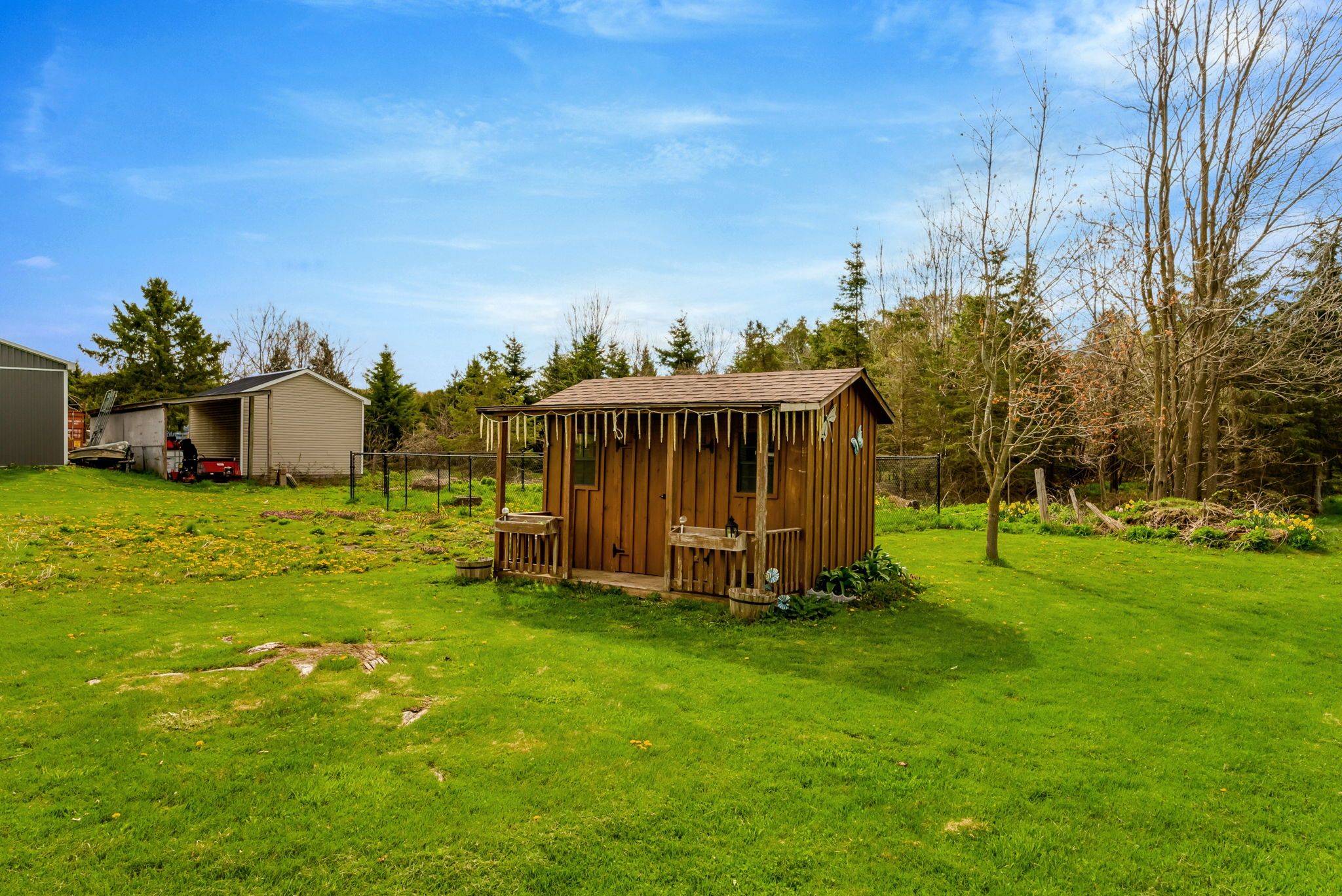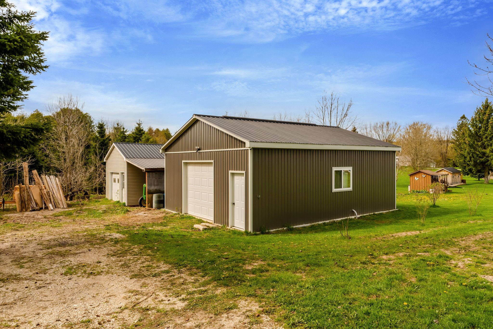 Endless possibilities on 0. 7 acres! Nestled in the charming town of formosa, just a short walk from the main street, this expansive 181. 5' x 165' property offers a unique opportunity. The land itself is great, but the multiple outbuildings truly set it apart. Imagine the possibilities with a fully equipped front garage (25'2 x 21'4) with concrete floors, insulated, gas f/a heat, a hoist, and 60 amp service ideal for mechanics or hobbyists. Go down the separate lane to a newer shop (22'11 x 28'11) with concrete floors and ample power awaits your projects, while a back shed (15'4x19'3) plus a lean-to provides additional storage. The comfortable home features two upper level bedrooms and a 4pc. Bath. The main floor offers flexibility with a potential area at the back for a third bedroom near the convenient mudroom entrance. Enjoy an updated eat-in kitchen with hardwood floors, a sizeable living room, and a bright sunporch with a walk-in storage closet. The main floor laundry room even holds the potential for a future 2pc. Bath. Benefit from modern comforts including a f/a gas furnace 2012, 90' drilled well 2013 a metal roof 2017, vinyl siding 2024, central a/c, updated vinyl windows, a hard-wired security system, and a practical walk-up basement. Negotiable: fridge, stove, washer, dryer. Contact your realtor to arrange a private viewing.