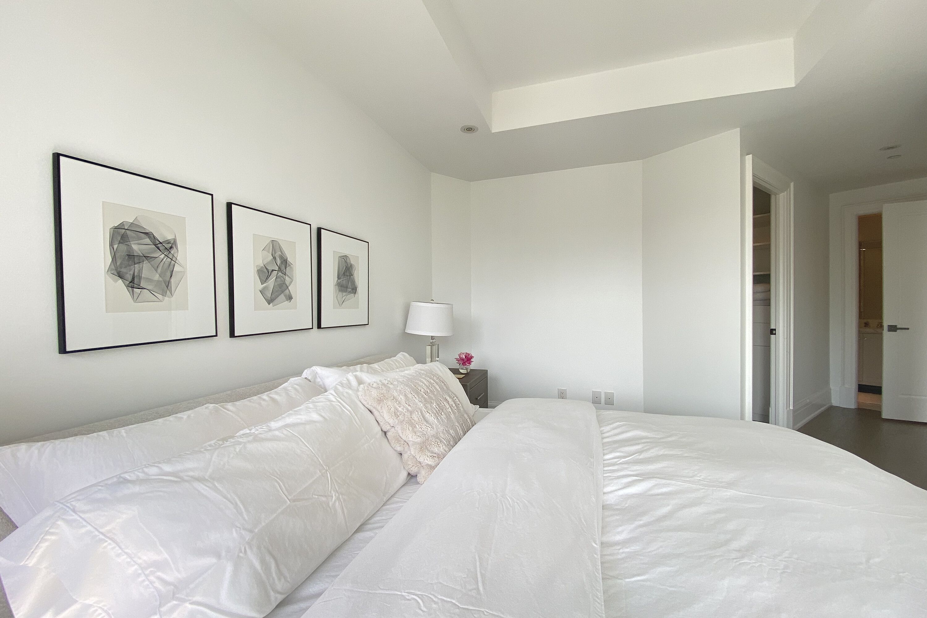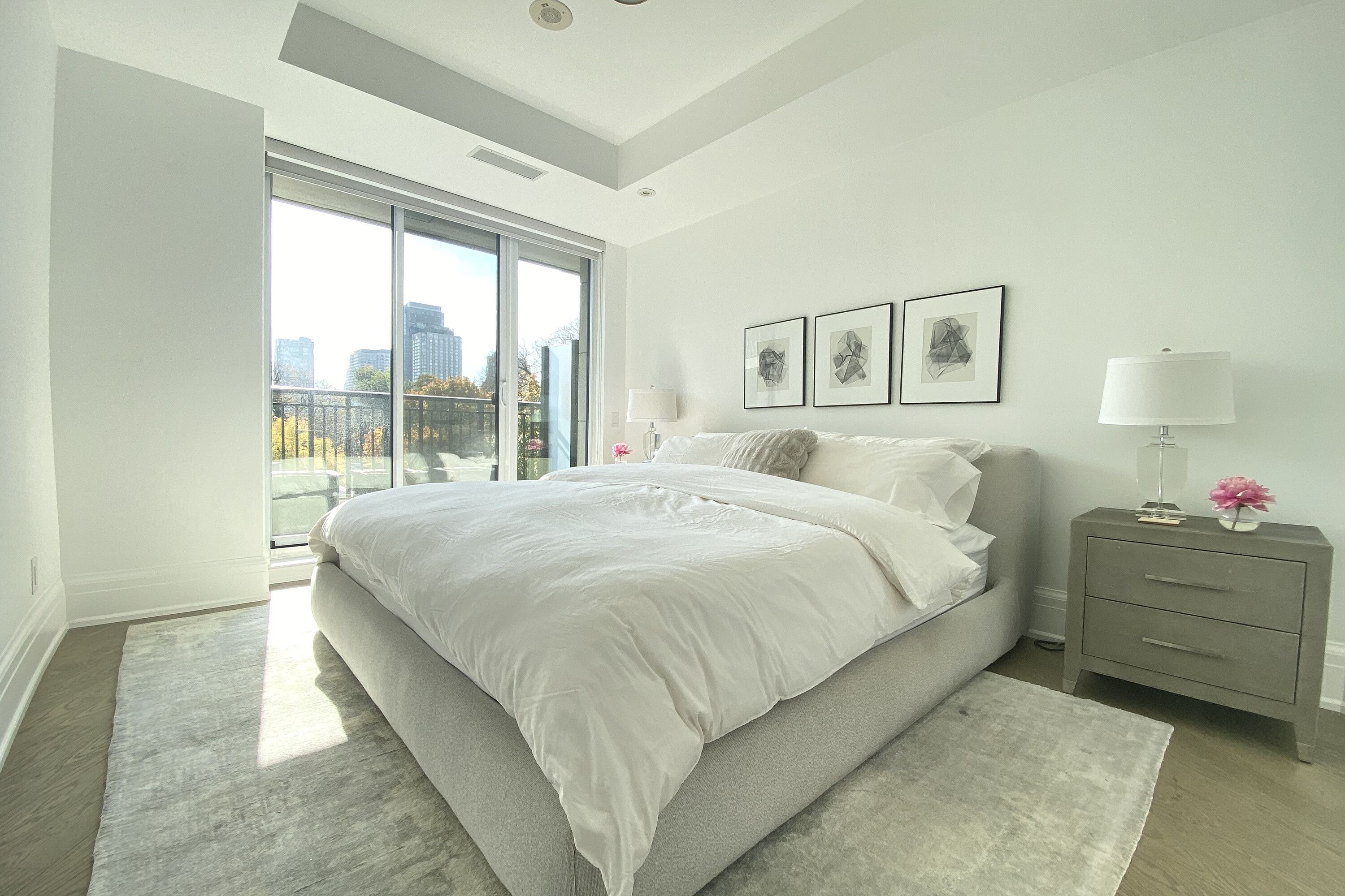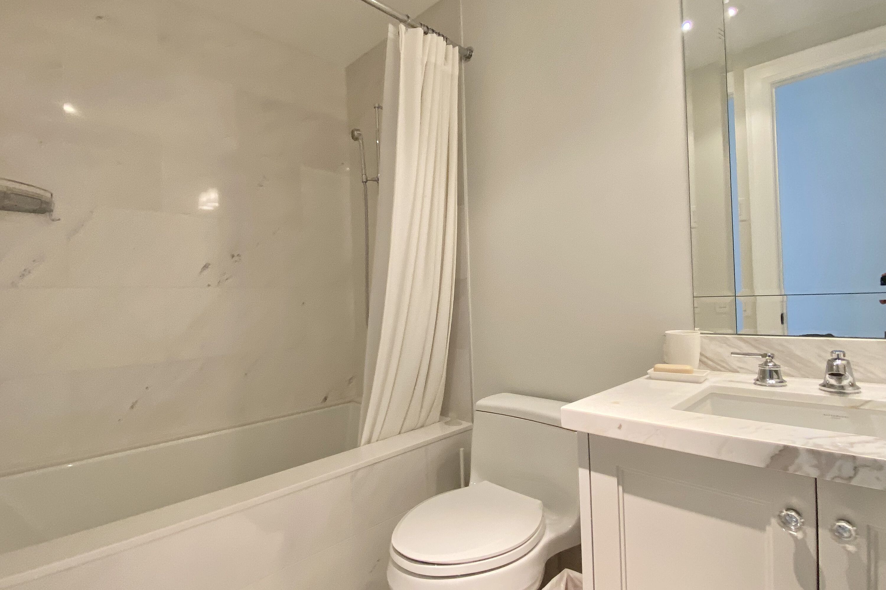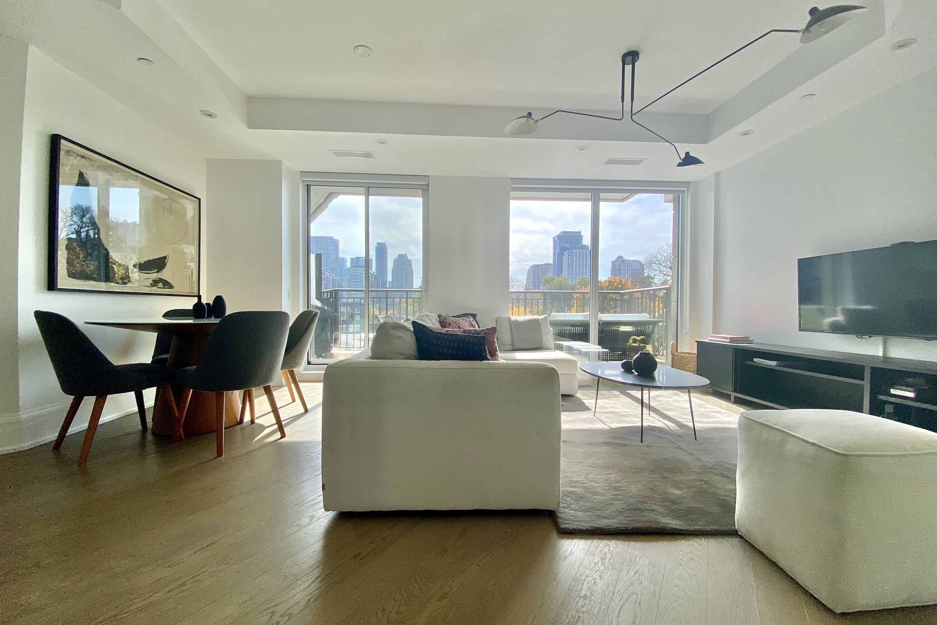 Available for immediate occupancy. This elegant suite spans 1,200 sf and features a spacious kitchen with a large countertop, high-end finishes, 9' ceilings, and fully integrated miele appliances, a dedicated laundry room. The bright, open-concept living area extends to a south-facing terrace with a gas line for bbq, offering charming views of the neighbourhood. Additional highlights include two south-facing balconies - one off the primary bedroom and another shared between the living room and second bedroom. Residents enjoy 24/7 full-service concierge, valet parking, and hotel-style amenities for an elevated living experience. Tenants to pay utilities and tenant's insurance.