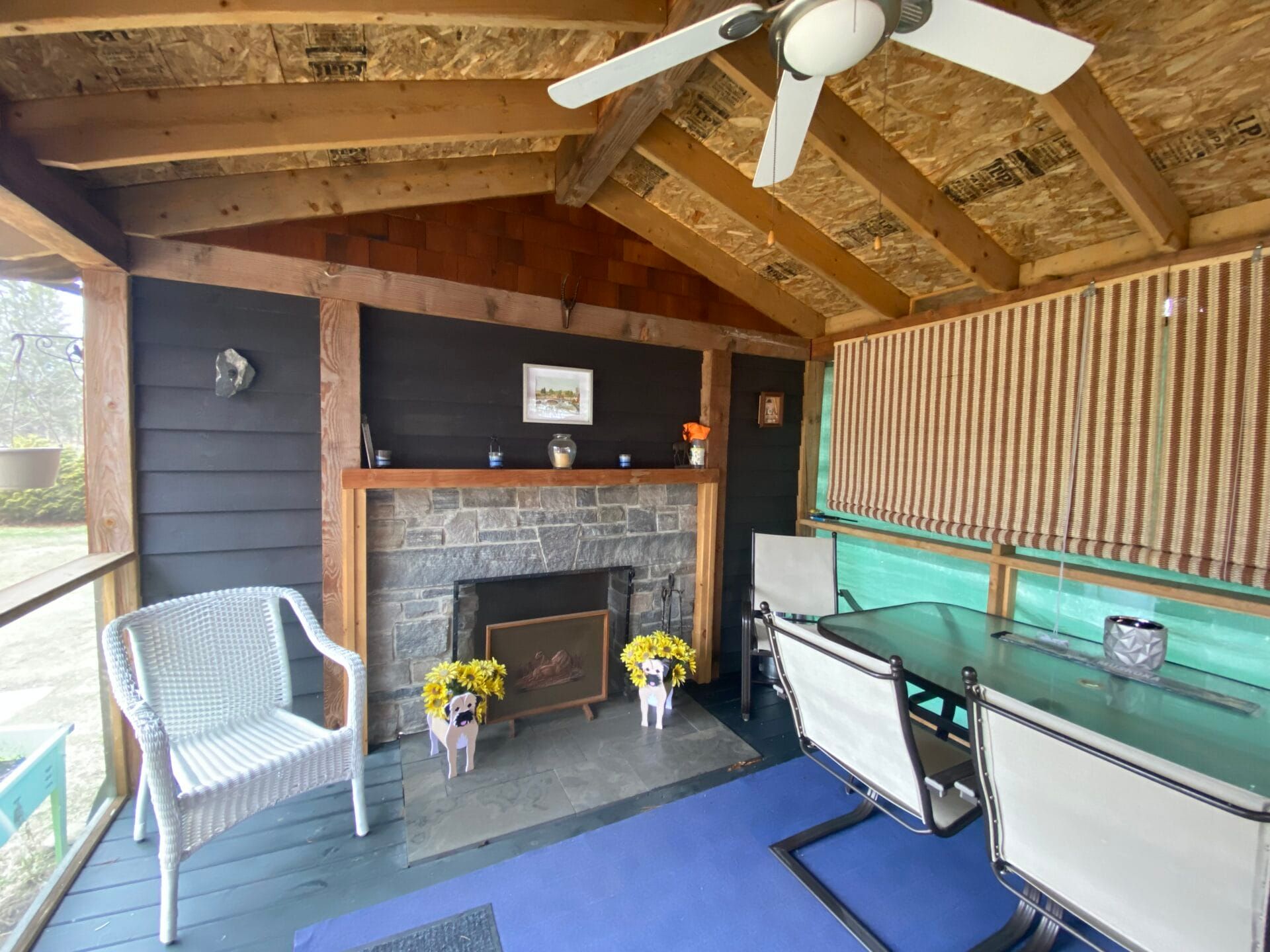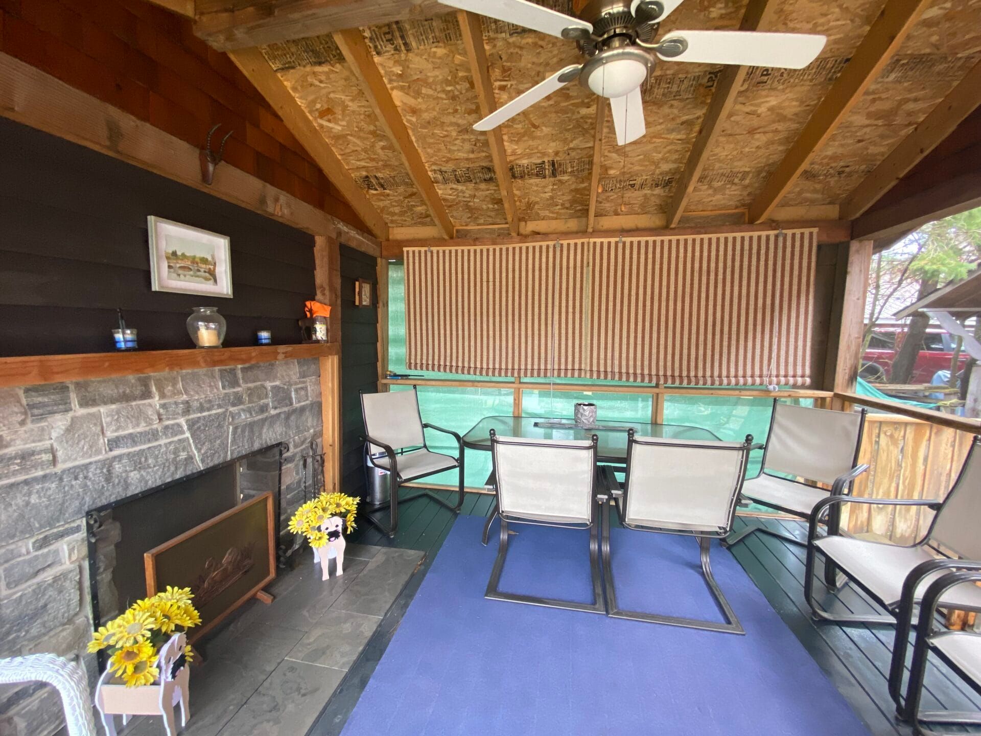 • Fully fenced yard with a Muskoka room and stone fireplace.