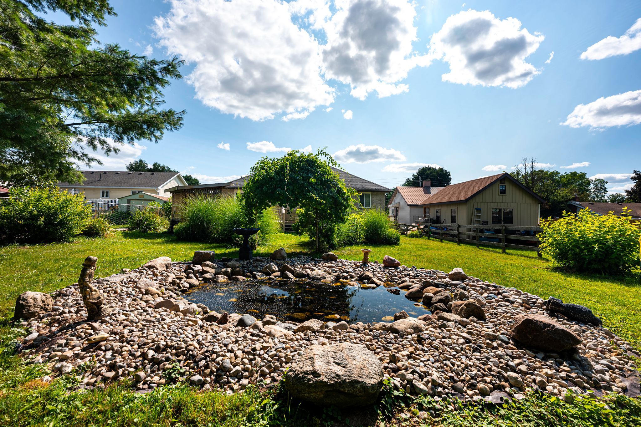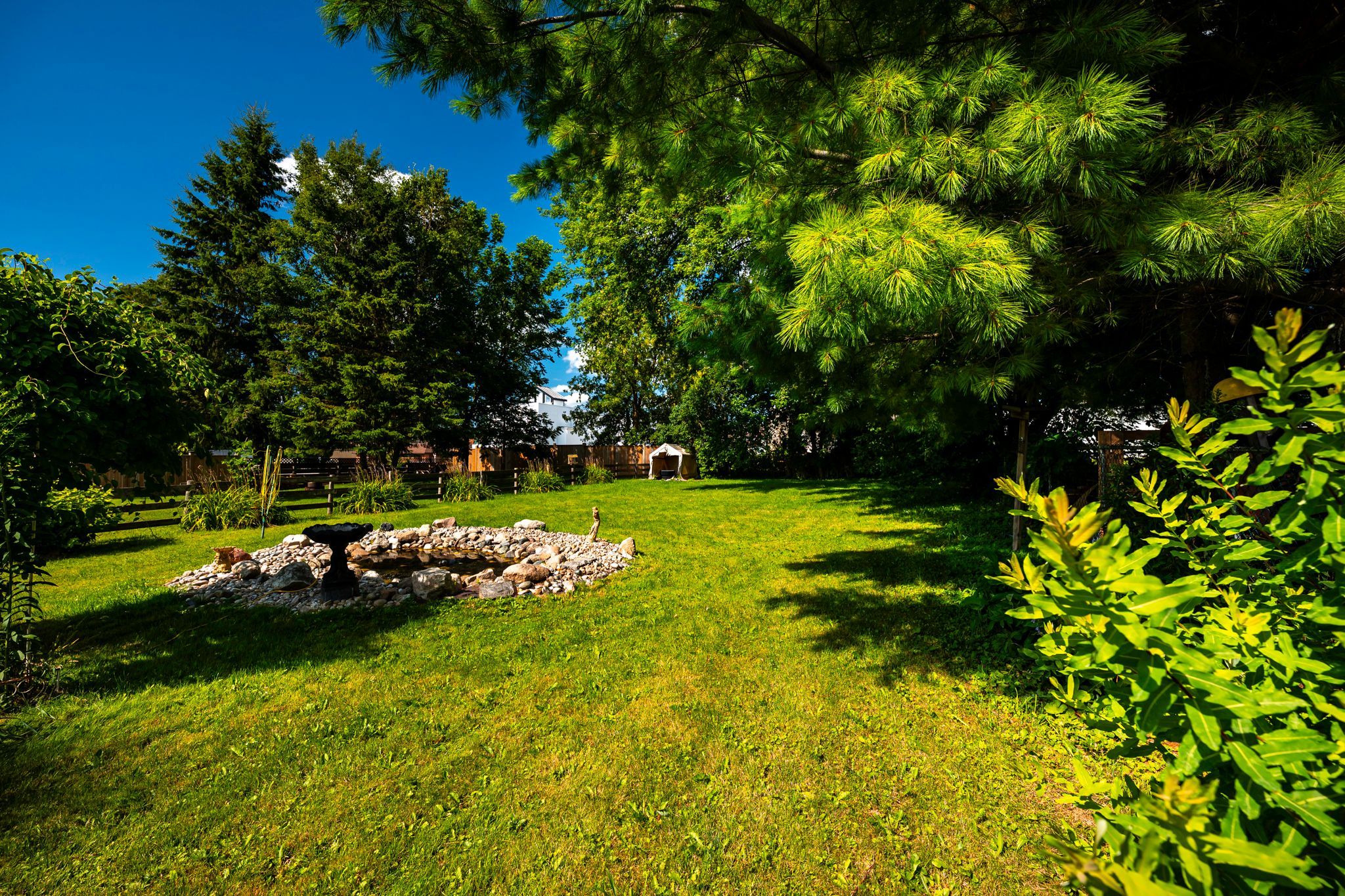 • Professionally landscaped yard with a fenced area and vibrant gardens.
