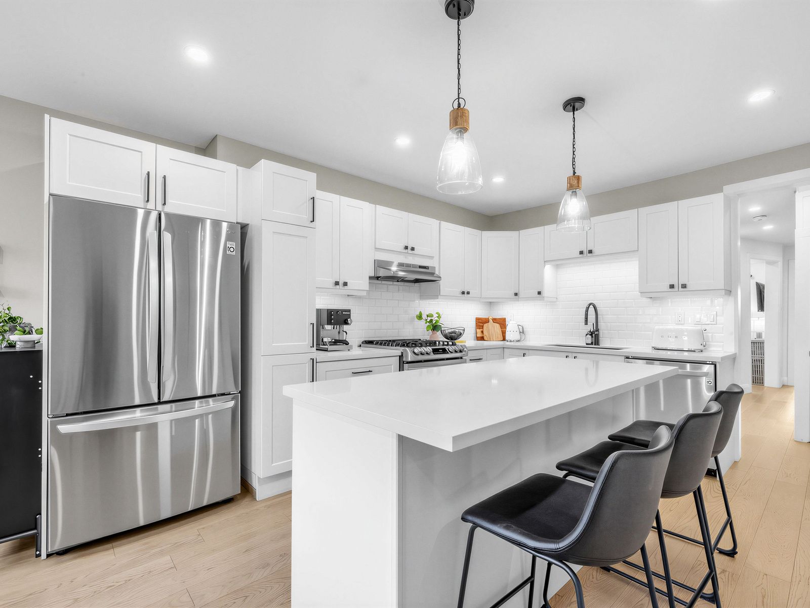 • Stunning renovated kitchen with a large island and high-end appliances.
