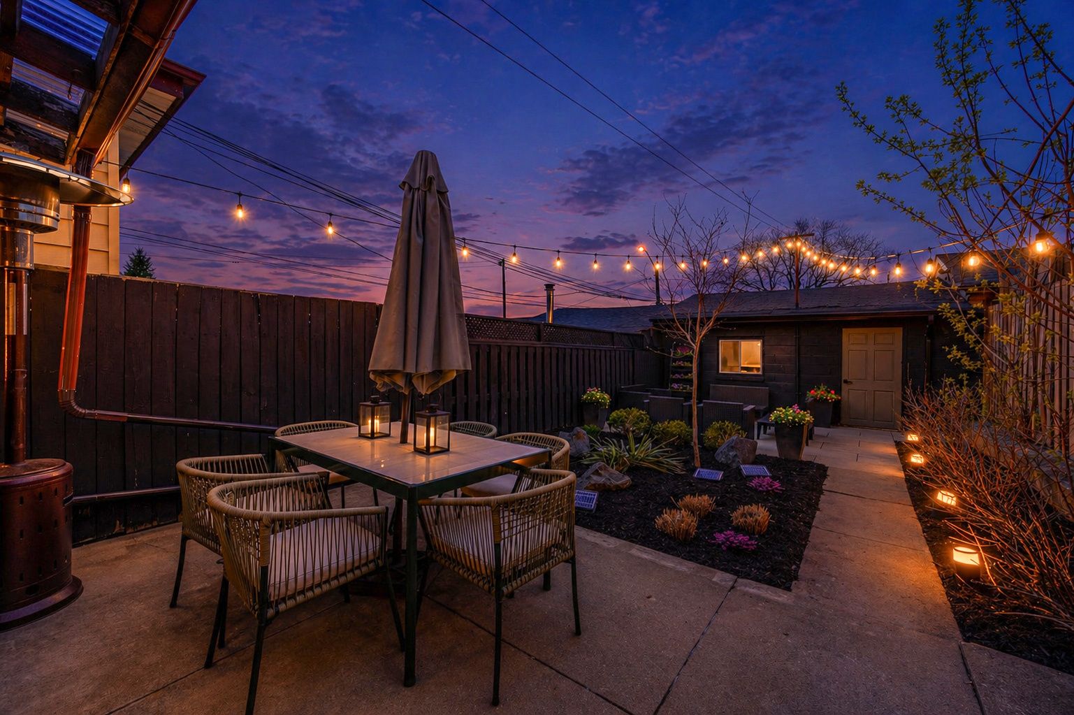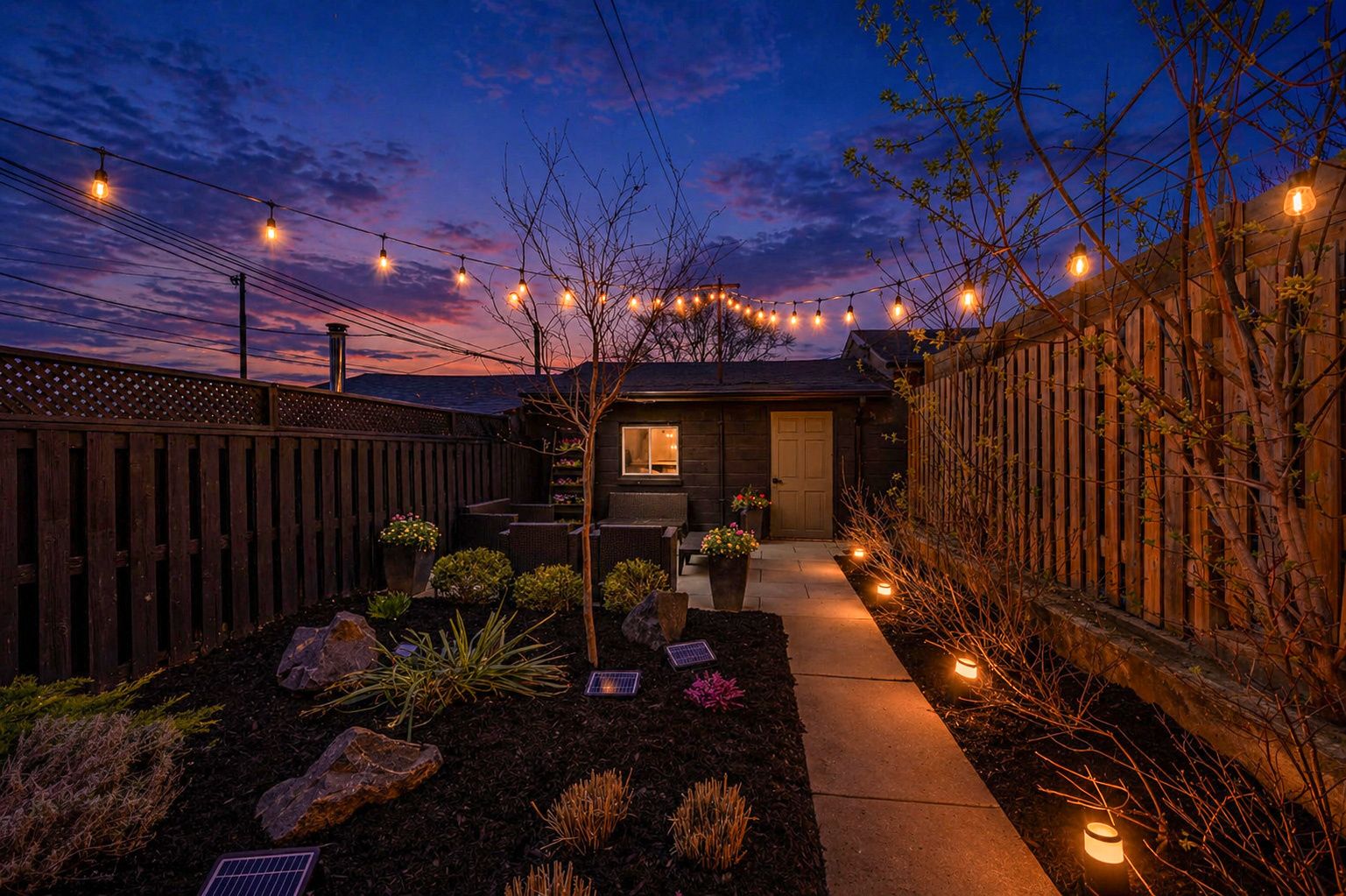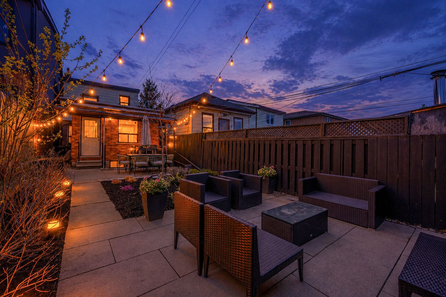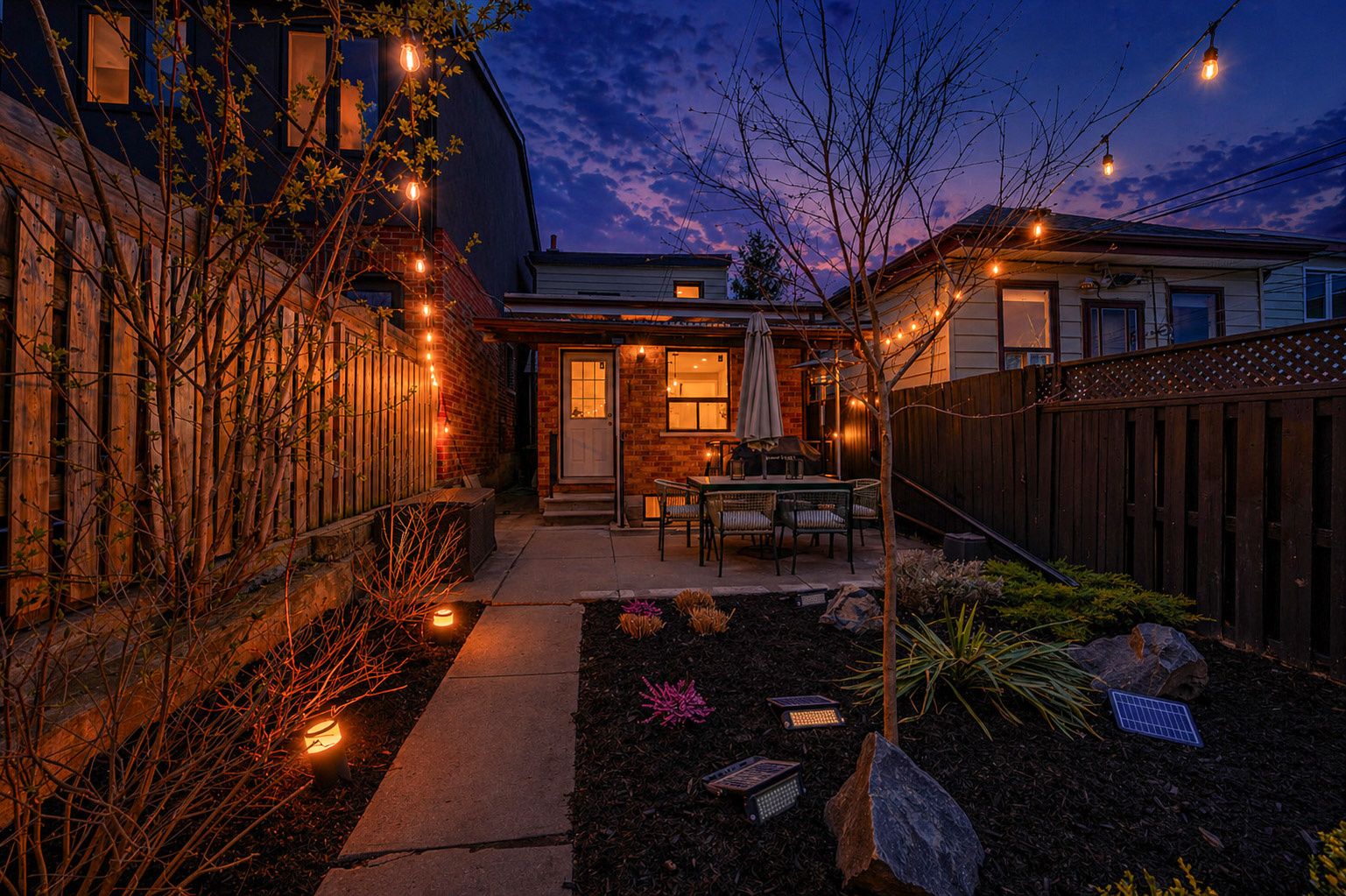 • Private backyard perfect for low-maintenance outdoor living and hosting.