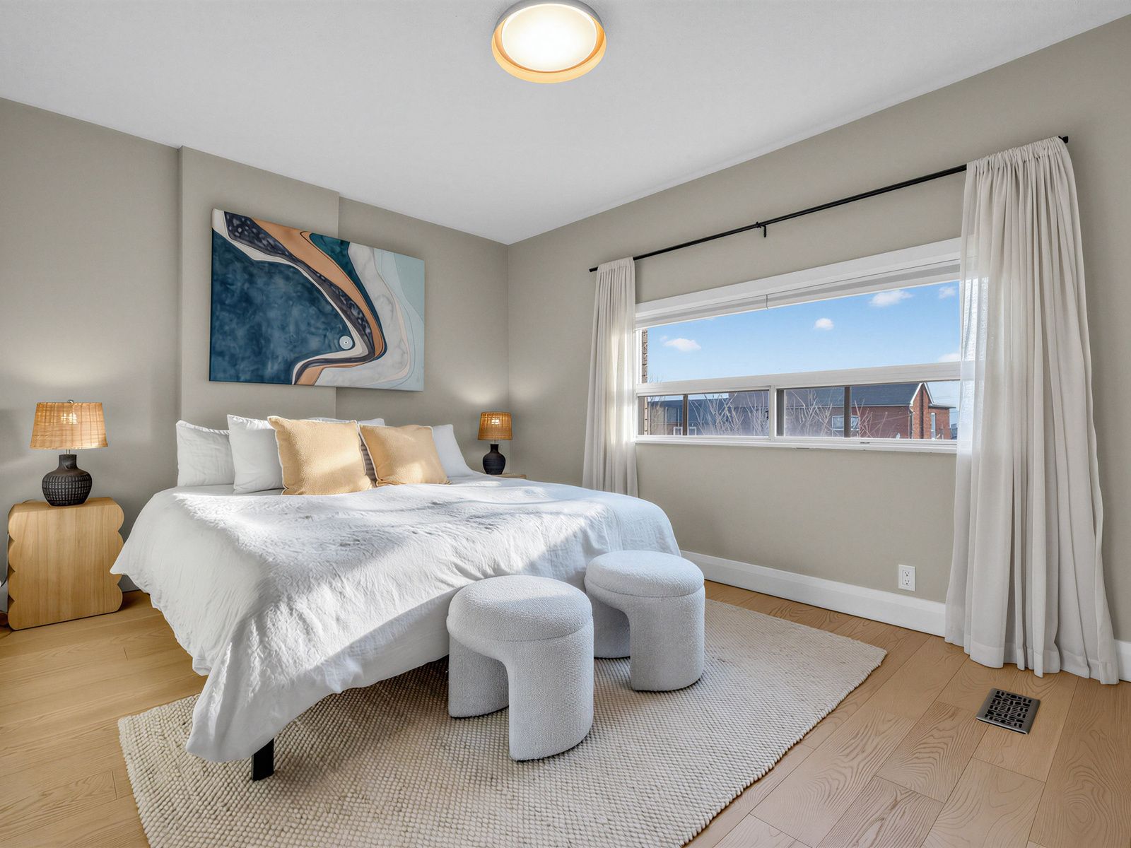 • Bright living and dining area filled with warm afternoon light.