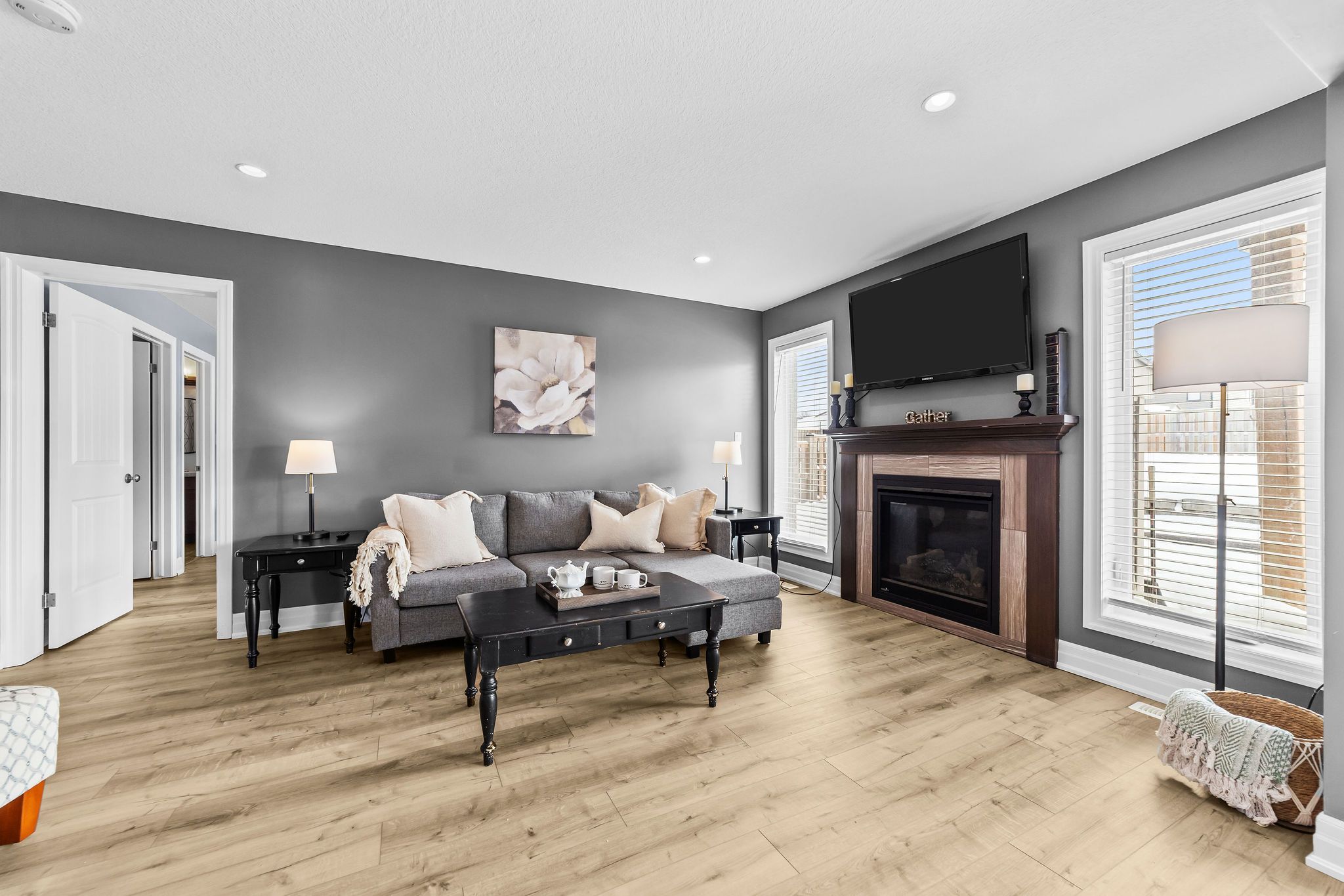 • Main level features a cozy family room with a gas fireplace.