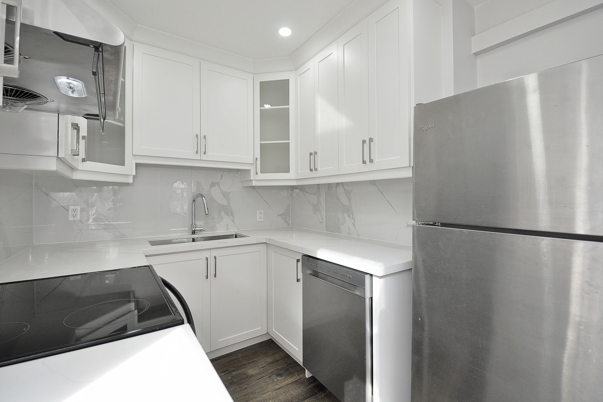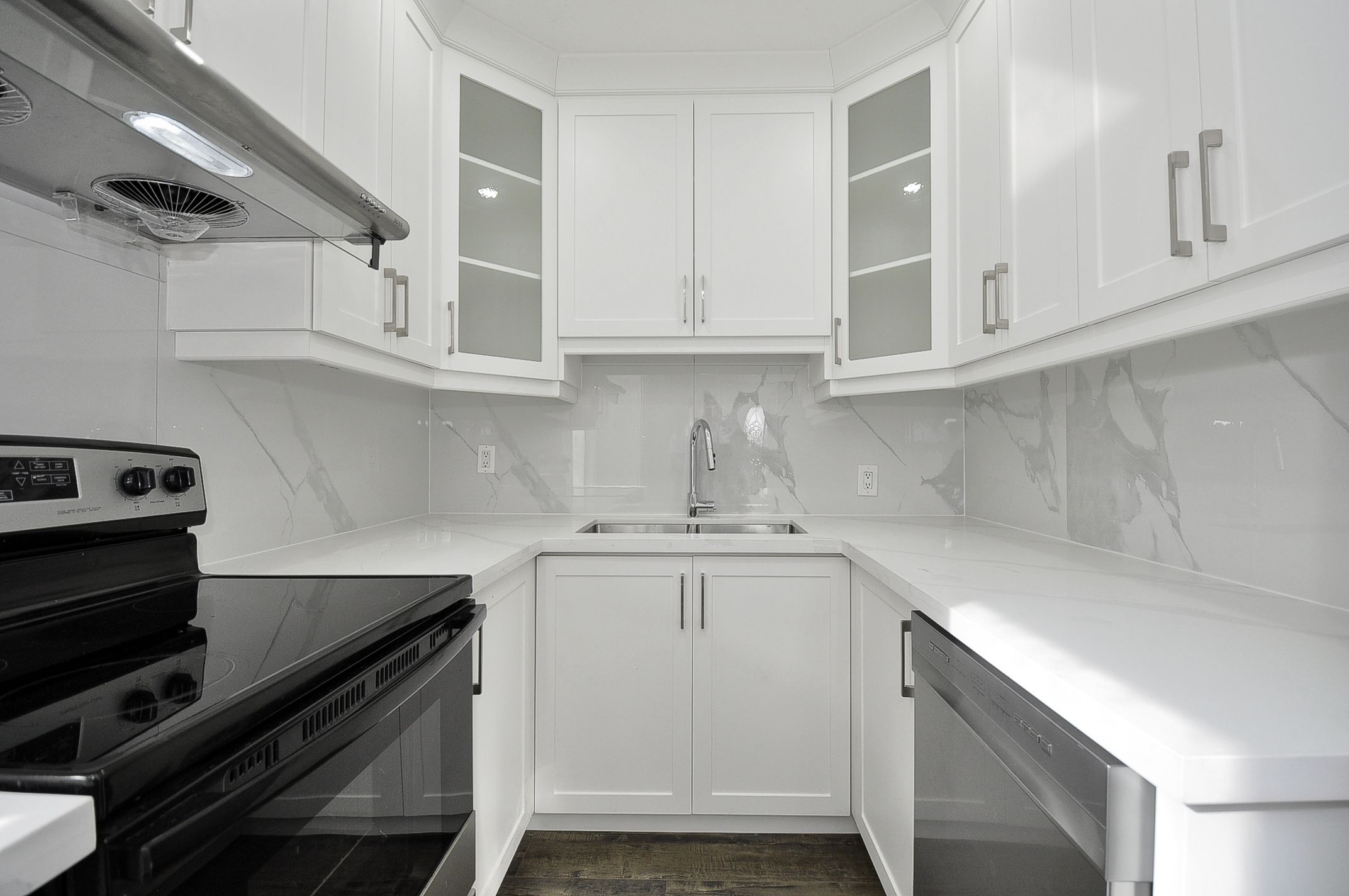 • Spacious living/dining area and modern kitchen with quartz countertops.