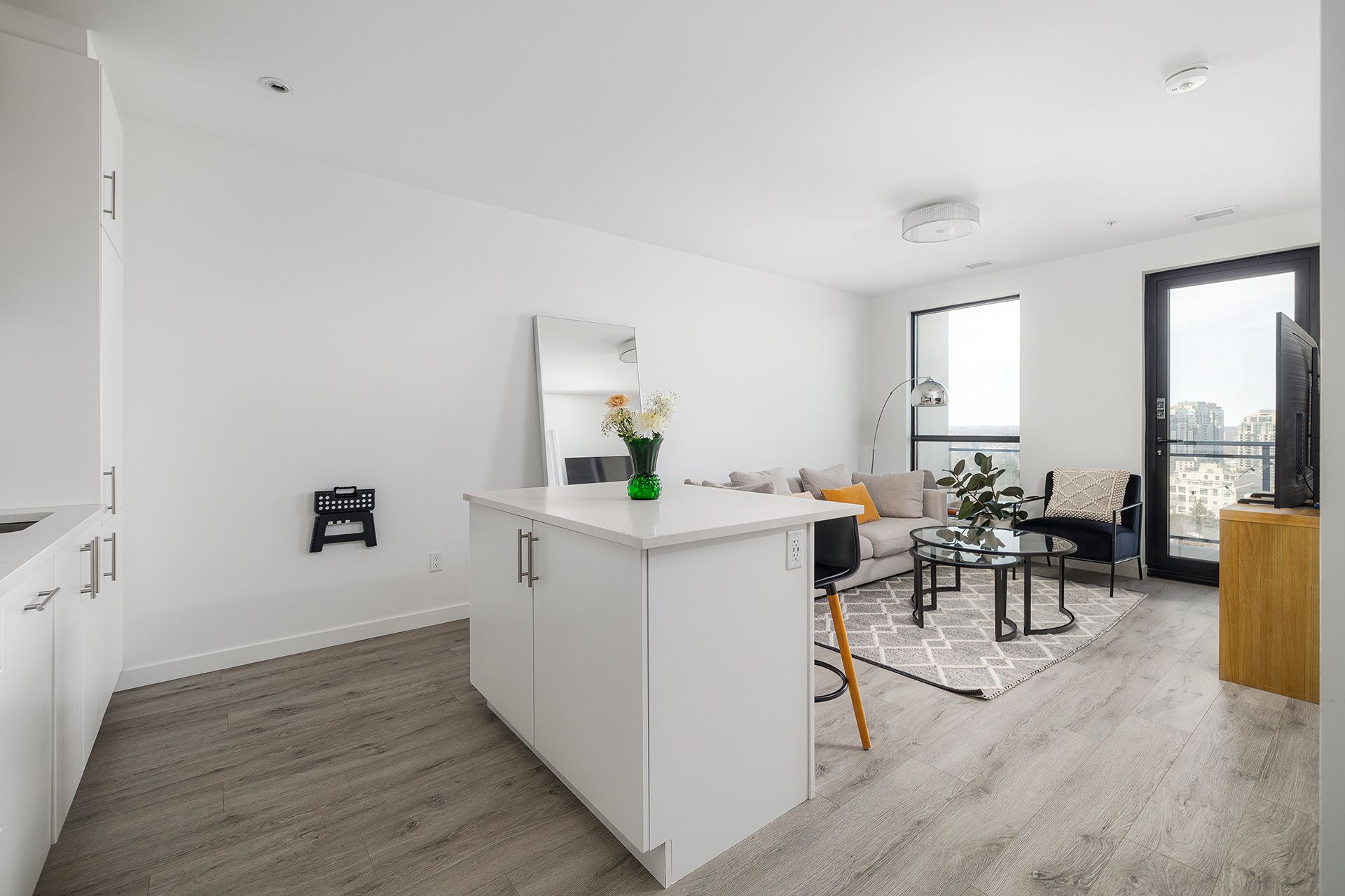 Take in breathtaking sunset views from your spacious private balcony on the 17th floor of circa 1877, one of uptown waterloo's most sought-after condos. With 9' ceilings and expansive windows, this modern, bright unit offers a stylish open-concept living space. The european-inspired kitchen features built-in appliances, quartz countertops, a gooseneck faucet, a subway-tile backsplash, and an island perfect for entertaining. The luxurious bathroom boasts porcelain tiles, quartz counters, and a rainfall shower with a glass enclosure. Additional highlights include an in-suite washer and dryer, smart lighting, and a custom wall-to-wall closet with a sliding barn door. Circa 1877 offers top-tier amenities, including a rooftop pool with a terrace, bbq and cabanas, a fitness center and yoga room, a modern co-working space with meeting rooms, guest suites, secure bike storage, and a restaurant/bar. The building is monitored by cameras and features fob access for added security. An onsite locker and optional parking rental add convenience. Located on king street, you're just steps from the lrt, shopping, dining, boutique fitness studios, and healthcare services. Minutes away, you'll find waterloo's tech hub, waterloo park, and the iron horse trail-perfect for biking and running. This prime location makes it an ideal choice for young professionals. Don't miss this incredible opportunity to live in the heart of uptown waterloo-schedule your tour today!