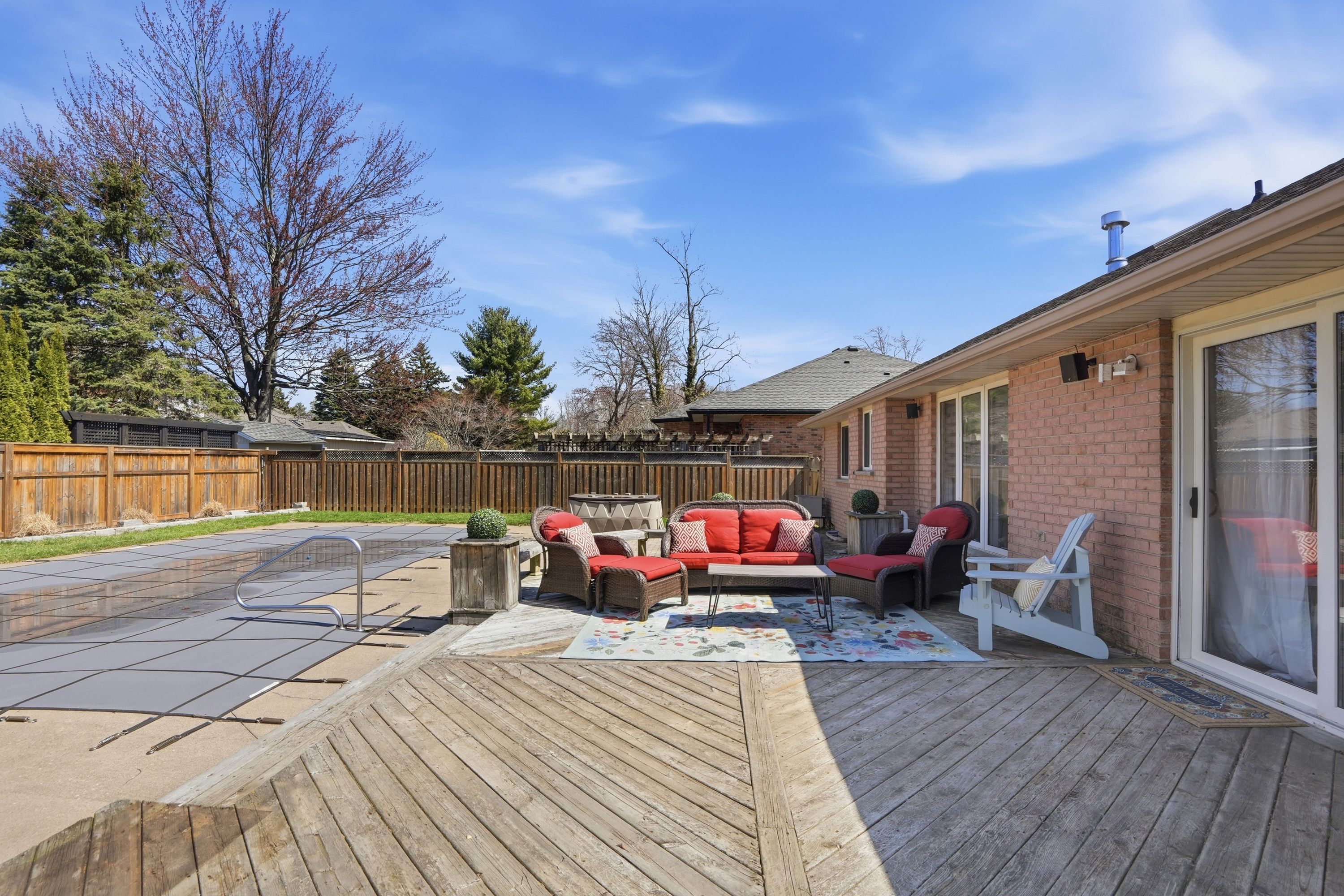 • Fully fenced backyard features an in-ground pool and deck for summer fun.