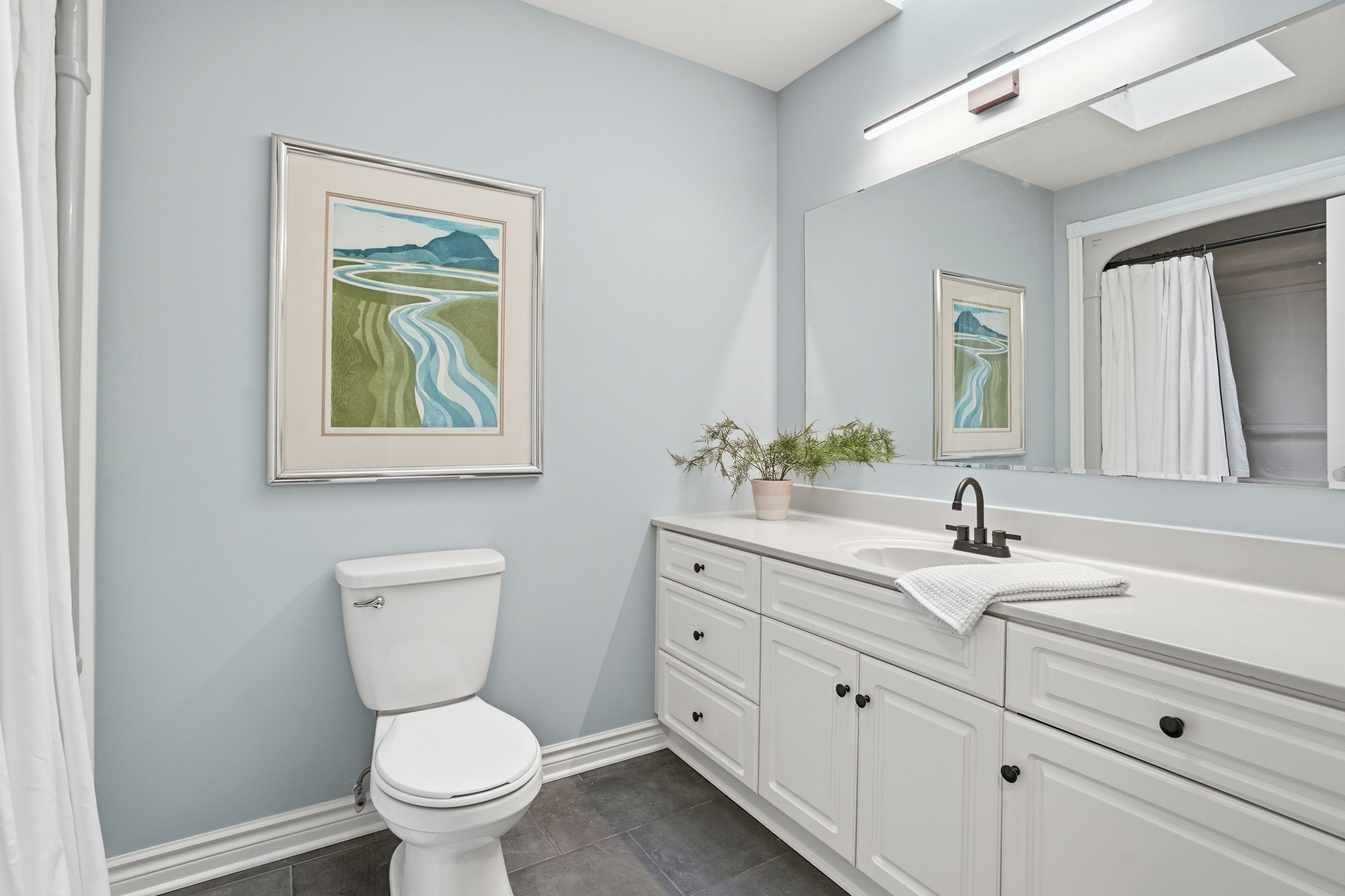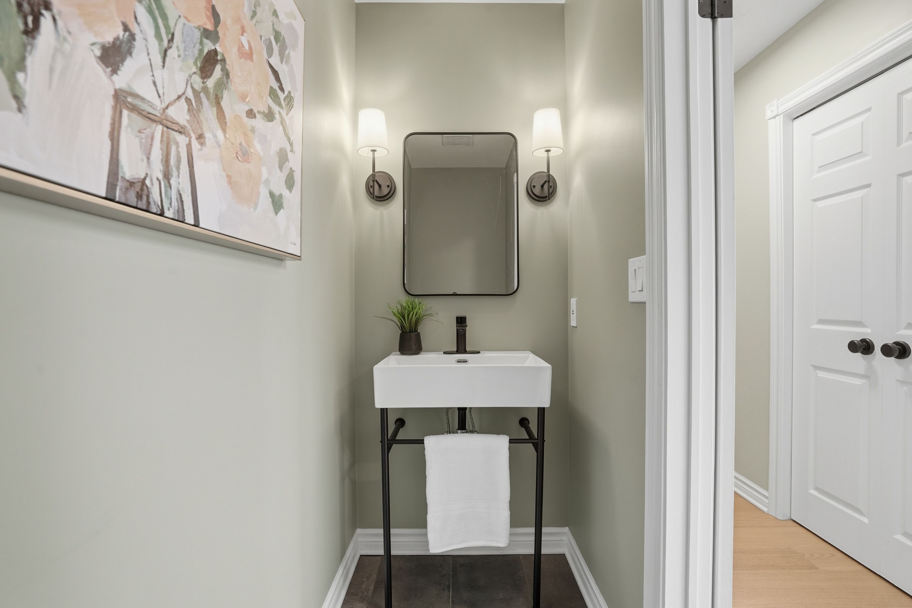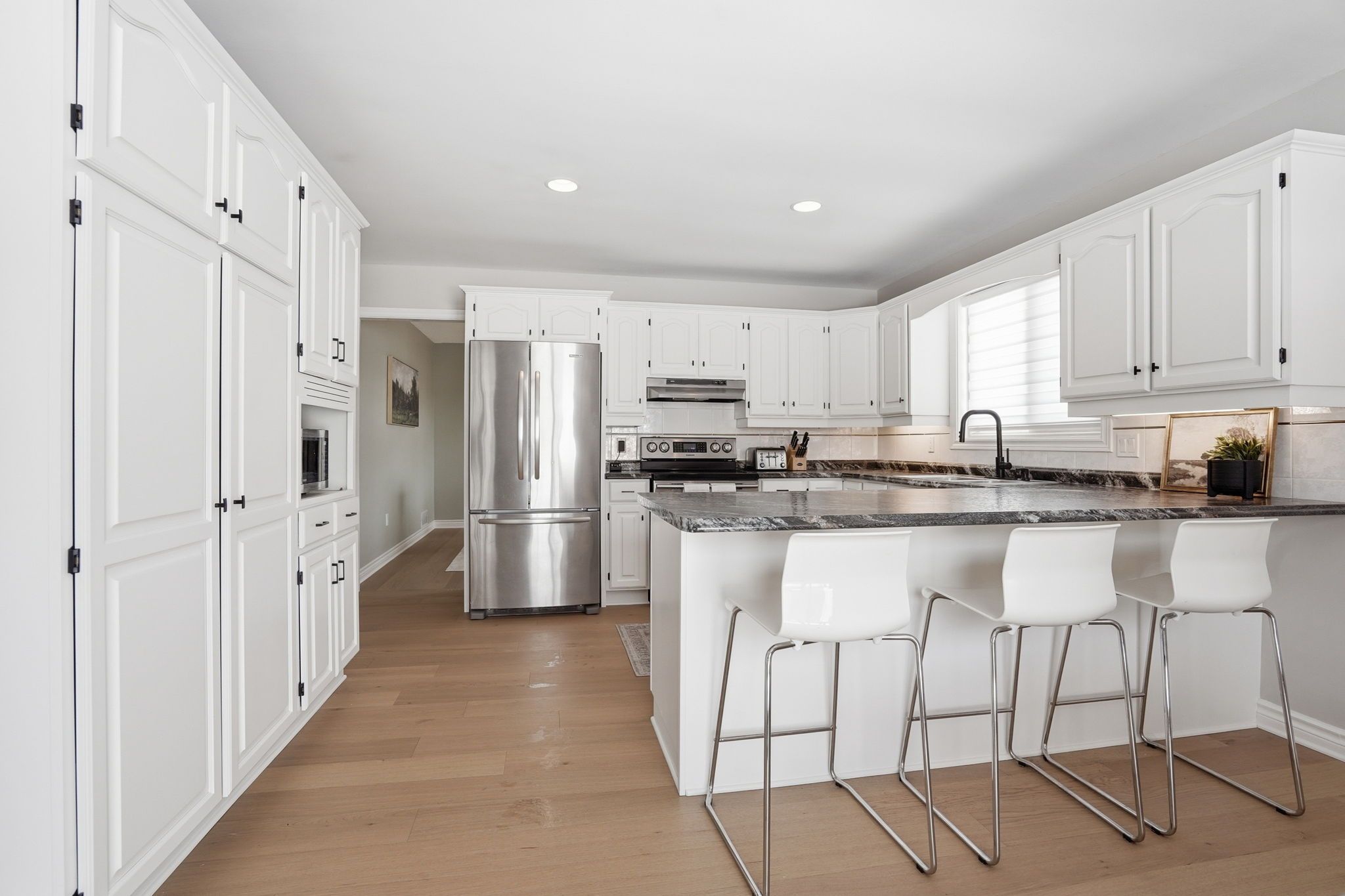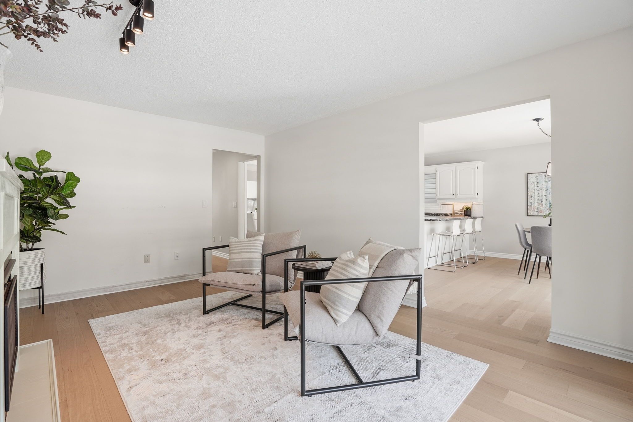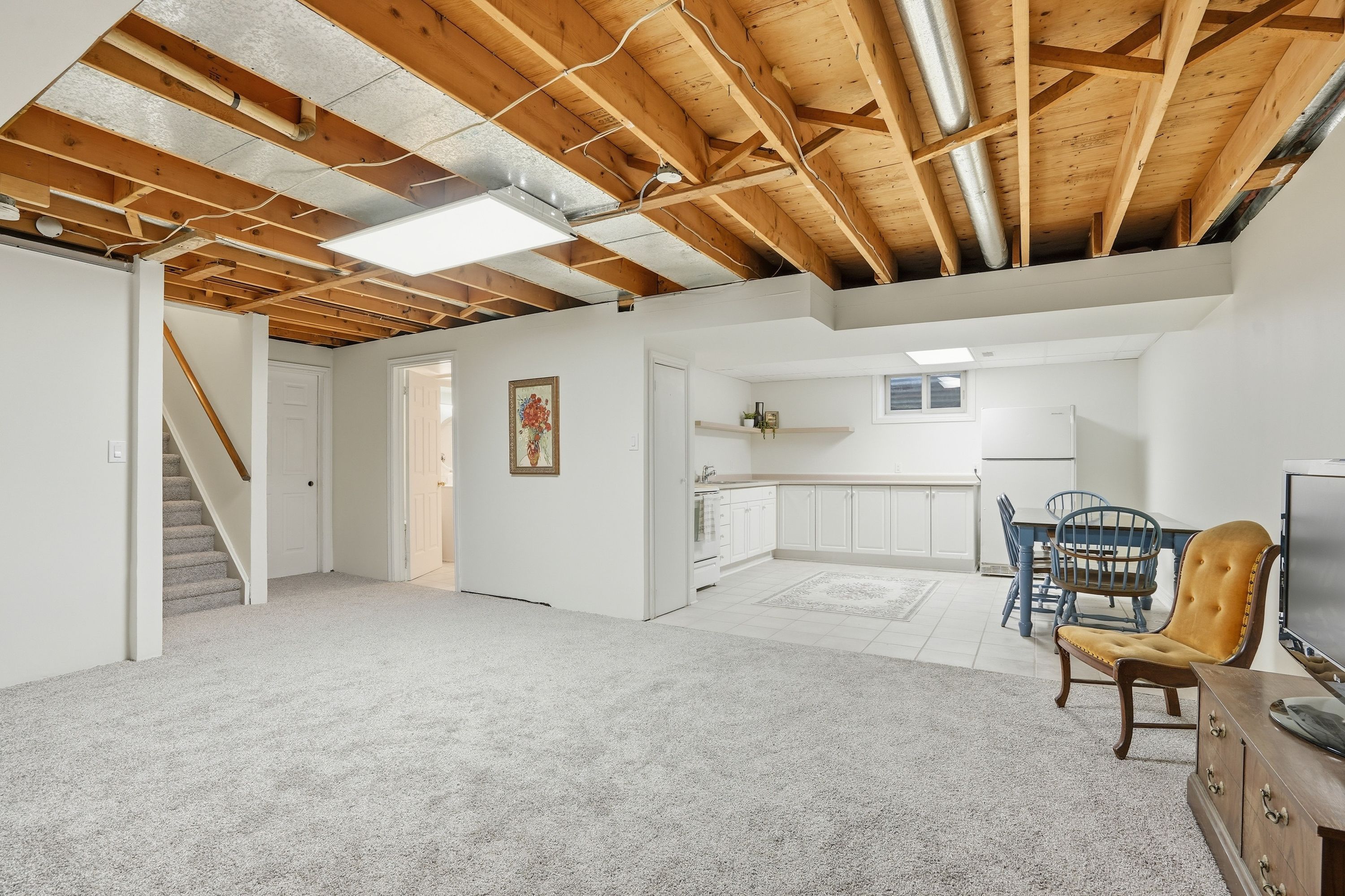 • Bright main floor with large windows and engineered hardwood flooring.