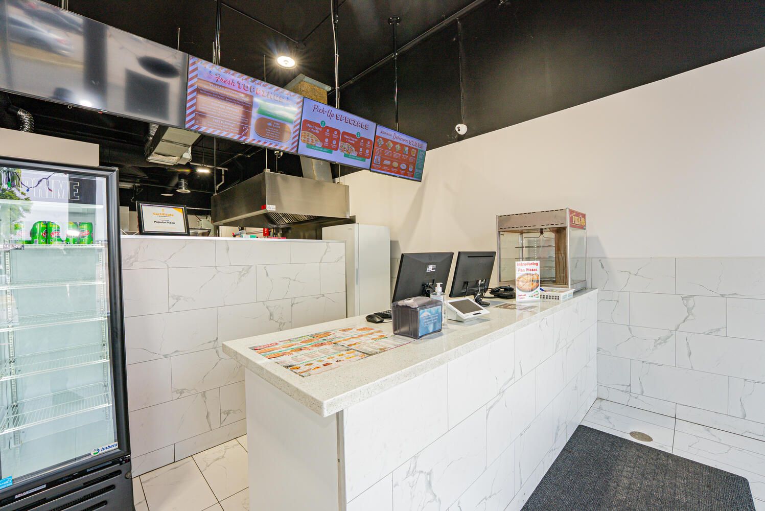 • Turn-key franchise pizza store in a high-traffic plaza.
