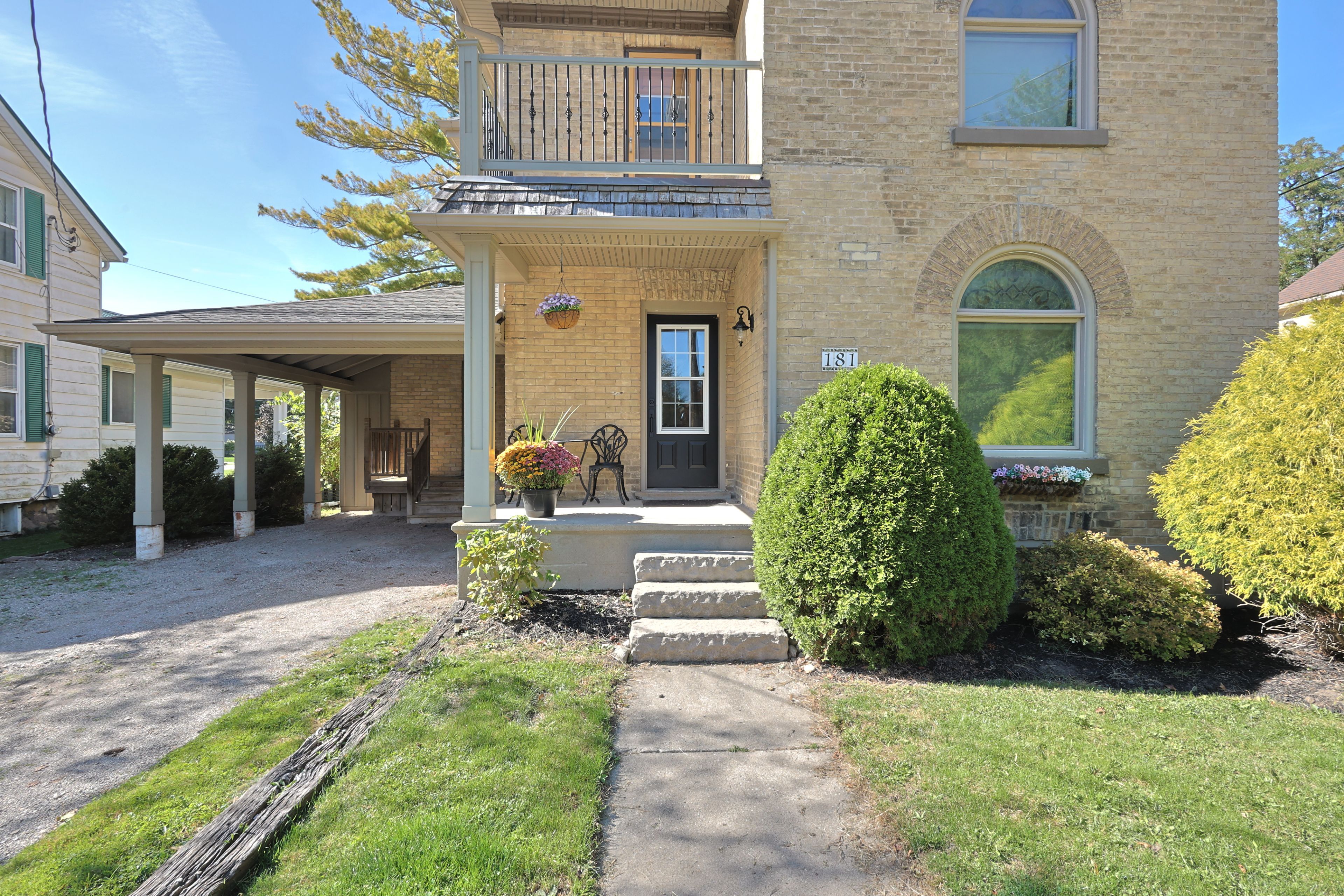 Nicely appointed yellow brick century home offering lots of character in the 2,221 sq ft of living space! Welcome to 181 parkhill main street, parkhill where you find a unique balance of century home charm and modern updates. Great curb appeal with the yellow brick, decorative trim, covered front porch, carport and more. Step inside the entrance foyer that leads into the expansive living room. Hardwood flooring throughout living and dining rooms with lots of large windows for lots of natural light. Living room is so large enough that it allows for two seating areas! Sit around the fireplace accented with tile and decorative wood mantle. Double glass doors leads into the dining room from one doorway and an ornate entrance way with columns leading into the kitchen from the other entrance. Nicely updated kitchen allows for eat-up bar, lots of cabinetry, lots of counter space, stainless steel appliances, slate tile flooring and more. Off of kitchen is the covered carport entrance that leads into mudroom that includes laundry and two piece bathroom. The second level landing offers access to your very own balcony. Primary bedroom with three piece ensuite and walk-in closet large enough for make up vanity. Second level allows for another two generously sized bedrooms and four piece bathroom. Full basement which includes the utility room offers lots of space for storage. Step onto the expansive back deck overlooking the fenced back yard. Driveway with carport allows for three cars with space for a couple more on the other side of home when needed. This home has lots of character with the original doorknobs, hardwood flooring, glass panel doors, wide baseboard trim, stained glass and much more that makes this a special home indeed. Parkhill is a great place to live for all ages with an active downtown core, community groups and rec centre! Only a 30 minute drive from london and a 15 minute drive from grand bend and the shores of lake huron.