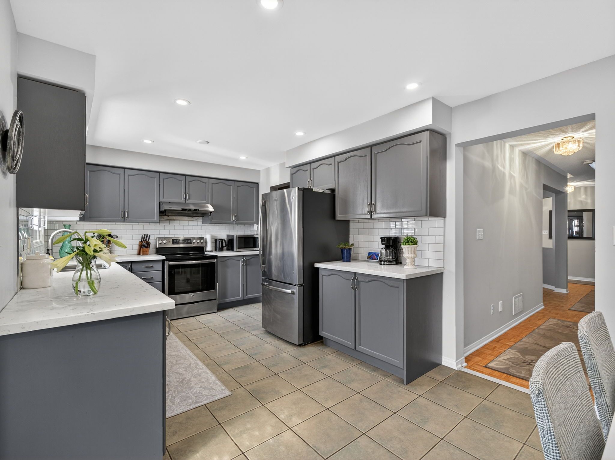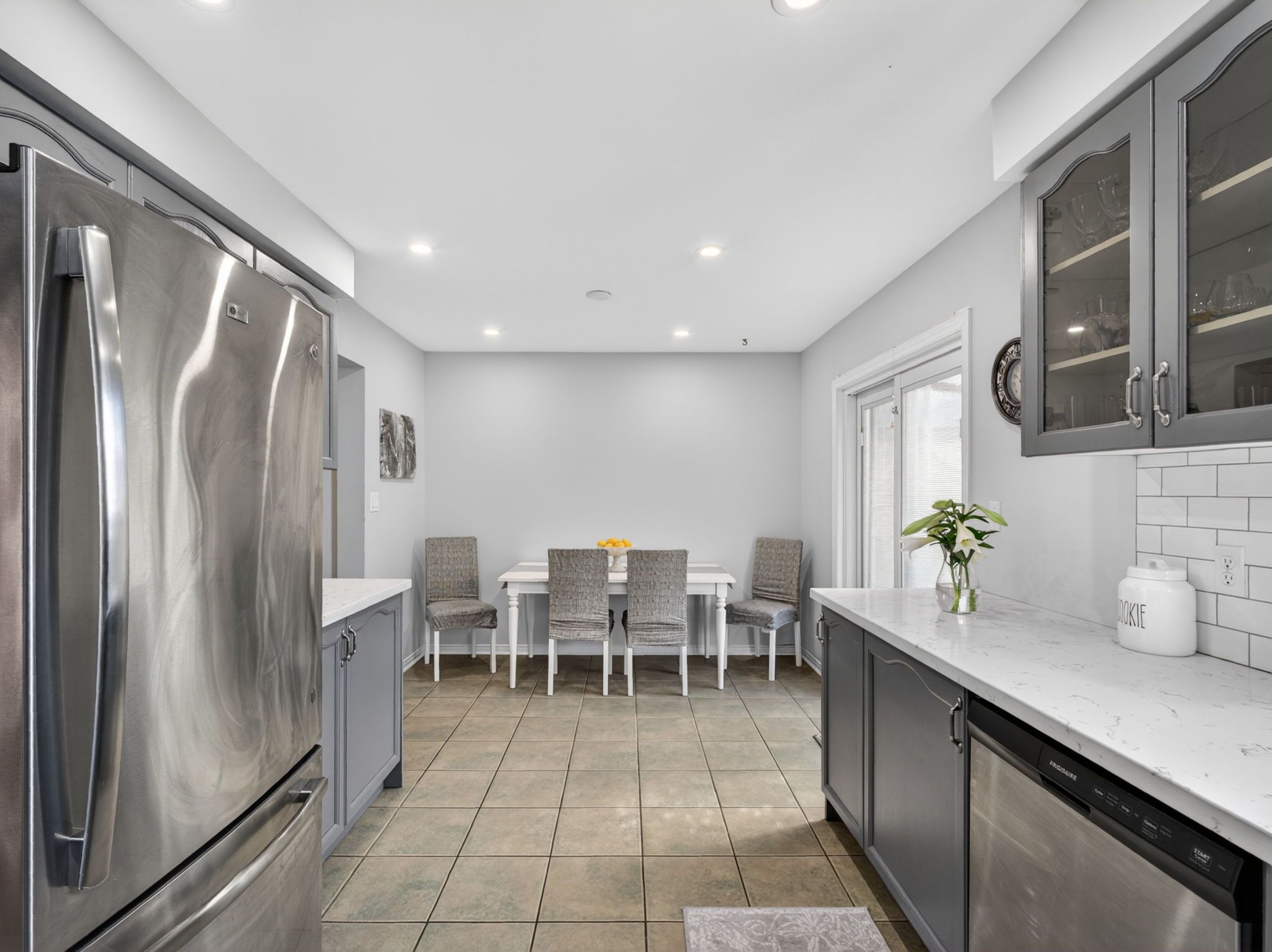 • Modern kitchen with refreshed cabinetry and new quartz countertop.