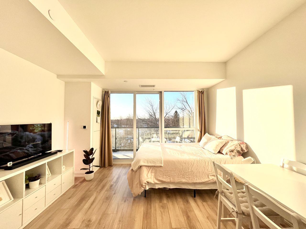 • Bright bachelor suite with high ceilings and modern finishes.
