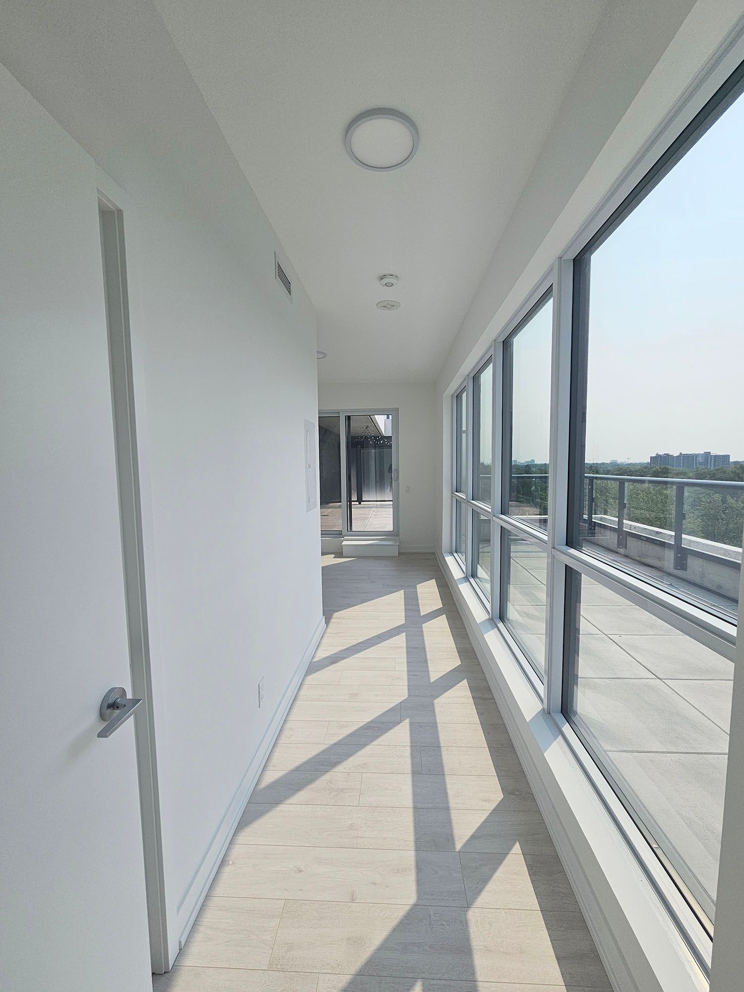 Never-lived-in, never offered, 1-bedroom suite delivers an exceptional blend of indoor comfort and outdoor living. 608 sq ft with an 2 massive private terraces totaling 522 sq ft, this home is unlike anything else in the area. Perched on the 7th floor with a panoramic south-facing exposure, enjoy sweeping views over a lush canopy of trees and charming residential homes, with the downtown skyline visible in the distance. The view is breathtaking in every season-sun-drenched in the summer, vibrant in the fall, and serene year-round. Inside, the thoughtfully designed linear layout maximizes every inch of space with no wasted square footage. Floor-to-ceiling windows run along the entire unit, flooding the space with natural light and creating a seamless connection to the outdoors. The bedroom is ideally positioned on the opposite side of the living area for privacy, and every principal room enjoys direct window exposure-an incredibly rare feature. The modern kitchen is sleek and functional, perfect for both everyday living and entertaining, while the overall layout offers a clean, rectangular footprint that is easy to furnish and live in. Located in one of north york's most desirable pockets, this address offers the perfect balance of urban convenience and residential tranquility. You're just steps to yonge & sheppard, with access to two subway lines, making commuting downtown effortless. Enjoy an abundance of nearby amenities including whole foods, longo's, loblaws, and countless restaurants, cafés, and shops. Earl bales park, glendora park, and a network of nearby green spaces provide a peaceful escape right outside your door, while top-rated schools and community centers make this an ideal place to call home.