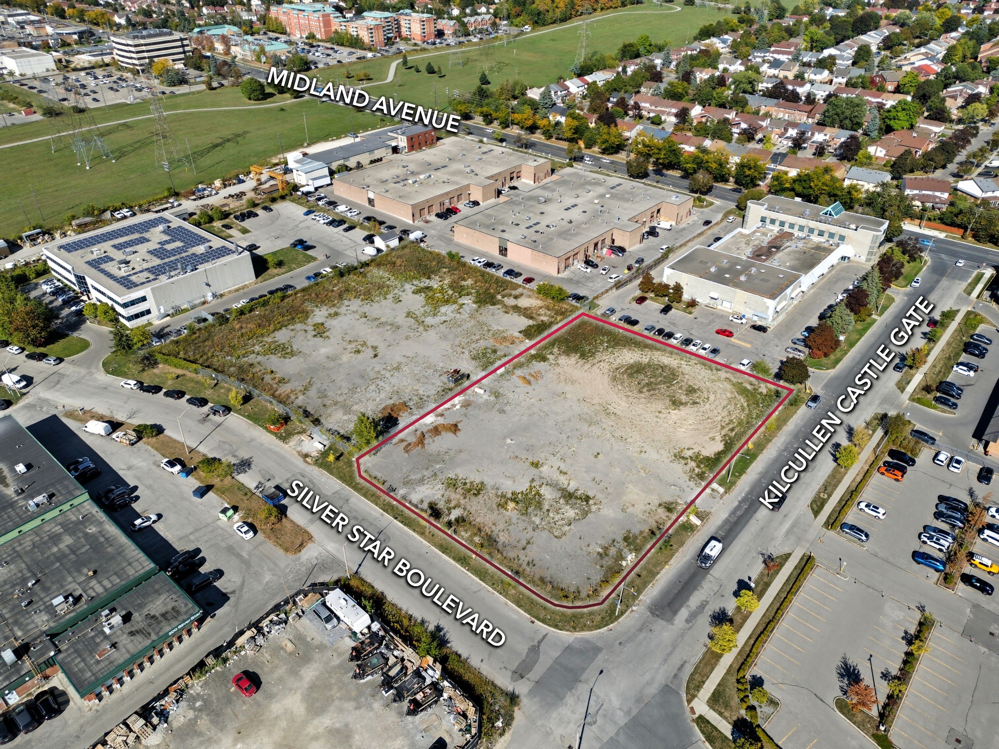Exceptional corner industrial land opportunity for lease in scarborough. 1. 21-acres with frontage onto both silver star boulevard and kilcullen castle gate. Flat, cleared and gravel-surfaced parcel ideal for outdoor storage or other industrial operations. Zoned e0. 5 andeh0. 5 allowing for various uses including supply yard, industrial sales and service, custom workshop, cold storage, production studio, service shop, and more. Situated between kennedy road and midland avenue, just north of finch avenue east and minutes to highway 401. This property can be leased together or separate with neighbouring parcel (pin:060200010) for a total of 2. 71-acres. See additional mls listings.