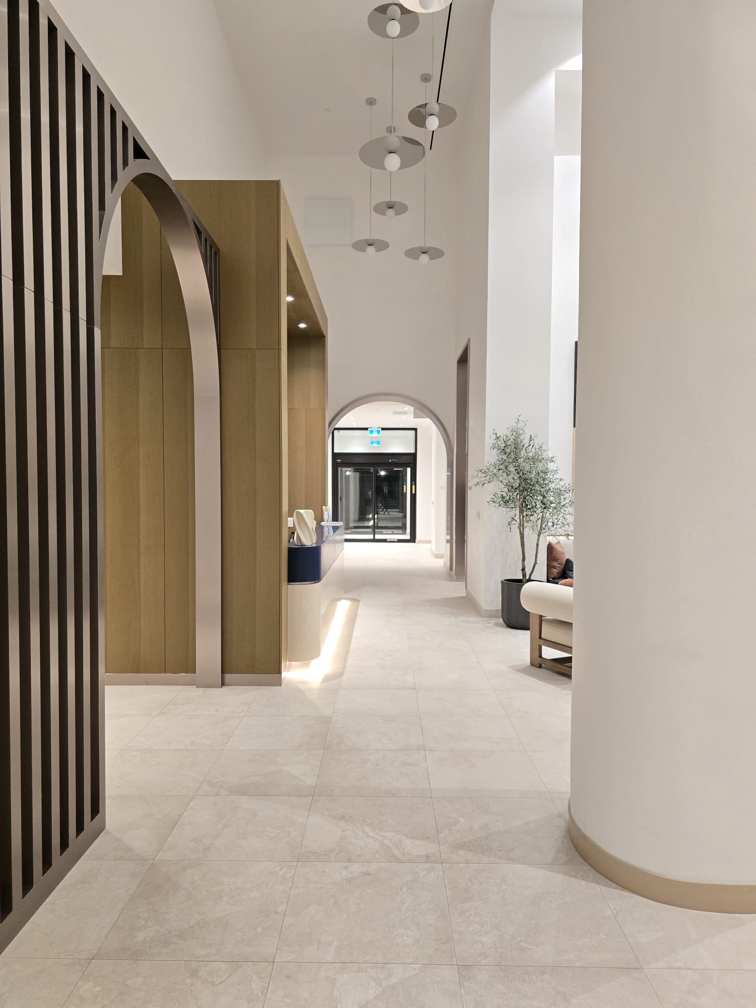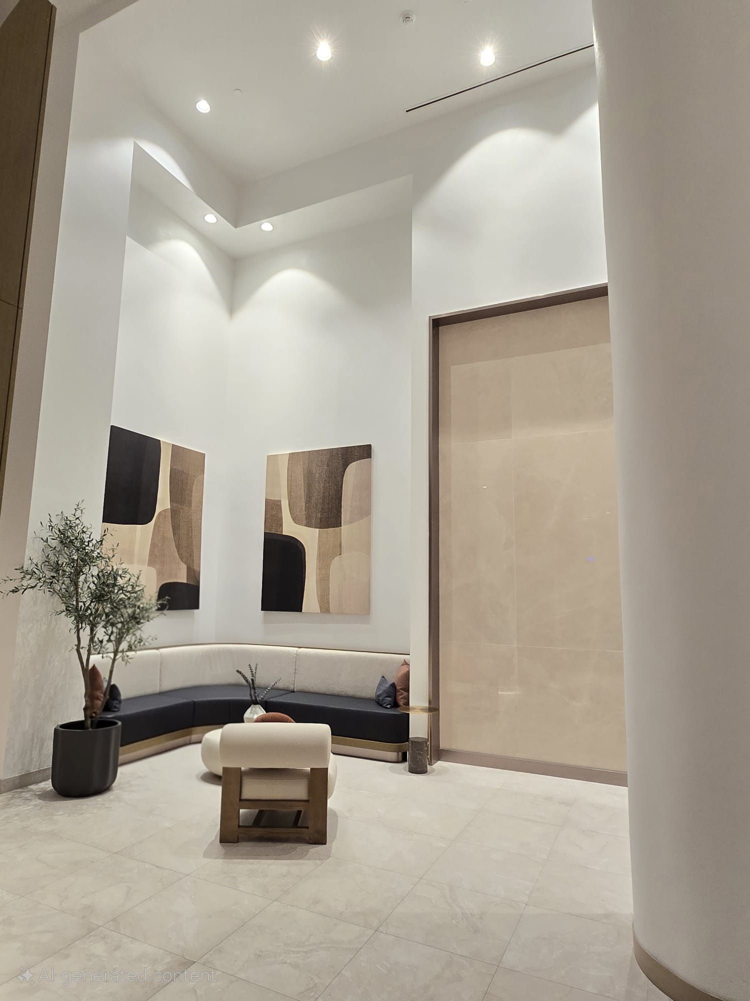 • Amenities include 24/7 concierge, fitness center, and wellness studio.