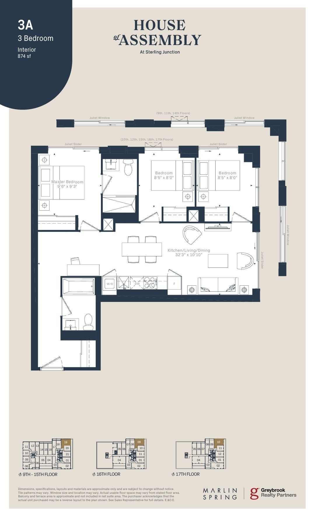• Spacious 3-bedroom suite with floor-to-ceiling windows and hardwood floors.