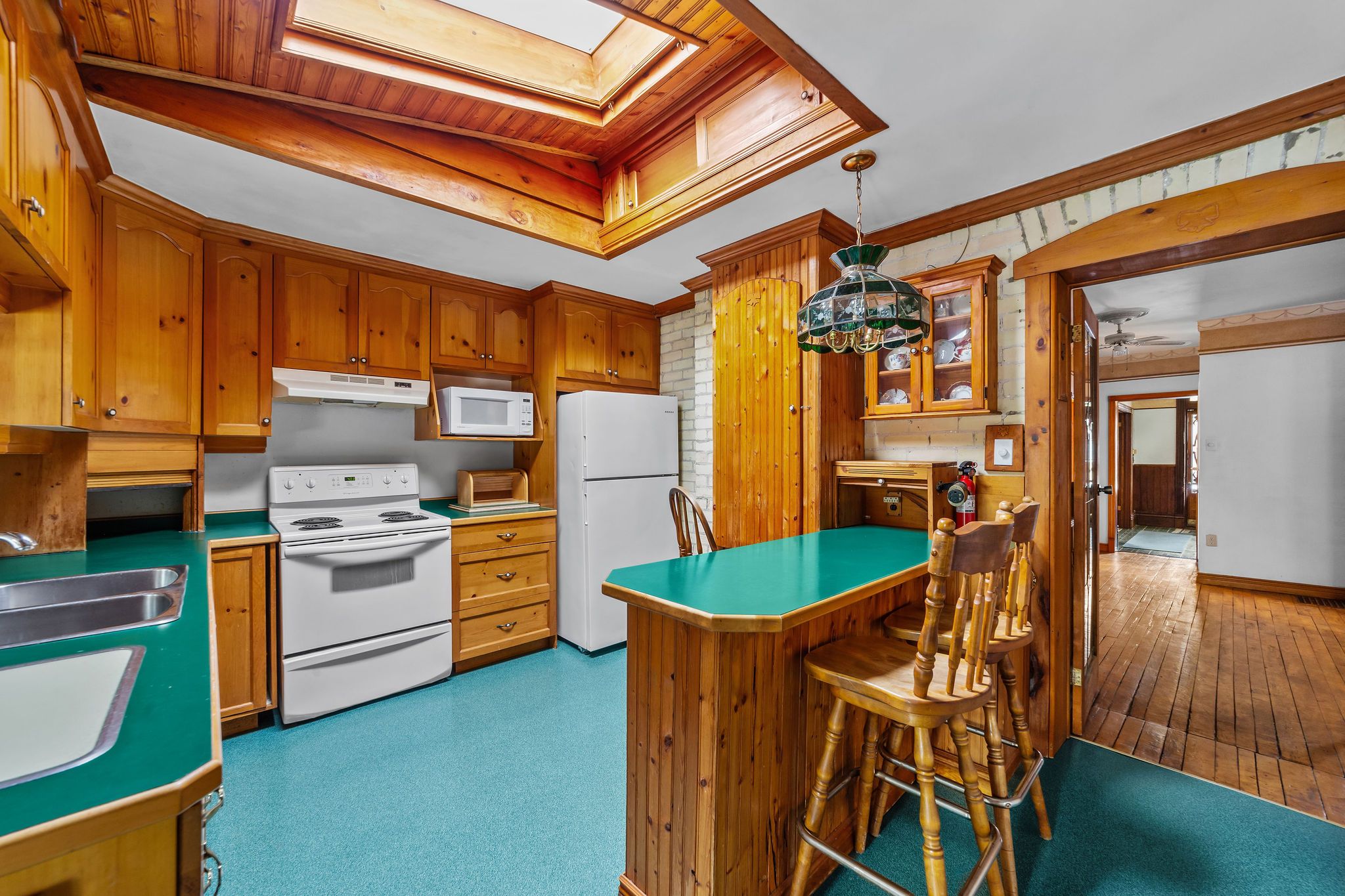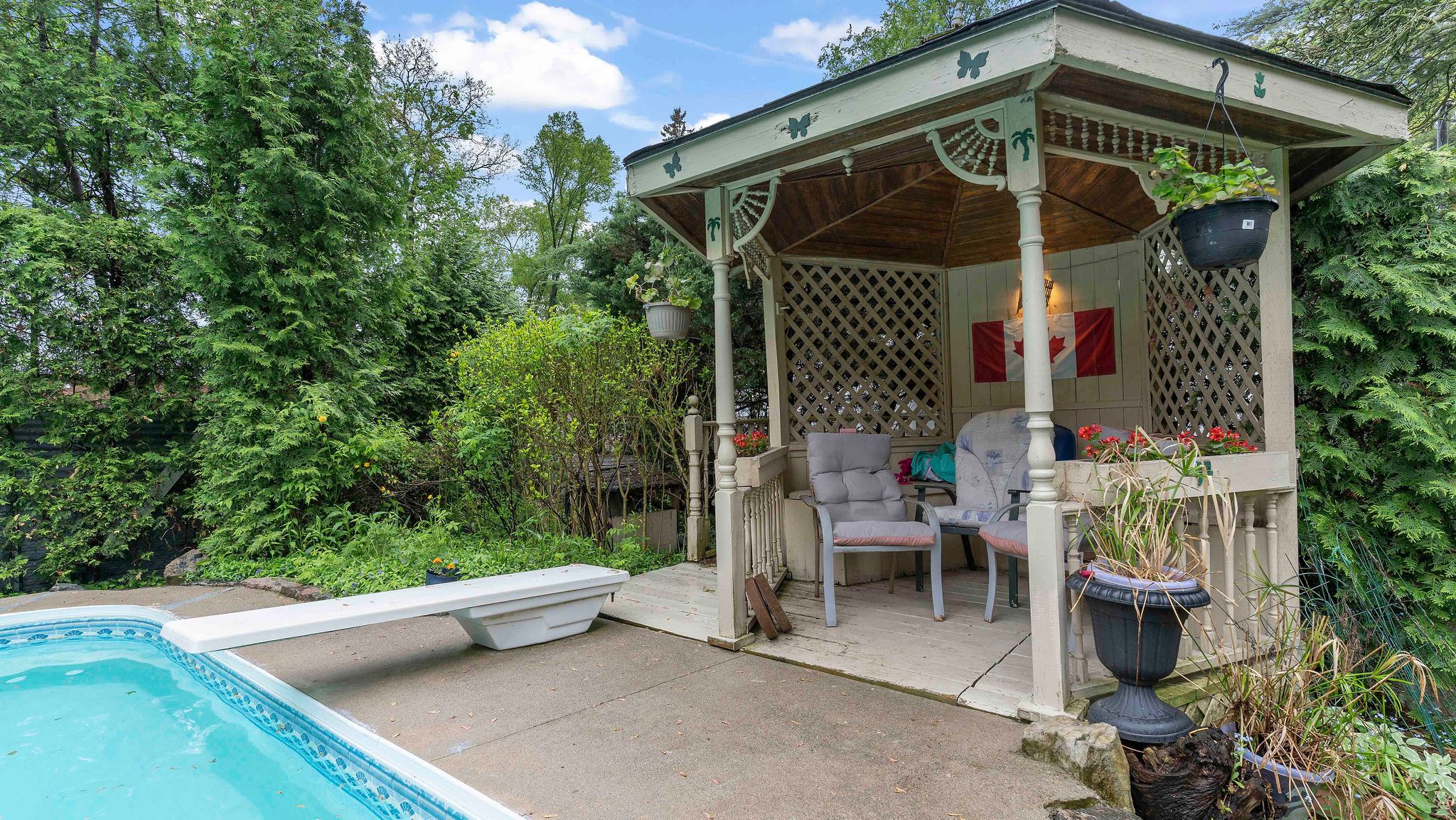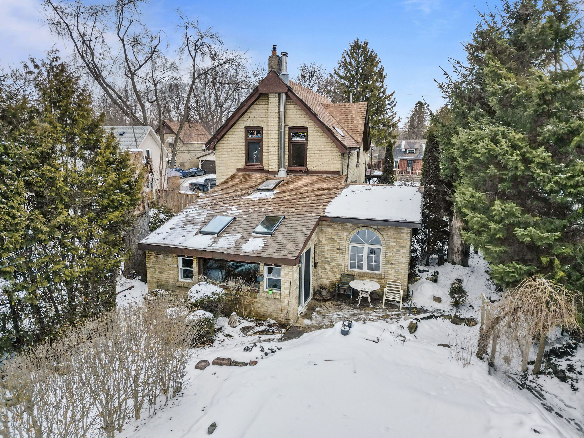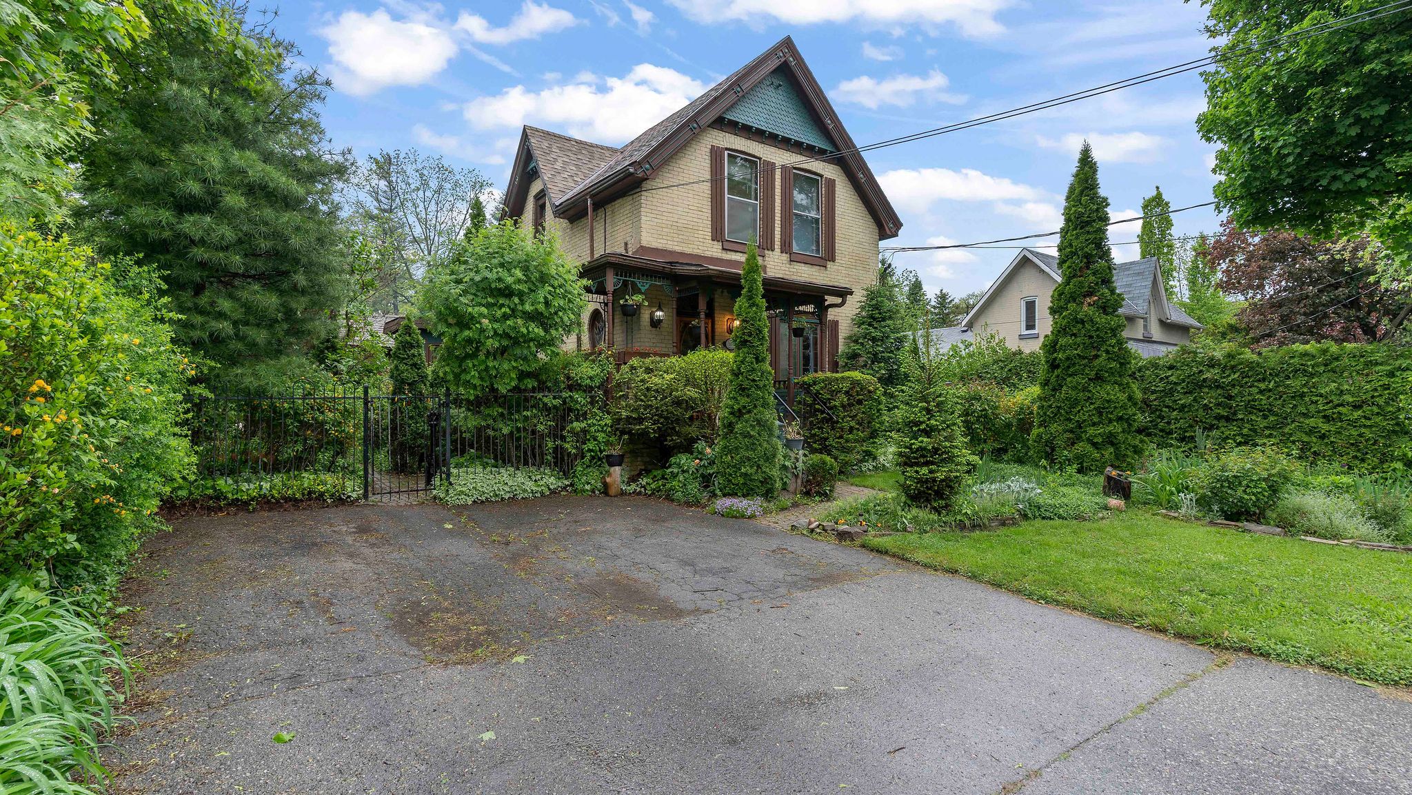 Step into the elegance of a true 1896 victorian gem, nestled on a beautifully landscaped 198-foot lot in a quiet, established neighbourhood. This double-brick, solidly built home features original craftsmanship throughout from custom wood finishes and one-piece joists and rafters to a variety of exquisite stained glass windows (15 in total!). Inside, discover a harmonious blend of heritage and functionality: main floor: formal parlour/office, powder room, spacious living room with a wood-burning fireplace, and a sunroom with a gas fireplace and hot tub. The dining room boasts oak finishes and a striking tin ceiling, while the kitchen offers rustic charm with pine cabinetry and durable linoleum/laminate flooring. Upstairs: 4 bedrooms and a convenient half bath, filled with natural light and antique character. Basement: fully finished with a rec room, laundry area, and full bath perfect for extra living or entertainment space. In-law suite potential, with a separate entrance. Outside, unwind on the patio overlooking a 30-foot swimming pool, surrounded by several serene ponds and professional landscaping. A bonus guest house with its own gas fireplace and electric baseboard heating offers rental or another in-law suite. Additional highlights include: 198-foot lot with mature trees and tranquil outdoor spaces original hardwood floors updated electrical (200 amps) and owned water heater (23 years old) roof replacements in 2024 (over sauna and dining room); rest of the roof replaced in 2017 new patio doors and skylights installed in 2024 solid concrete and block foundation furnace approx. 15 years old located just steps from parks, top-rated schools, shopping, transit, nature trails, and bike paths this one-of-a-kind victorian home is a rare opportunity to own a piece of history, thoughtfully updated for todays lifestyle.
