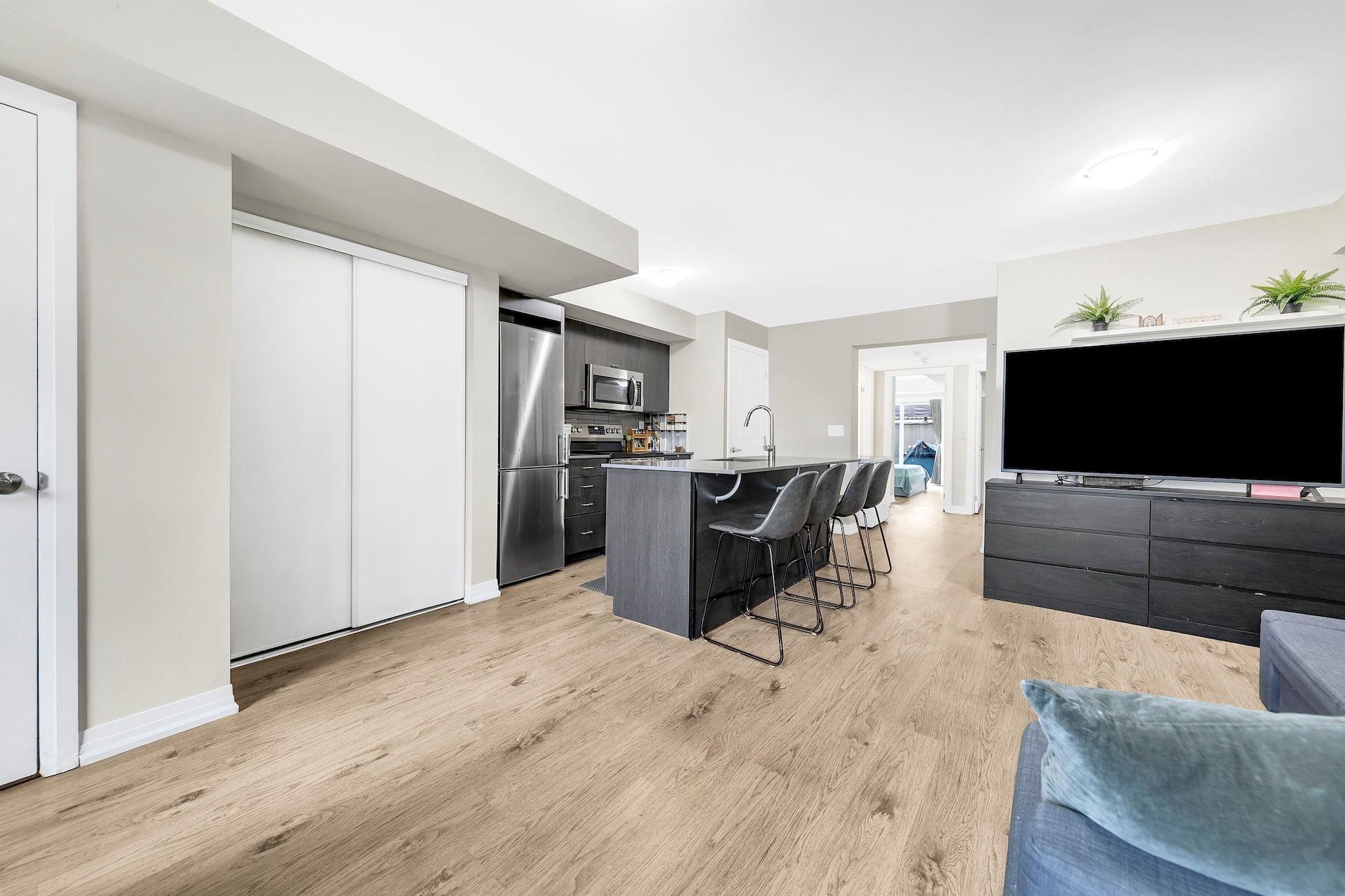 • Spacious Mattamy-built stacked condo townhouse with a functional kitchen island.