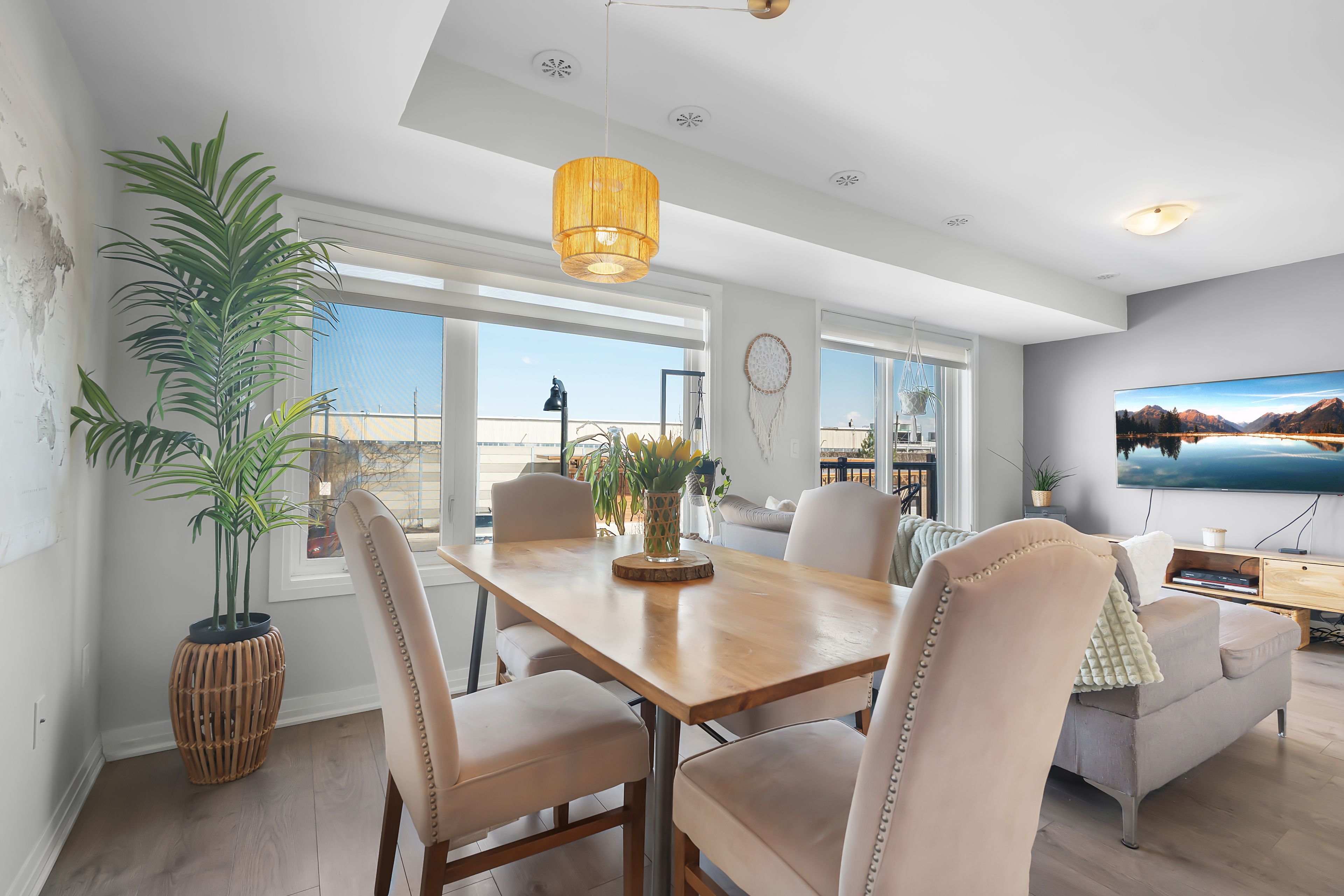 • Open-concept living area with large windows and private balcony access.