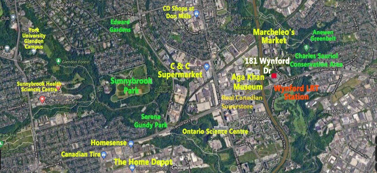 Luxury tridel eco-green building,spacious and bright unit,enjoy the breathtaking,gorgeous unobstructed view from your bedroom & living rm, den can be used as office/2nd bedroom, entire unit has new flooring ( carpet free!), close to many great amenities & supermarket like real canadian superstore, marcheleo's market,science centre,aga khan museum,shops at don mills w/great restaurants & stores. Only 5-6 min walk to the future eglinton lrt wynford station,24hr concierge 1 locker & 1 parking , includes fridge, stove & range hood, stainless steel built-in microwave (2023), built-in dishwasher, stacked washer & dryer, all elfs, all window coverings, mintues to dvp, 401, 404 & quick access to wynford dr eglinton lrt, fantastic amenities. Pictures were taken when the unit was vacant.