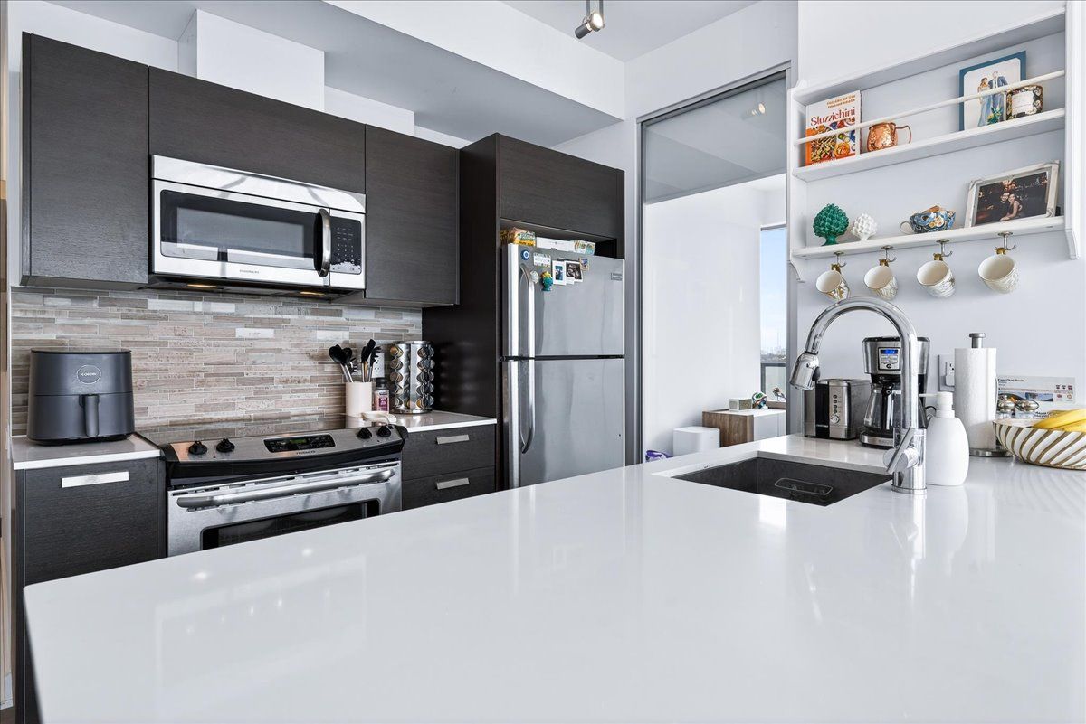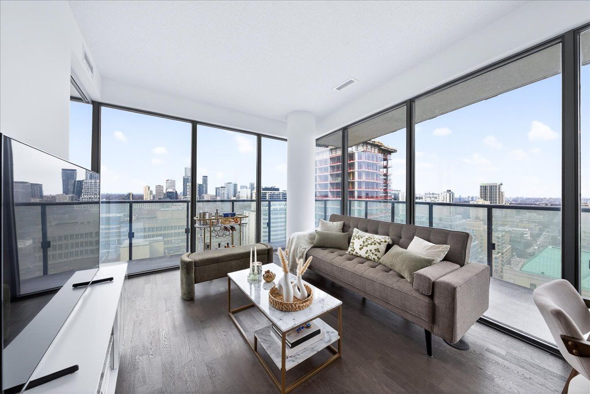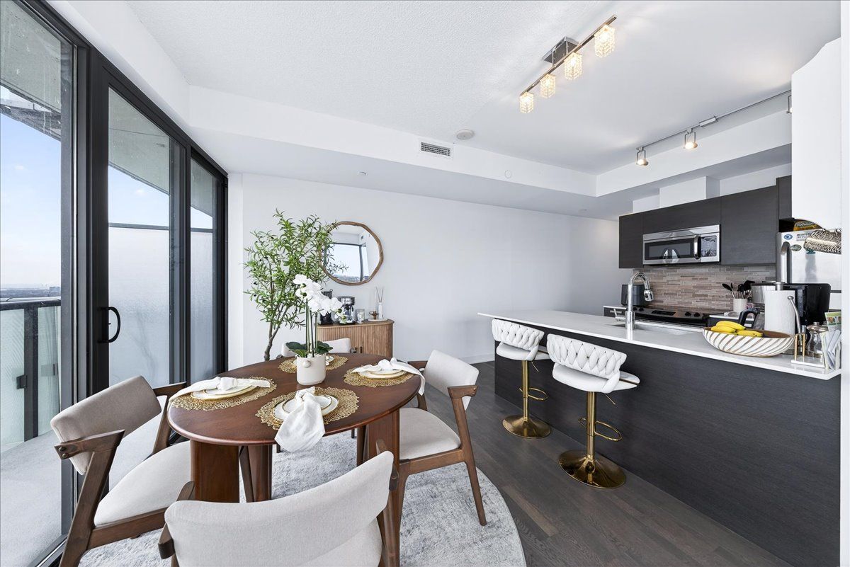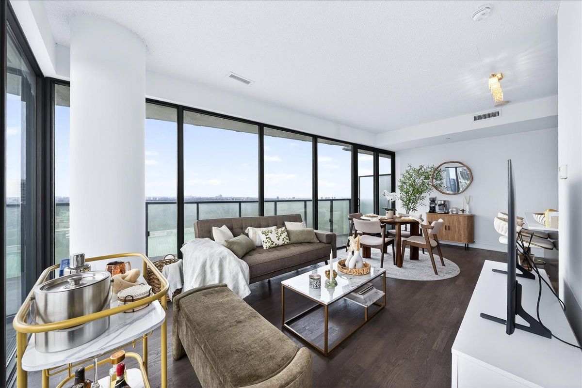Rarely offered 1+den suite at the prestigious myc condos, ideally located in the heart of midtown toronto at yonge & merton. This beautifully designed 767 sq. Ft. Residence features a highly functional open-concept layout with soaring high ceilings and floor-to-ceiling windows, filling the space with natural light and showcasing breathtaking 280-degree panoramic city views. The modern kitchen is finished with sleek cabinetry, quartz countertops, and stainless steel appliances, seamlessly flowing into spacious living and dining areas-perfect for both everyday living and entertaining. Step out onto your expansive 260 sq. Ft. Wrap-around balcony with two walk-outs-an exceptional outdoor space to enjoy both sunrise and sunset, host guests, or unwind above the city. The spacious den, complete with a sliding door, offers true versatility and can easily function as a second bedroom, private office, or guest space. Unbeatable location just steps to davisville station, the kay gardner beltline trail, and an array of boutique shops, cafes, and restaurants along yonge street. Residents enjoy premium amenities including concierge, fitness centre, media room, party/meeting room, rooftop terrace, and visitor parking. A rare opportunity to own in one of midtown's most sought-after residences, offering the perfect blend of lifestyle, location, and elevated urban living.