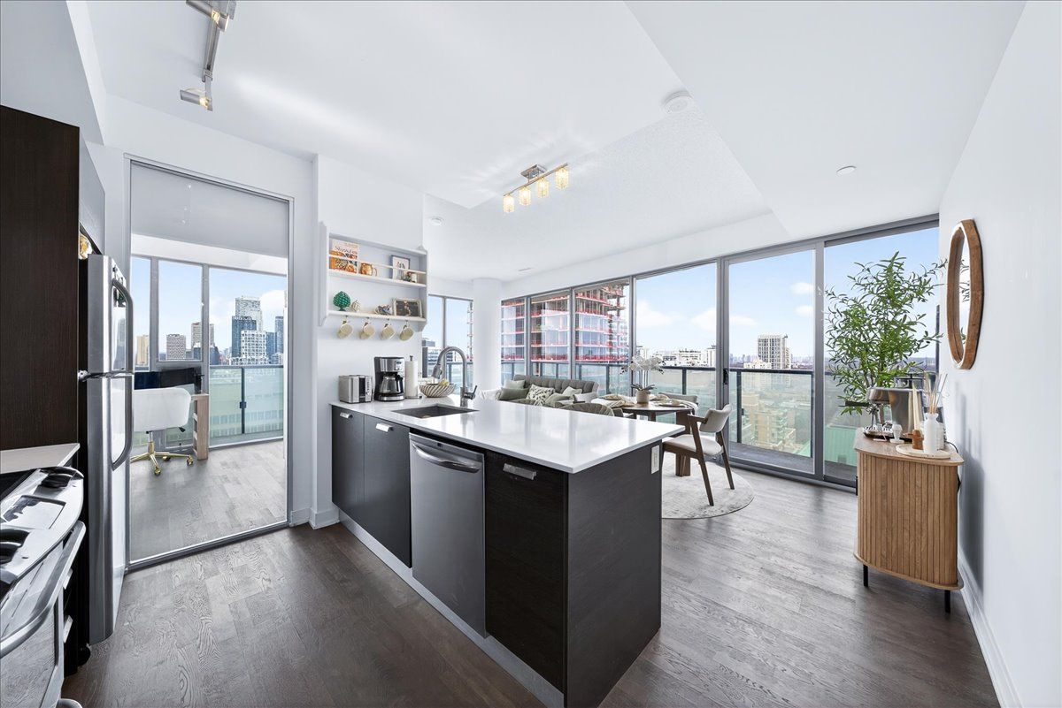 • Bright open-concept layout with high ceilings and panoramic city views.