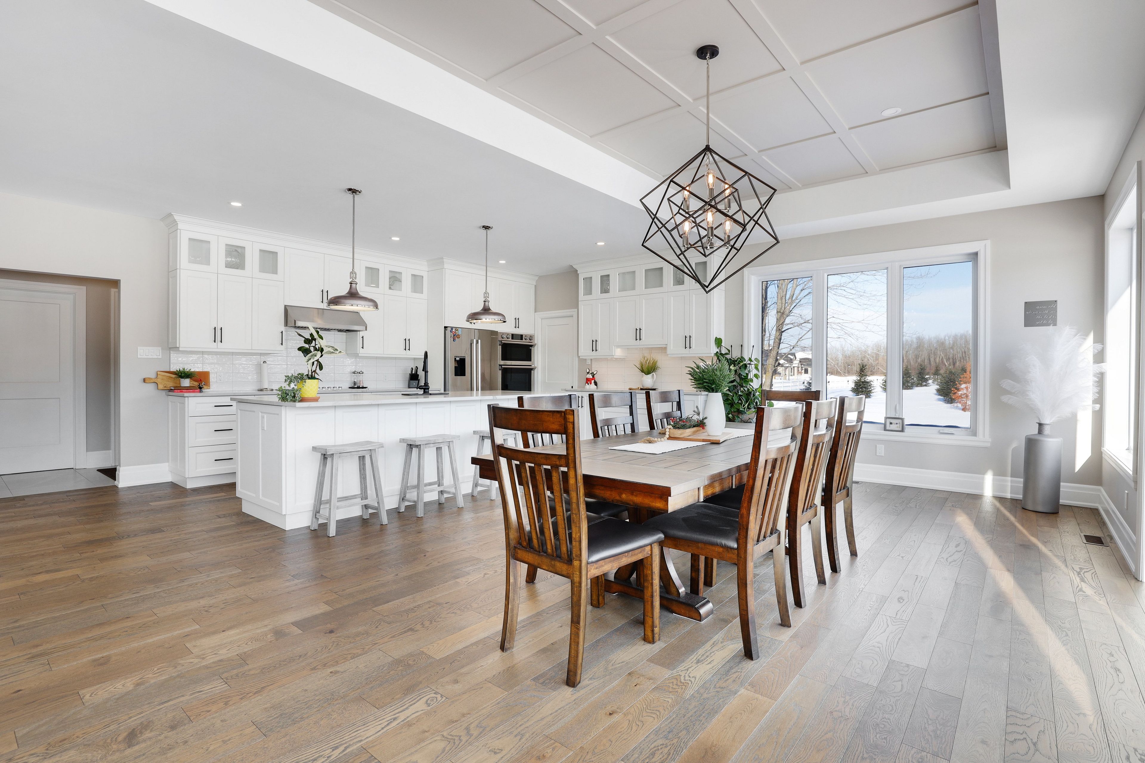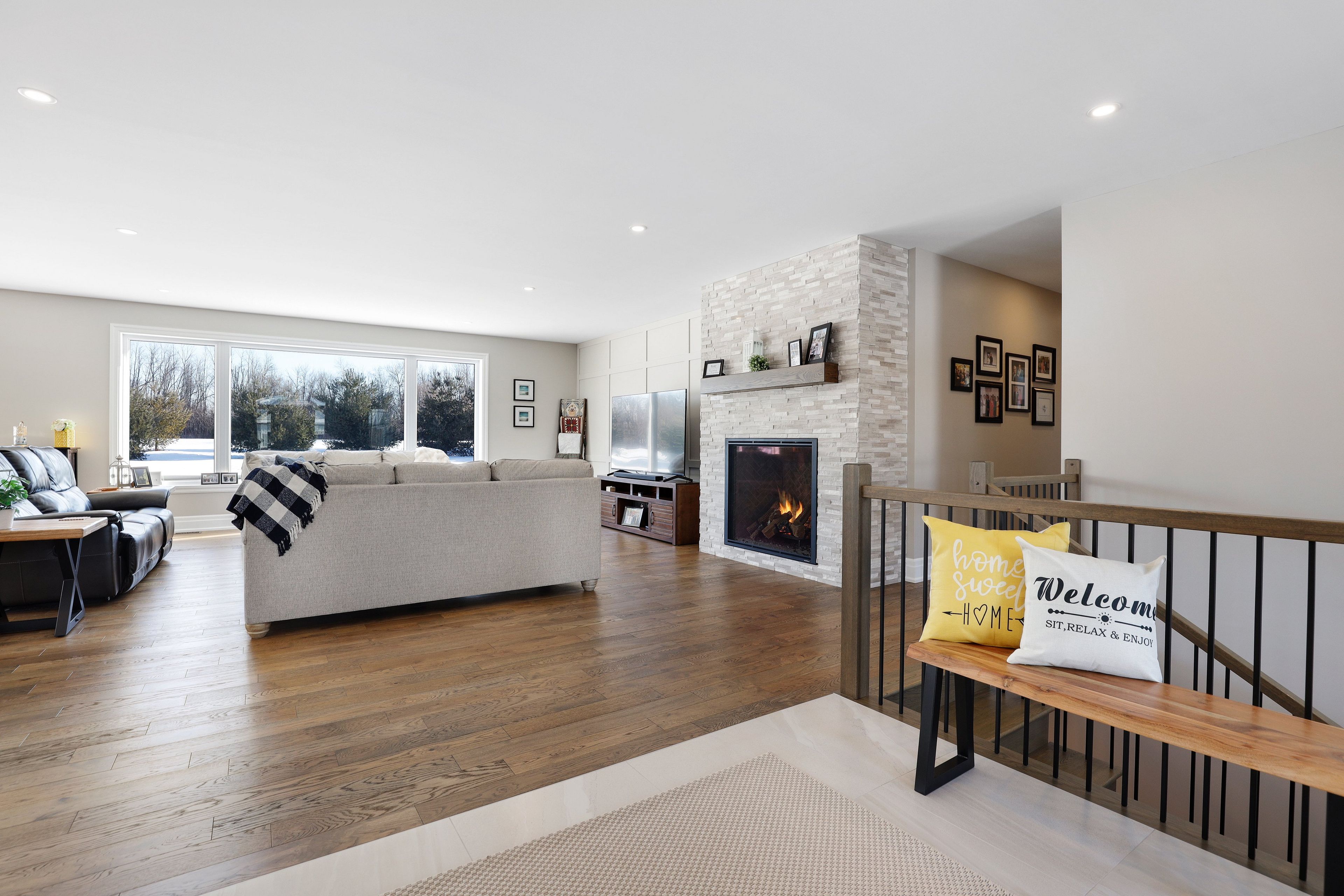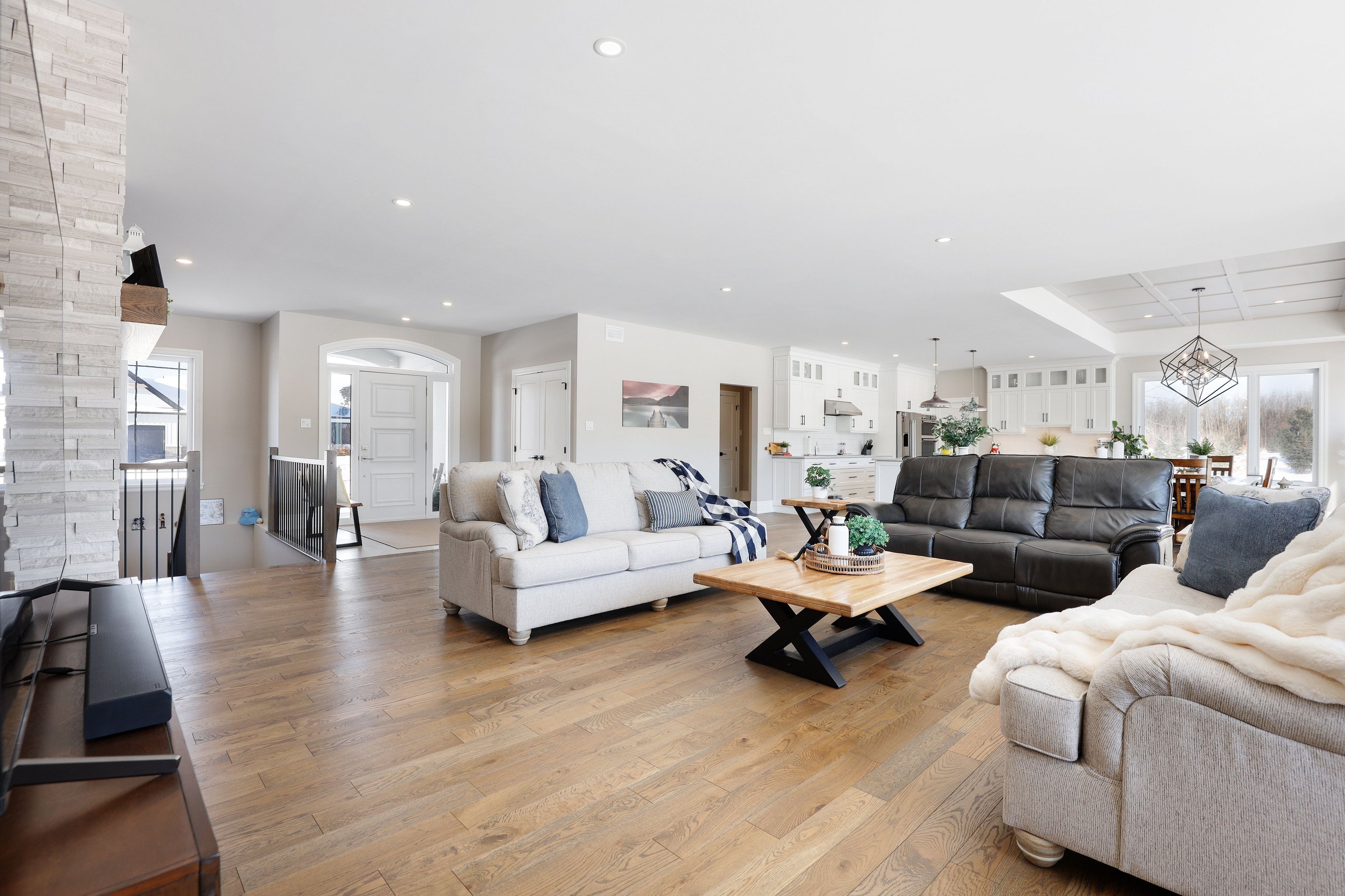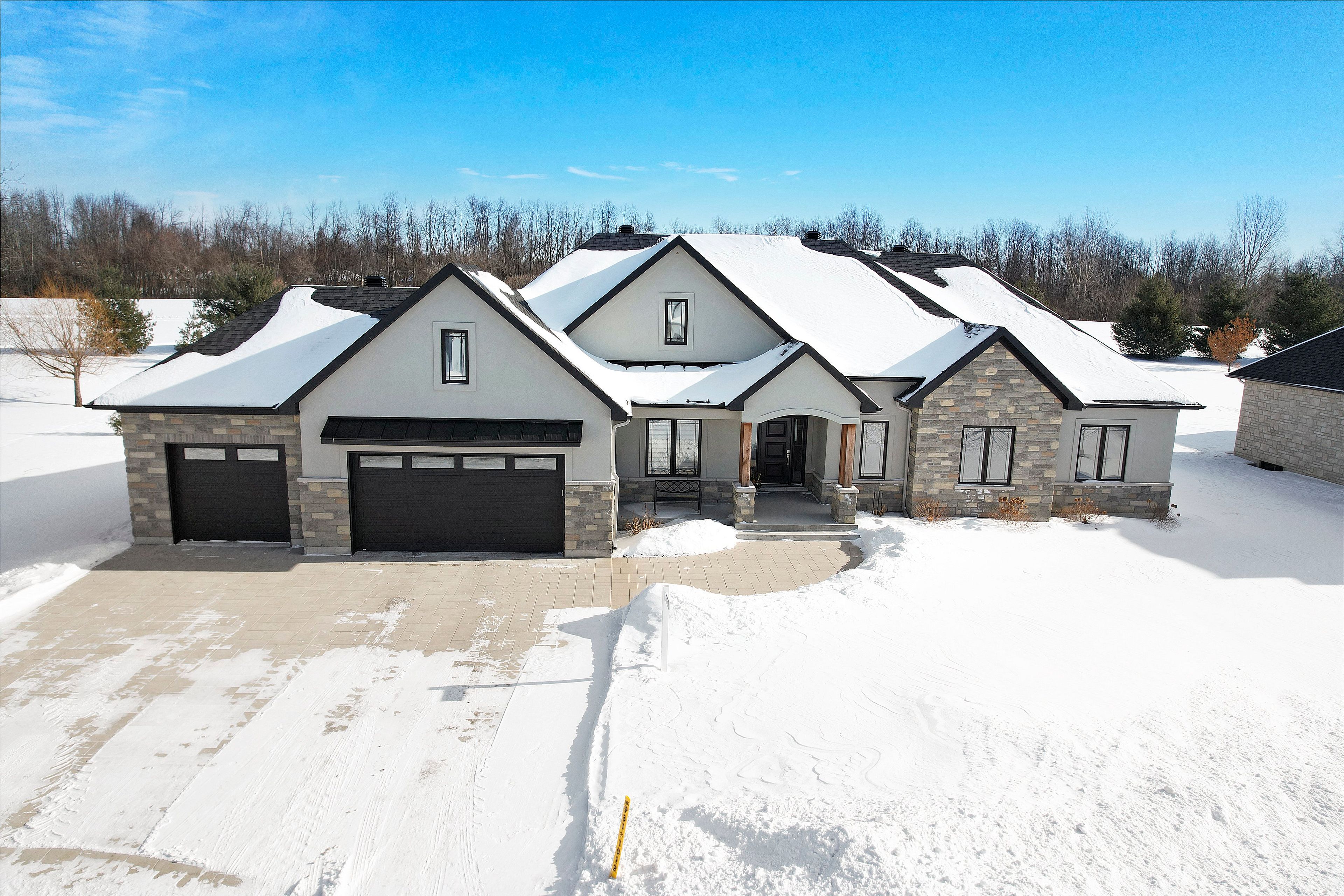 An exceptional grant marion built home in the coveted place st. Laurent, this distinguished 2,600 sq ft open-concept residence blends architectural elegance, refined comfort, and rare privacy just moments from the st. Lawrence river. Designed to maximize natural light and connection to the surrounding landscape, walls of windows frame tranquil views while creating bright, sophisticated interiors ideal for both grand entertaining and relaxed everyday living. At the heart of the home, a gourmet chef's kitchen with walk-in pantry anchors the living space. This thoughtful design has culinary performance and effortless hosting in mind. Main-floor laundry adds practical convenience, while generously proportioned bedrooms provide comfort and flexibility for family or guests. The primary suite serves as a luxurious private retreat, featuring a dedicated dressing room and a beautifully appointed spa-inspired ensuite. An unfinished lower level with rough-in offers significant potential for customized expansion - whether a home theatre, wellness space, or additional executive living quarters. The home features a three-car garage for vehicles, storage, or hobby space. The exterior experience is equally compelling with professionally landscaped grounds with interlocking driveway and rear patio, perennial gardens creating seasonal colour and serenity, and a private hot tub retreat for year-round relaxation. You will experience exceptional privacy with no rear neighbours and none to the north. This unique positioning provides both openness and exclusivity rarely found in the area. Situated near the st. Lawrence river, golf, marina access, and recreational trails, the property delivers a lifestyle defined by nature, prestige, and convenience - all within comfortable reach of ottawa and montreal. This residence represents a compelling opportunity for discerning buyers seeking privacy, architectural presence, and lifestyle quality in one of cornwall's most desirable enclaves.