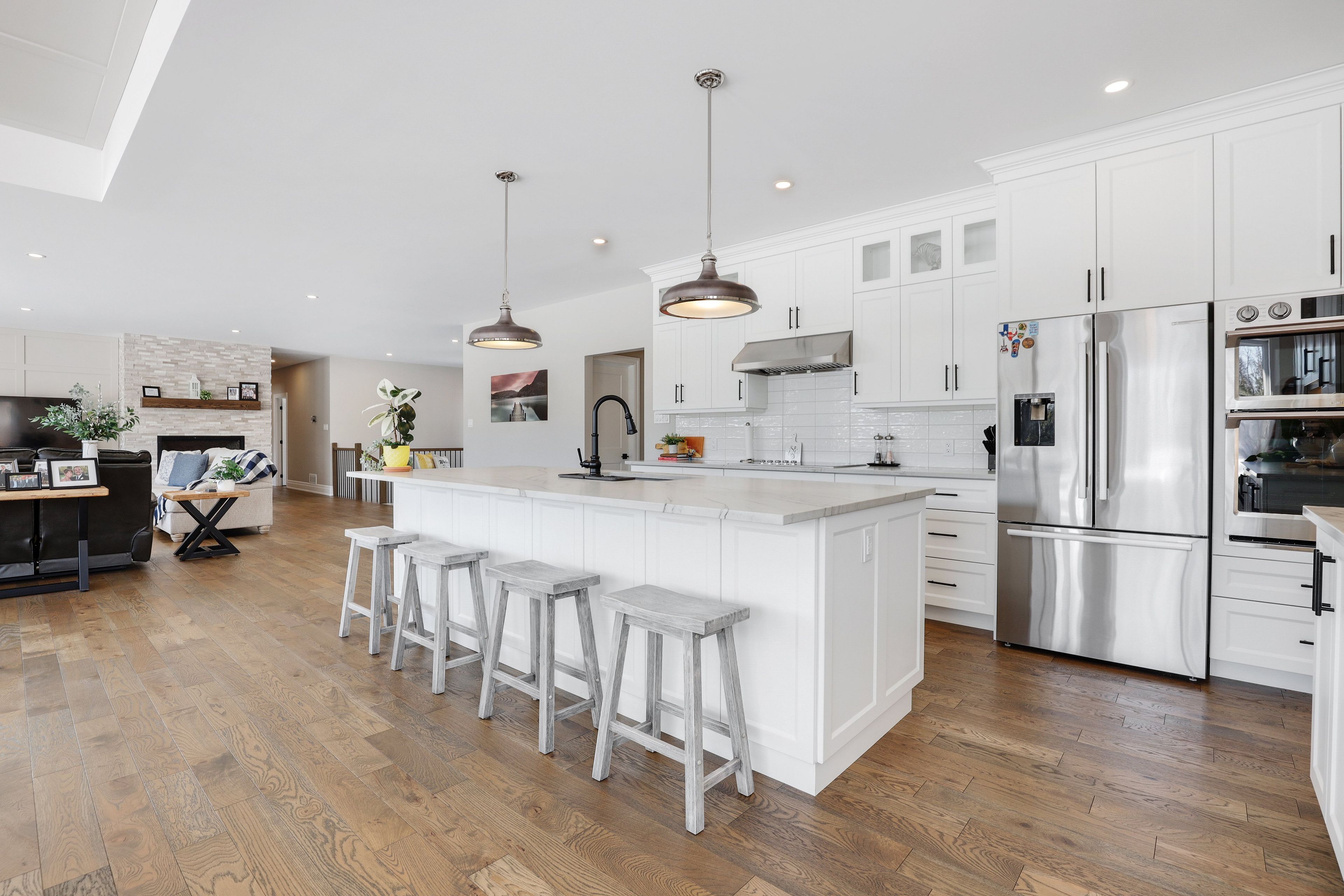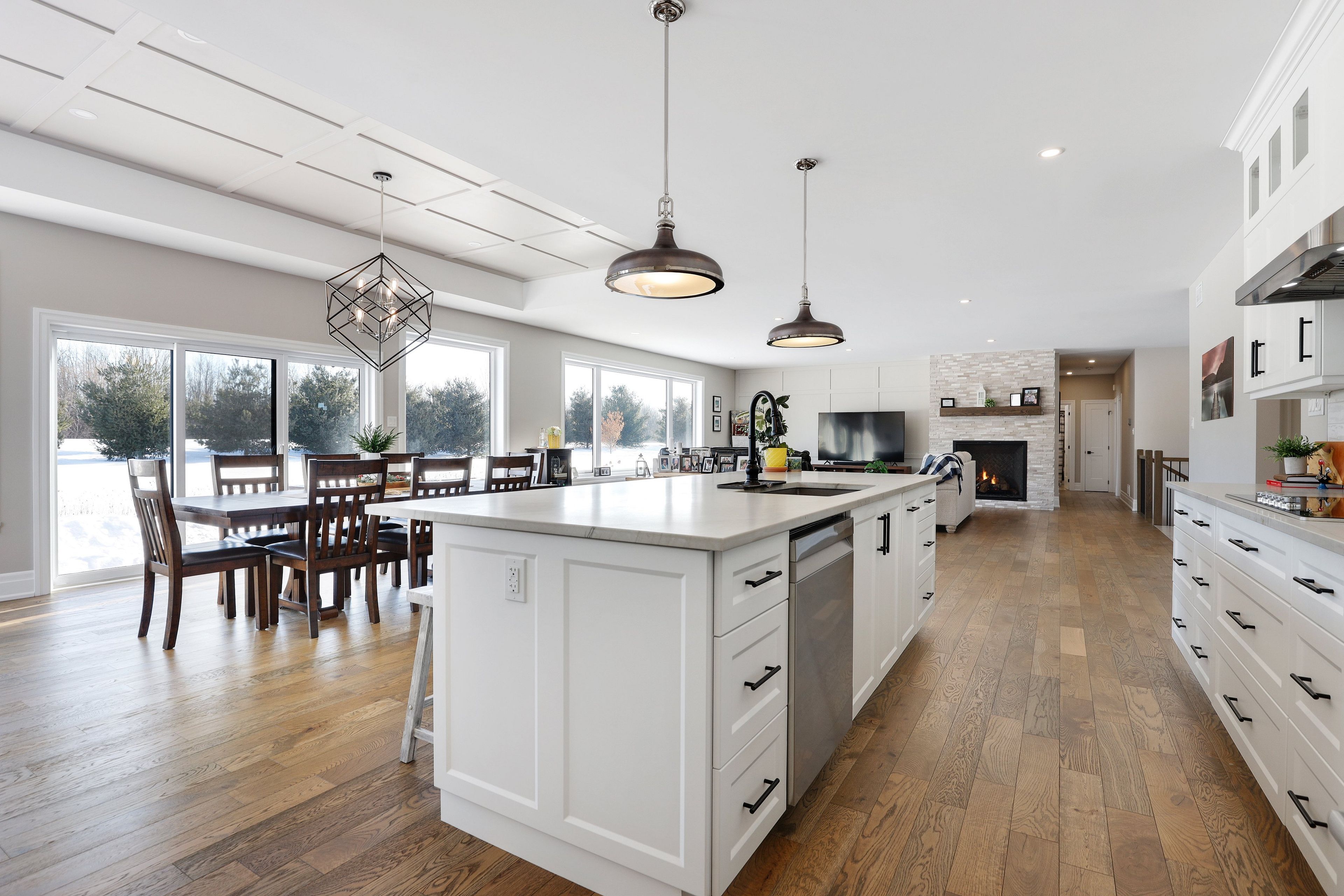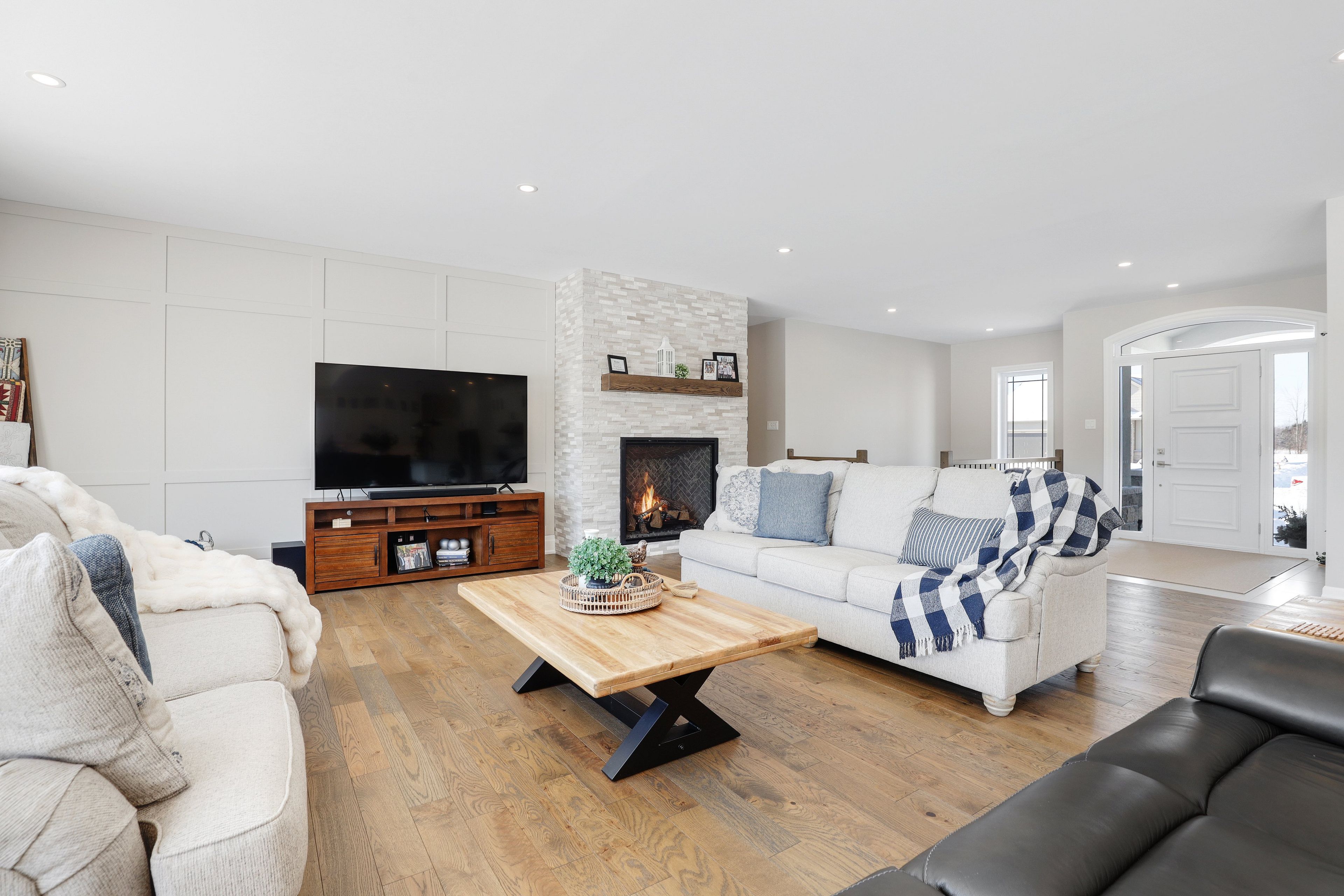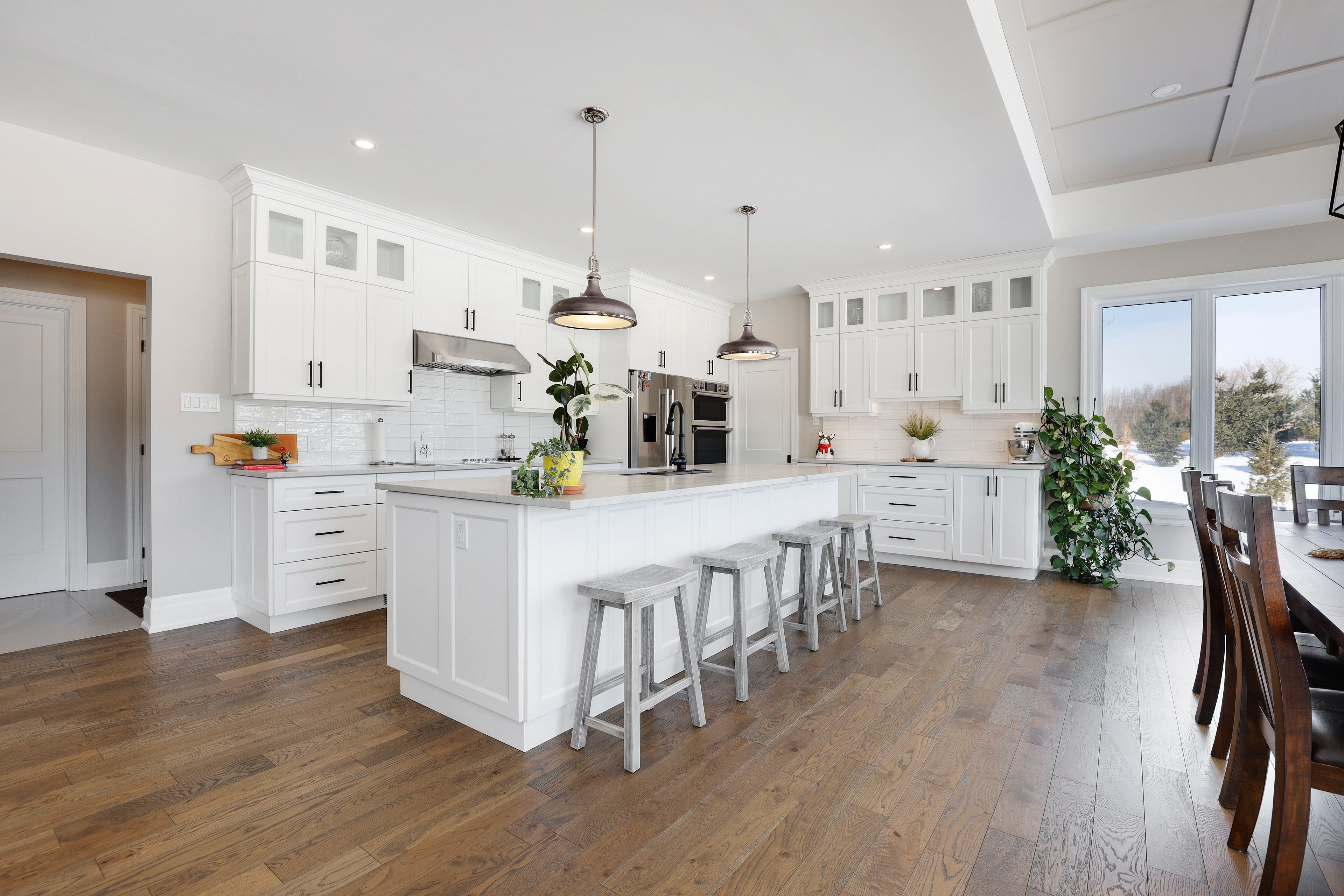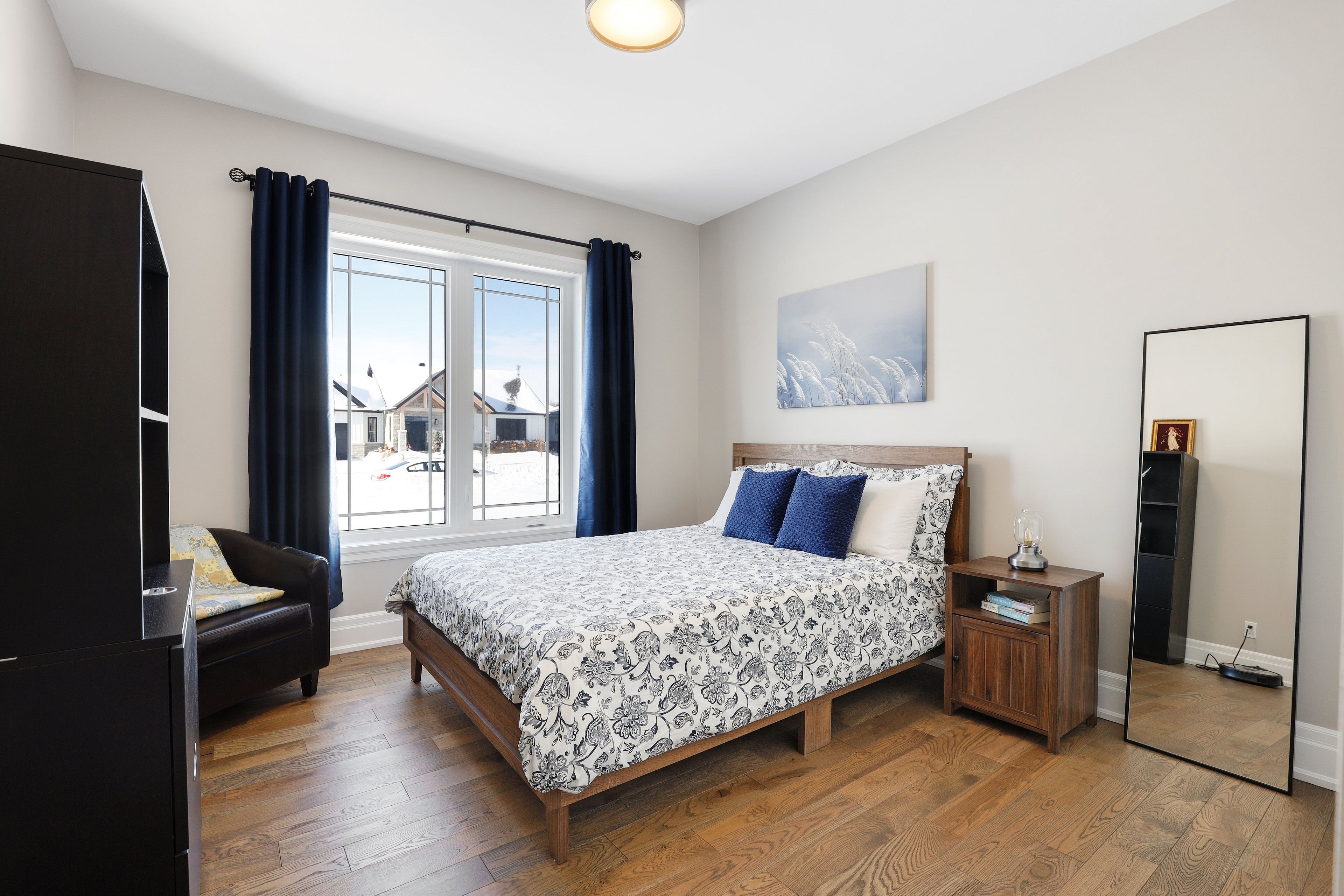 An exceptional grant marion built home in the coveted place st. Laurent, this distinguished 2,600 sq ft open-concept residence blends architectural elegance, refined comfort, and rare privacy just moments from the st. Lawrence river. Designed to maximize natural light and connection to the surrounding landscape, walls of windows frame tranquil views while creating bright, sophisticated interiors ideal for both grand entertaining and relaxed everyday living. At the heart of the home, a gourmet chef's kitchen with walk-in pantry anchors the living space. This thoughtful design has culinary performance and effortless hosting in mind. Main-floor laundry adds practical convenience, while generously proportioned bedrooms provide comfort and flexibility for family or guests. The primary suite serves as a luxurious private retreat, featuring a dedicated dressing room and a beautifully appointed spa-inspired ensuite. An unfinished lower level with rough-in offers significant potential for customized expansion - whether a home theatre, wellness space, or additional executive living quarters. The home features a three-car garage for vehicles, storage, or hobby space. The exterior experience is equally compelling with professionally landscaped grounds with interlocking driveway and rear patio, perennial gardens creating seasonal colour and serenity, and a private hot tub retreat for year-round relaxation. You will experience exceptional privacy with no rear neighbours and none to the north. This unique positioning provides both openness and exclusivity rarely found in the area. Situated near the st. Lawrence river, golf, marina access, and recreational trails, the property delivers a lifestyle defined by nature, prestige, and convenience - all within comfortable reach of ottawa and montreal. This residence represents a compelling opportunity for discerning buyers seeking privacy, architectural presence, and lifestyle quality in one of cornwall's most desirable enclaves.