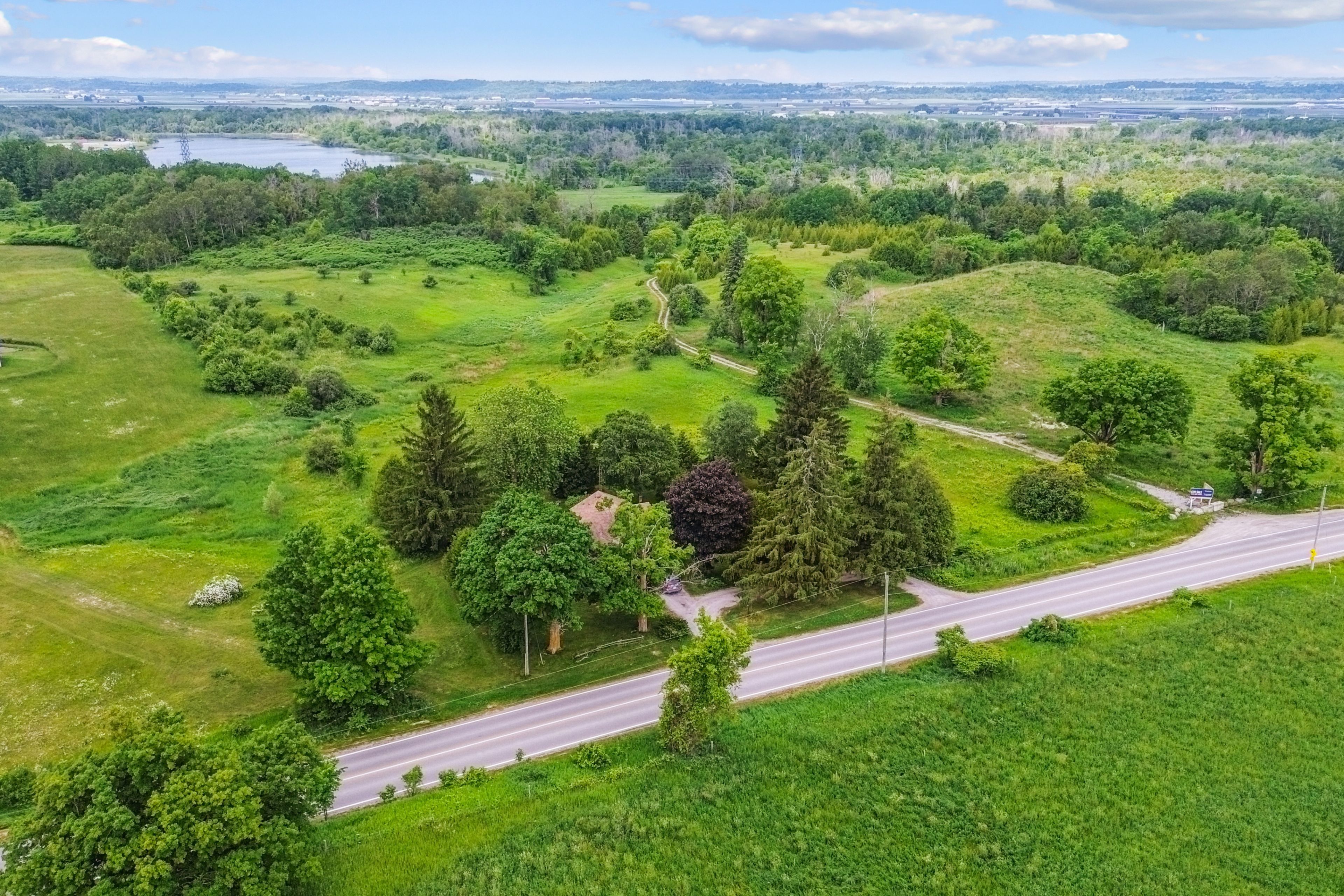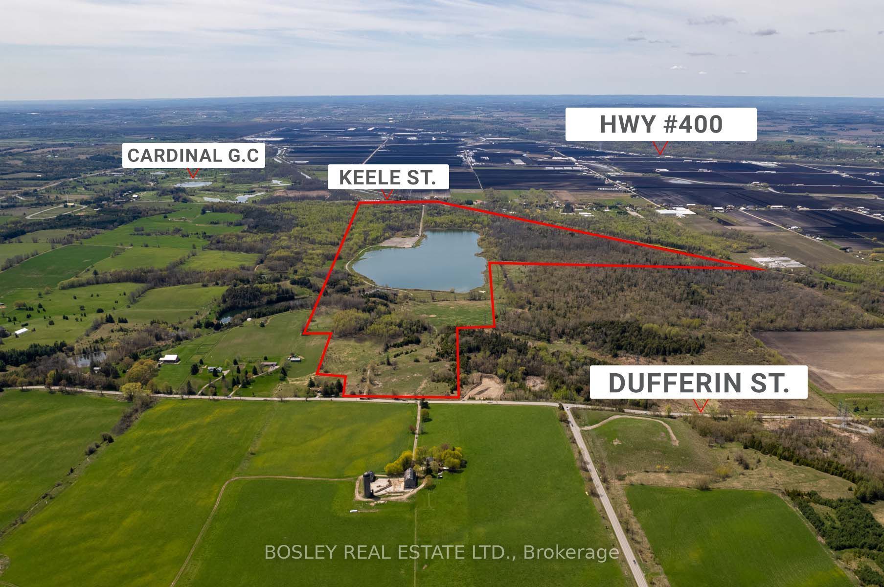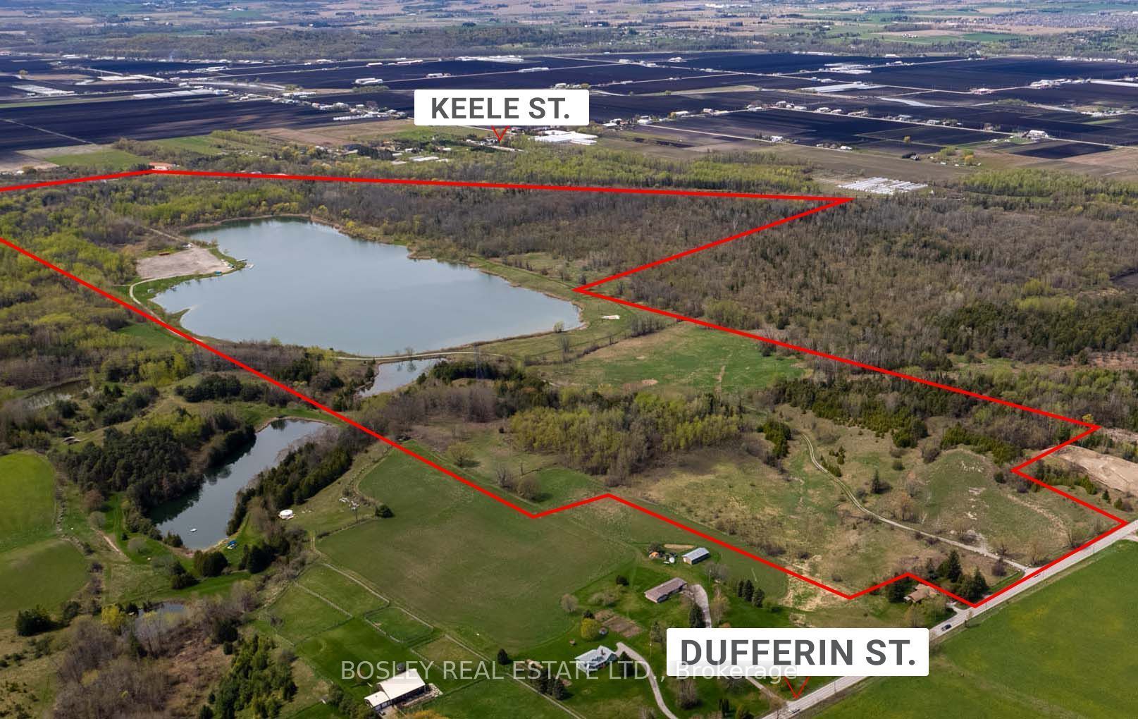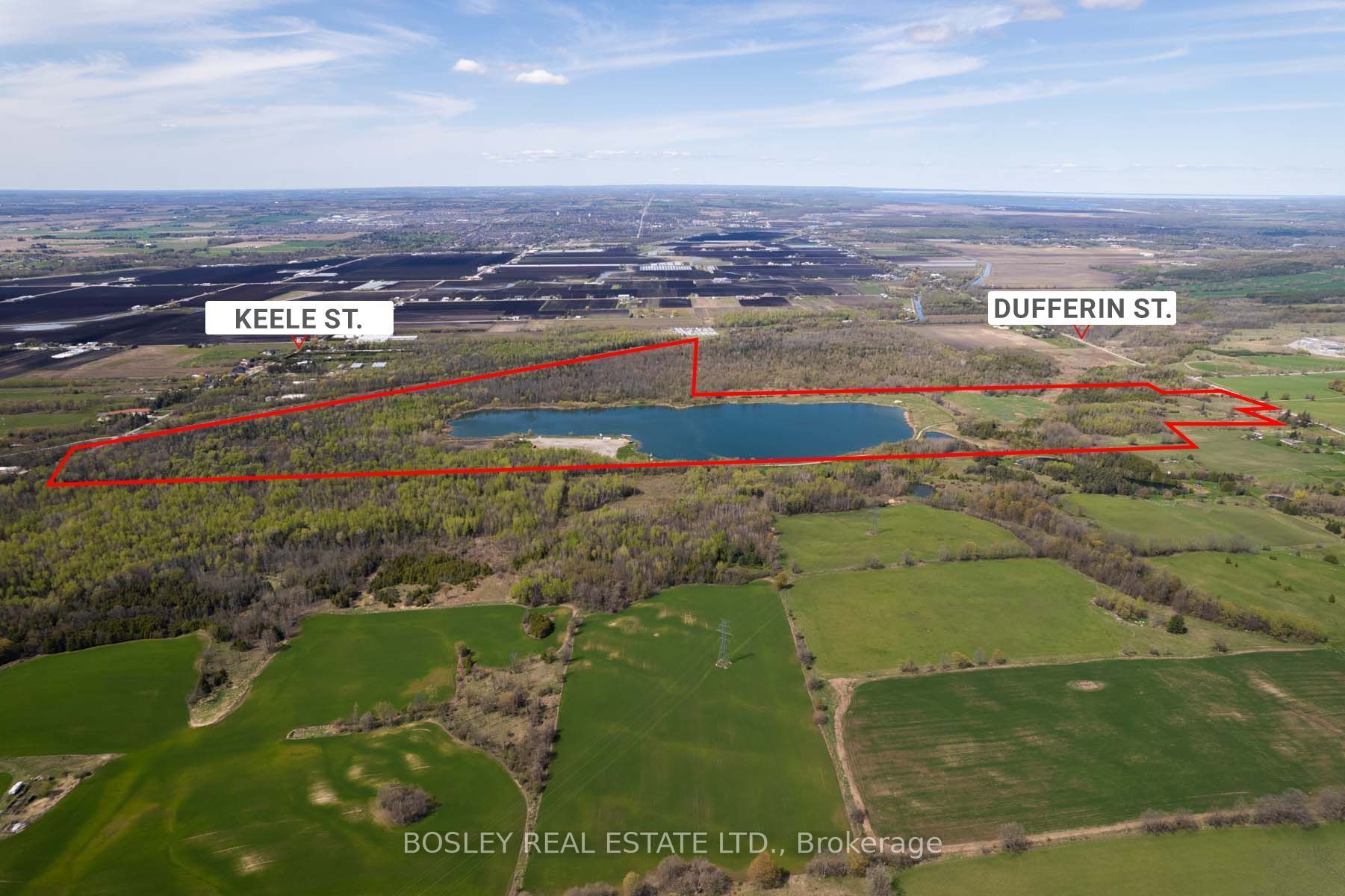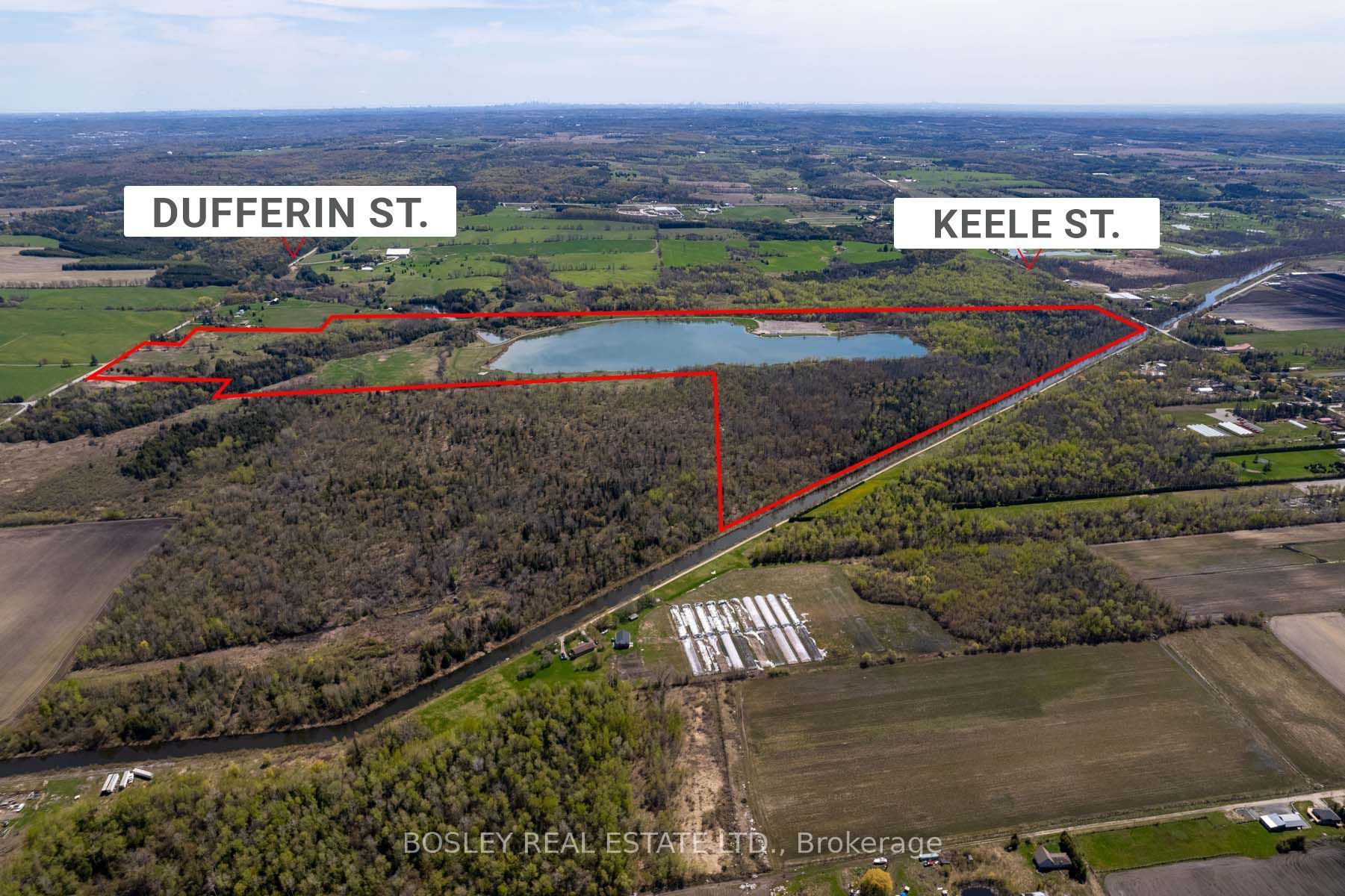 This sprawling, unspoiled property is a private retreat like no other, anchored by a stunning 45-acre lake, perfect for swimming, paddling, wakeboarding, or simply relaxing at the waters edge. The diverse terrain features rolling meadows, lush forest, high dry plateaus, and trails throughout, making it ideal for hiking, atv'ing, or horseback riding. With approximately 700 feet of road frontage on dufferin, 800 feet of road frontage on keele and an internal road network already in place, this is a turnkey canvas for a private family compound or future country estate. Multiple elevated build sites with panoramic views offer incredible potential to design your dream home in total seclusion. The scale and topography of this land are truly one-of-a-kind, feeling worlds away while still being minutes to amenities, golf, top private schools, and major highways. The property is poised for redevelopment or long-term land banking. Private, serene, and surrounded by nature this is a once-in-a-generation opportunity to own one of the most significant land holdings in king.