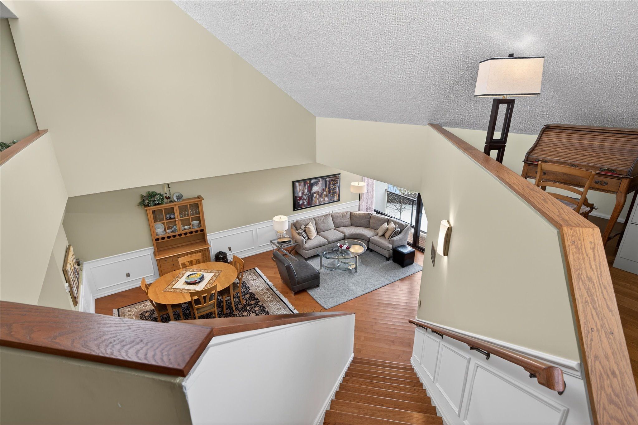 • Loft area with gas fireplace, office space, and access to rooftop patio.