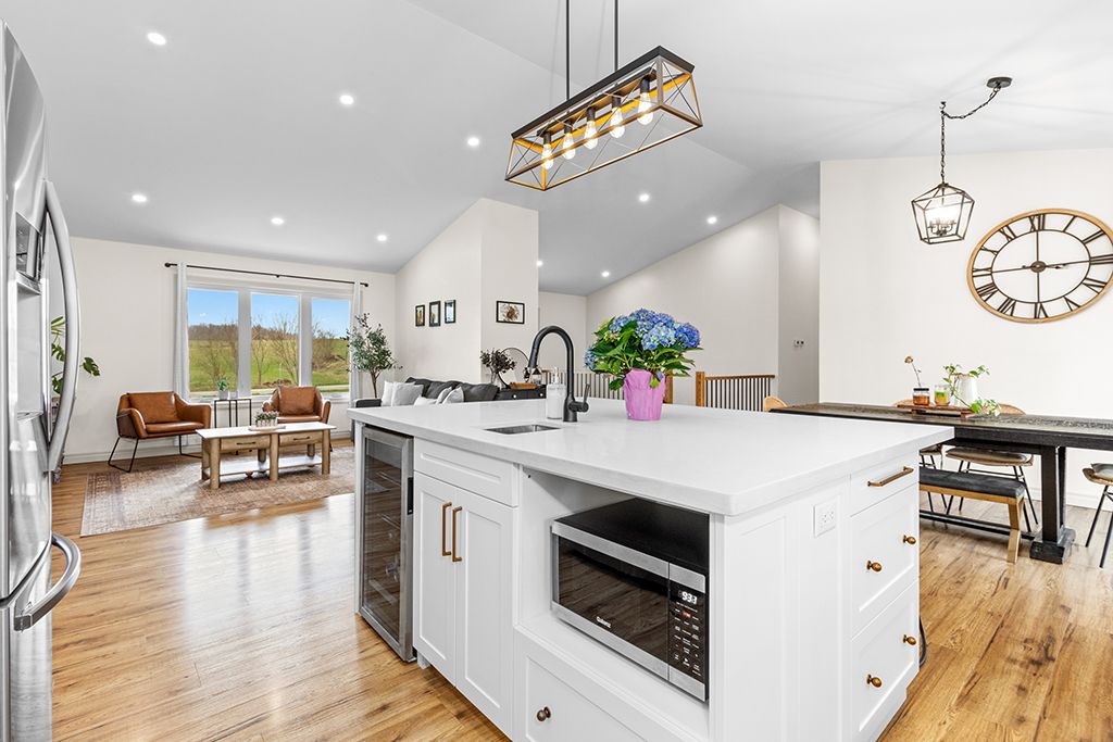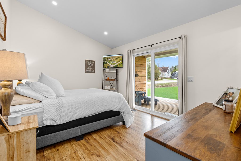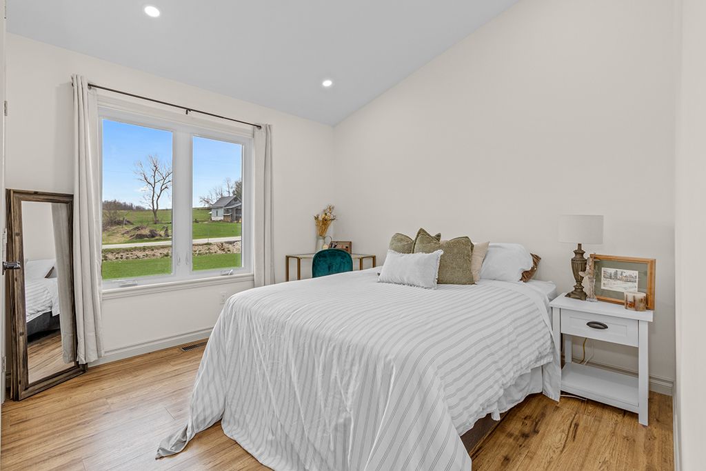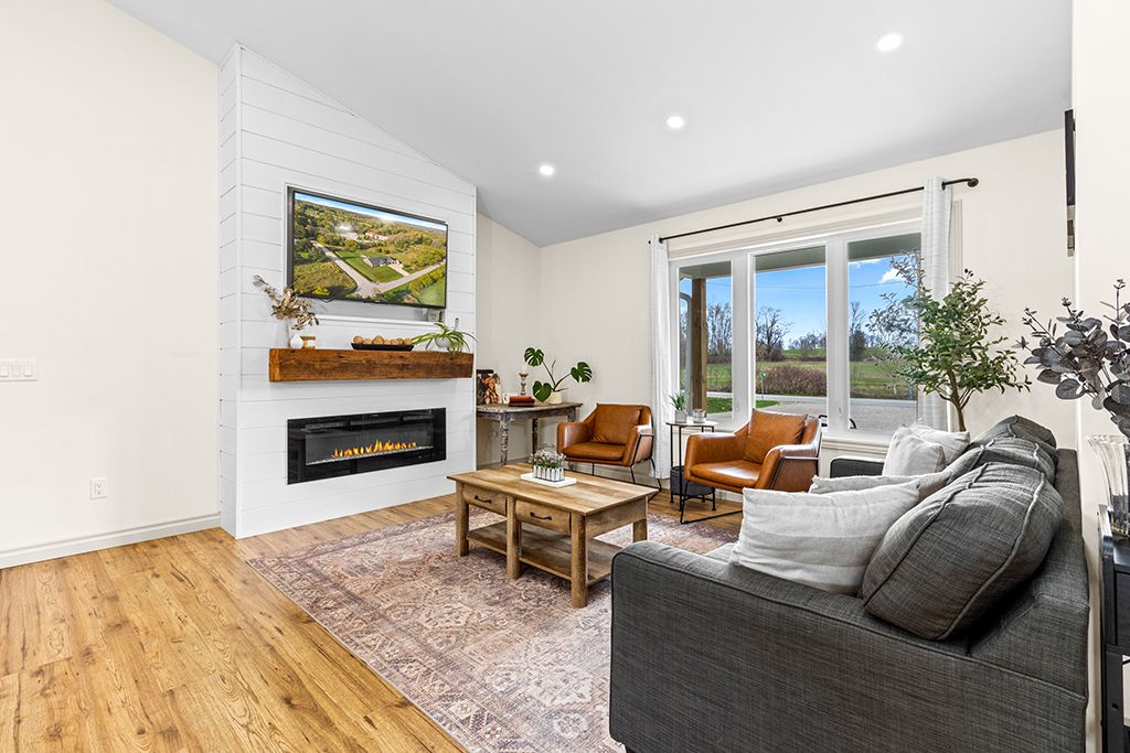 More home. More land. A quieter way of living. Gorgeous custom-built bungalow on a beautifully landscaped 0. 6 acre lot offering 5 bedrooms, 4 bathrooms, and bright open living spaces designed for comfortable one-floor living. Located in a peaceful village setting just moments from the bruce trail, walters falls and local farm stores with markdale, meaford, owen sound and southern georgian bay attractions all within a short drive. Designed for everyday comfort and entertaining, the main floor features an open concept layout where a chef-inspired kitchen flows seamlessly into the spacious living and dining areas. Oversized windows fill the home with natural light and create a warm, inviting atmosphere. The primary suite offers a private retreat with a generous walk-in closet, luxurious 5 piece ensuite and direct access to the covered rear deck - perfect for morning coffee or relaxing evenings. Two additional main floor bedrooms provide generous space and large windows. A practical mudroom and laundry area with powder room and direct access to the heated double garage add everyday convenience, while heated tile floors ensure comfort (foyer, 2pc bath and ensuite). The fully finished lower level expands the living space with high ceilings and large windows, offering two additional bedrooms, a full bathroom, a home office or gym, and a spacious family room with kitchenette ideal for guests or extended family. Outside, the landscaped grounds include a covered front porch, extended rear deck, poured concrete patio, and a gravel terrace with fire pit-perfect for summer evenings and outdoor entertaining.