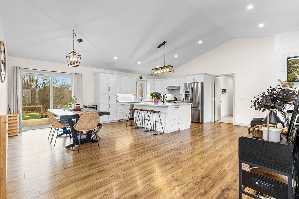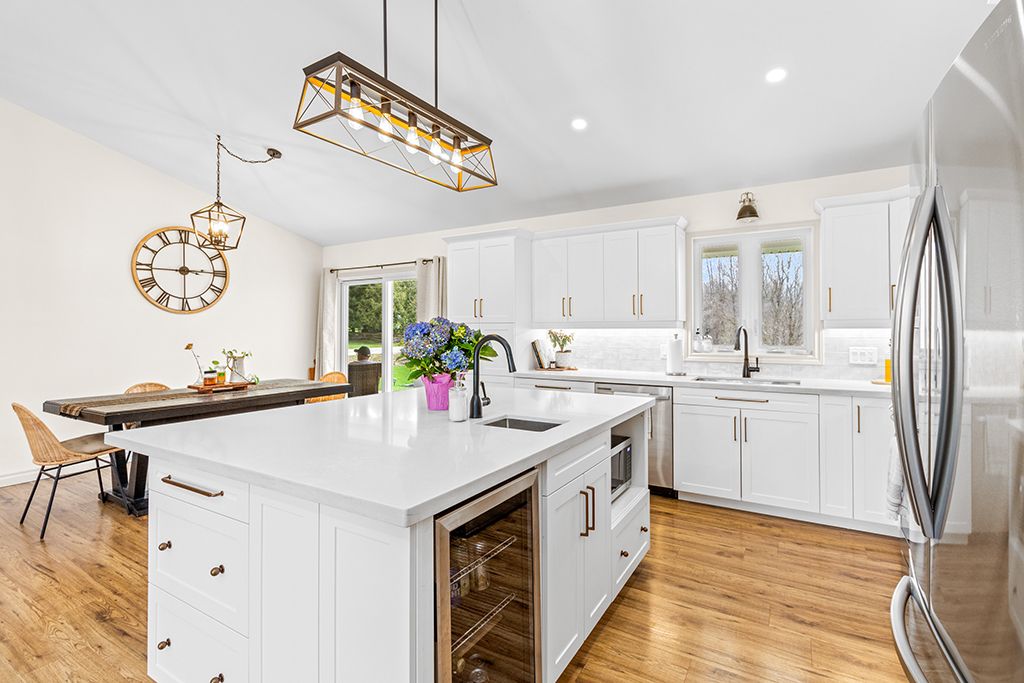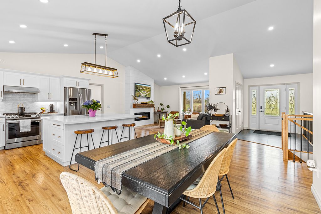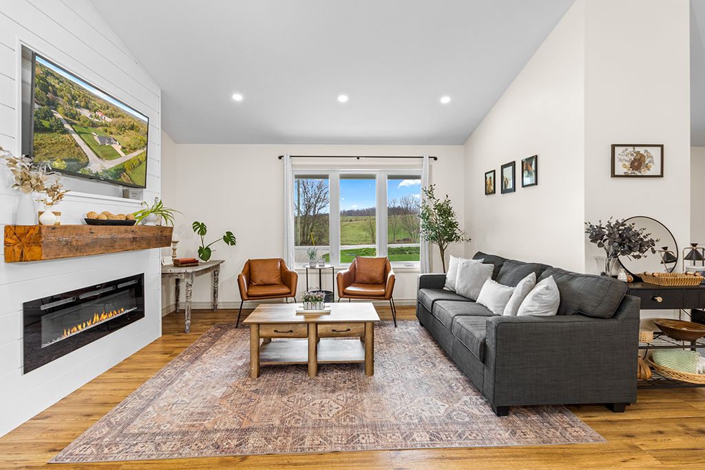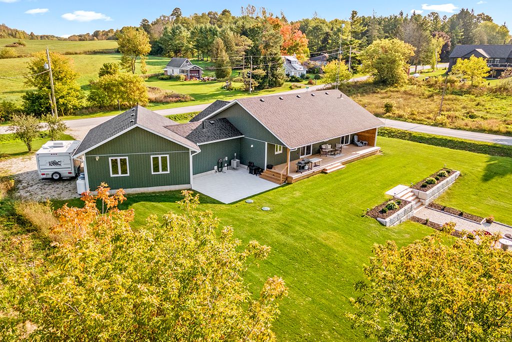 Tucked into a peaceful village setting, this custom-built bungalow is the perfect mix of quality craftsmanship, thoughtful design, and everyday comfort with just the right touch of luxury. Designed for easy one-floor living, it offers a total of 5 bedrooms, 4 bathrooms and open, airy living spaces that welcome you home. The main floor showcases an open-concept layout ideal for both entertaining and everyday comfort. A chef-inspired kitchen flows seamlessly into the expansive living and dining areas, all framed by oversized windows that flood the space with natural light. The elegant primary suite is a private retreat, featuring a walk-in closet worthy of a fashion enthusiast, a luxurious five-piece ensuite, and direct access to the covered rear deck perfect for morning coffee or unwinding in the evening. Two additional main-floor bedrooms offer generous proportions, oversized windows, and ample closet space. A thoughtfully designed mudroom/laundry complete with 2pc powder room and direct access to the heated double garage, adds to the home's exceptional functionality. Heated tile floors ensure comfort on the main level, while high ceilings and abundant windows continue into the fully finished lower level. Here, you'll find two more bedrooms, a full bath, a home office/gym, a spacious family room with kitchenette, plus dedicated utility, storage and cold storage spaces. Outdoors the spacious 0. 6 acre lot boasts a poured concrete patio, covered front porch, extended back deck and lovely landscaping featuring an attractive gravel terrace with a fire pit that ensure you're ready to spend the summer entertaining or relaxing outdoors. Just a stone's throw from the bruce trail, the scenic beauty of walters falls and local farm stores. Under 20 minutes from southern georgian bay attractions + shopping, schools, health care and amenities in nearby markdale, meaford & owen sound. This distinguished home offers the best of rural tranquility combined with refined modern living.