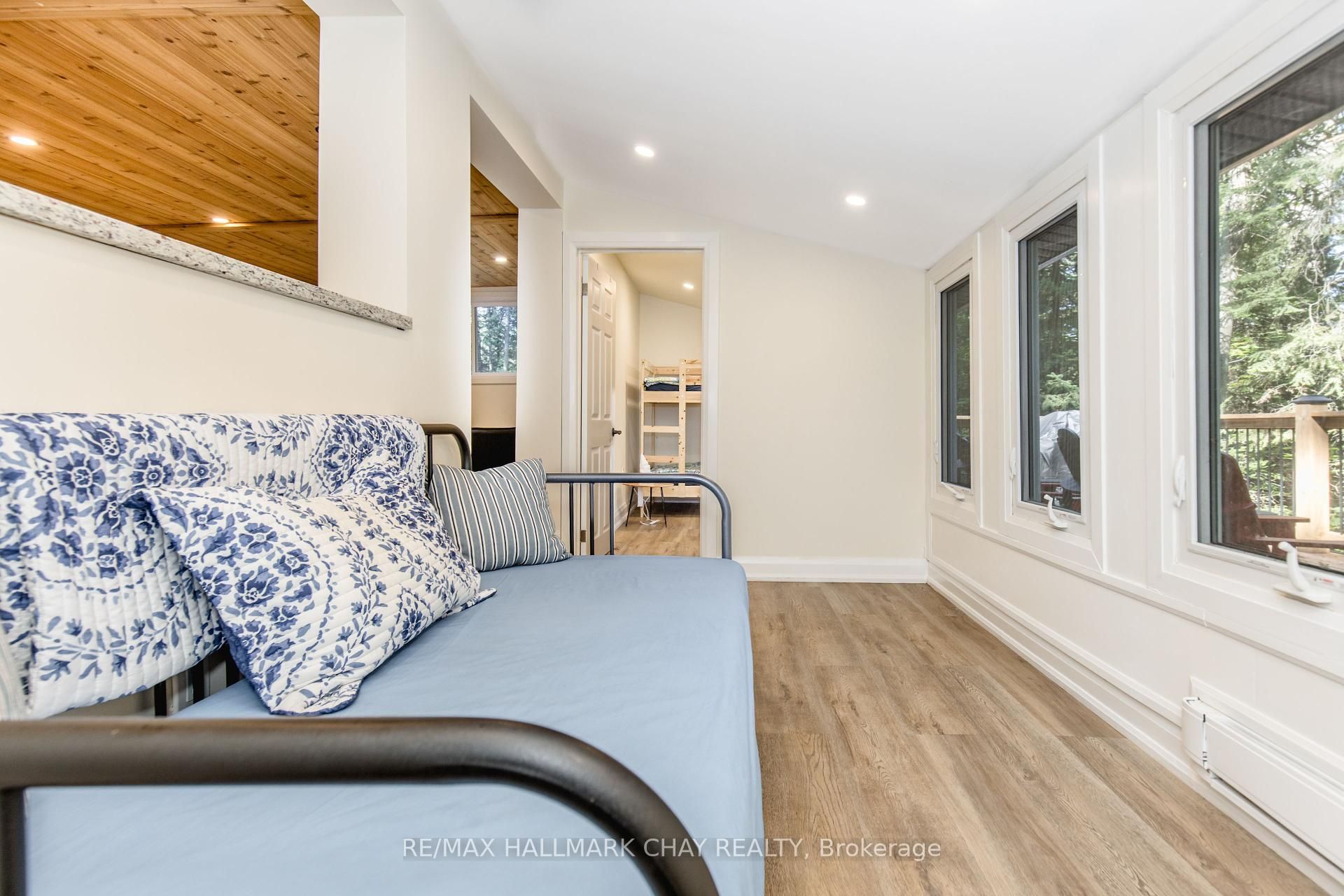 Welcome to this beautiful partially winterized and renovated cottage top to bottom with direct access to a wide section of the peaceful muskoka river. Fully renovated from the studs in 2023. One of the best opportunities at this price point that has had $130,000+ in renovations since 2023. Elevated from the river, so no need to ever worry about floods, which are more common with cottages that are closer to the river. All season road for year round access. Upgrades include: kitchen 2023, bedrooms and muskoka room 2023, plumbing 2023, electrical 2023, appliances 2023, roof/soffit/gutters 2023, insulation/drywall 2023, water proof sealing 2023, vinyl siding and wood staining 2023, all doors 2023, baseboard and trim 2023, windows 2023, baseboard heaters 2023, vinyl plank and flooring 2023, painted 2023, 12x26 deck 2023. Amazing opportunity to own a cottage or investment property at an affordable price and make money by renting it short or long term to off set costs. Brand new furniture, decor items, new appliances and 2 kayaks are included. Located at the end of brodie kay trail for maximum privacy.