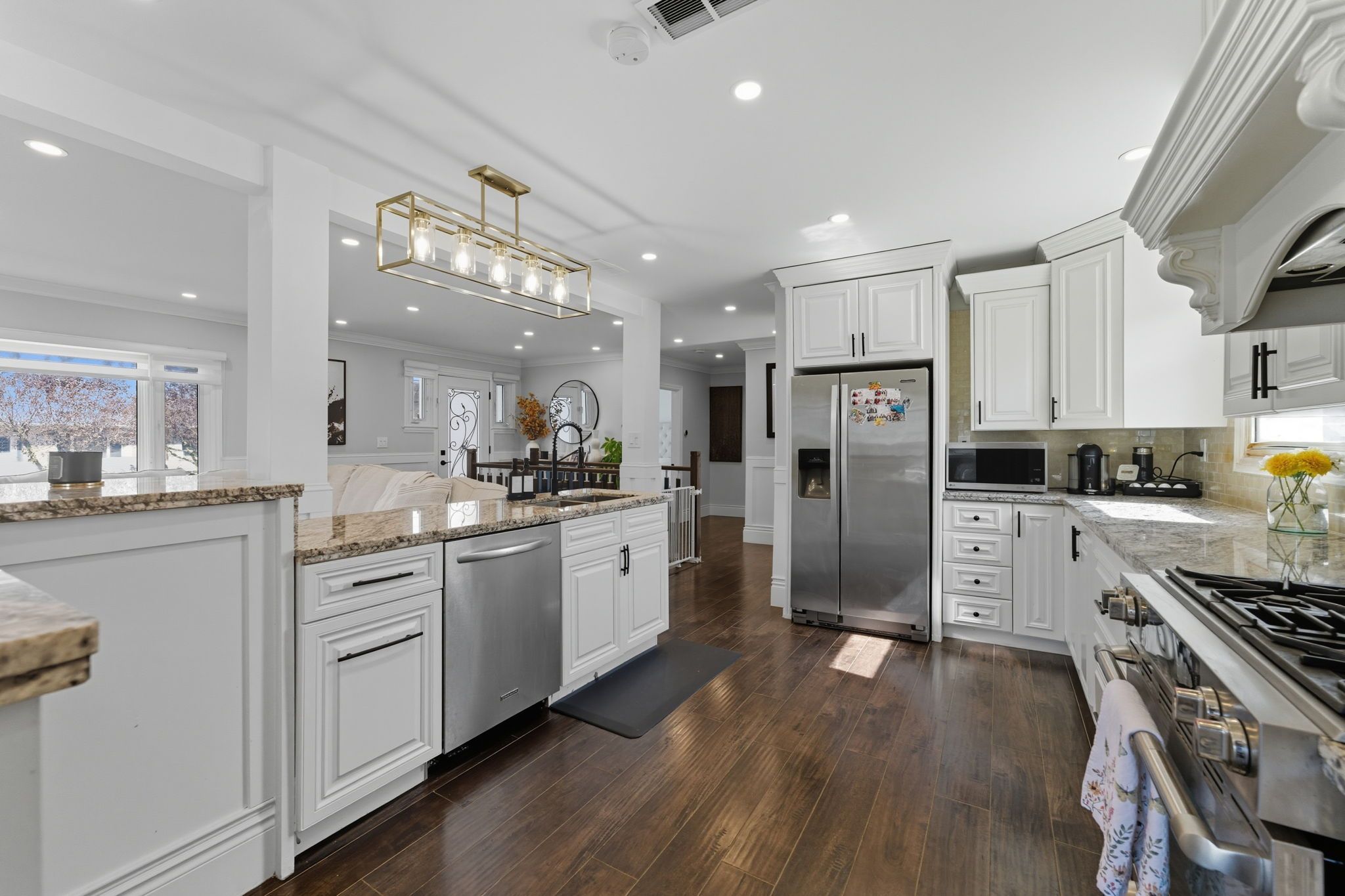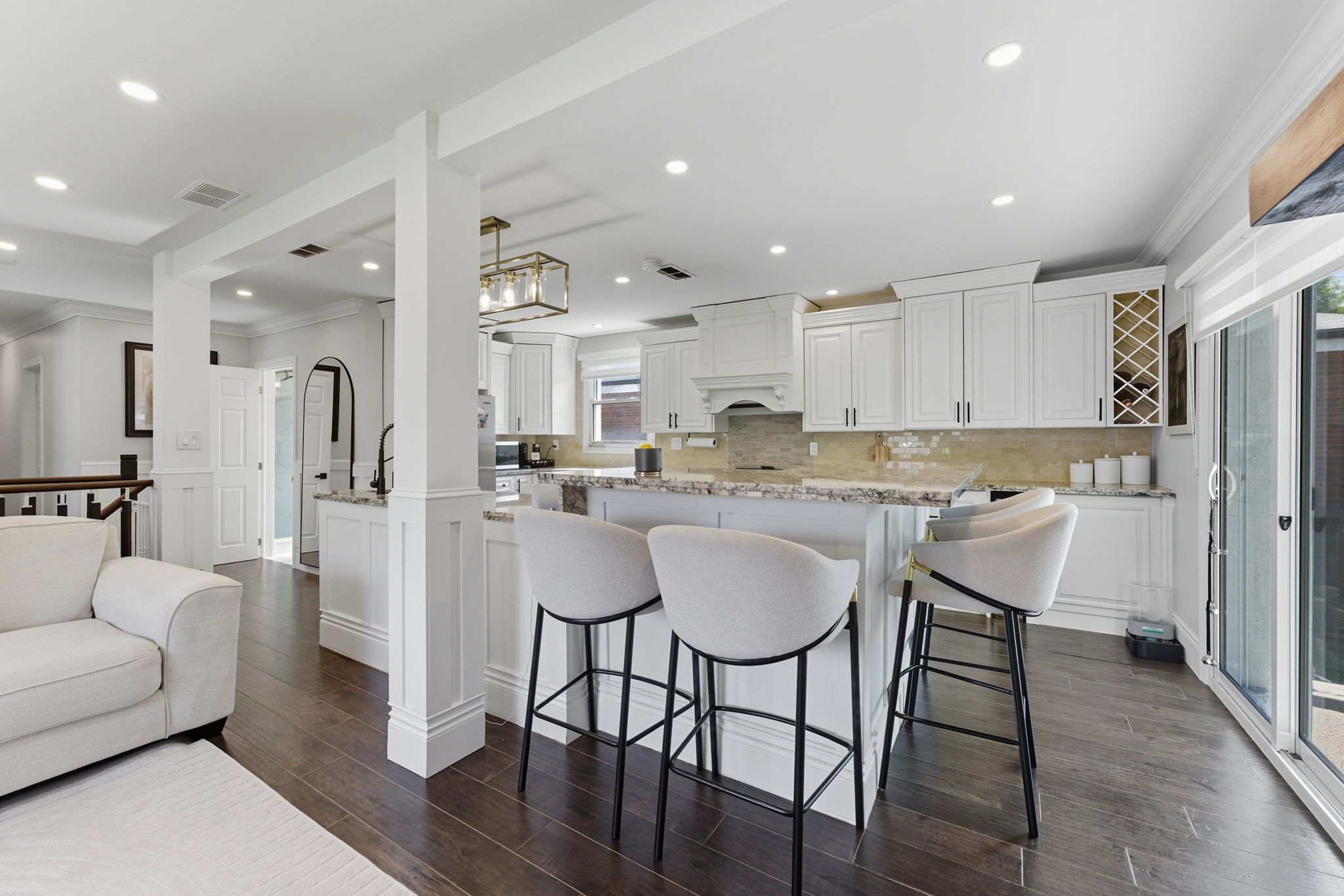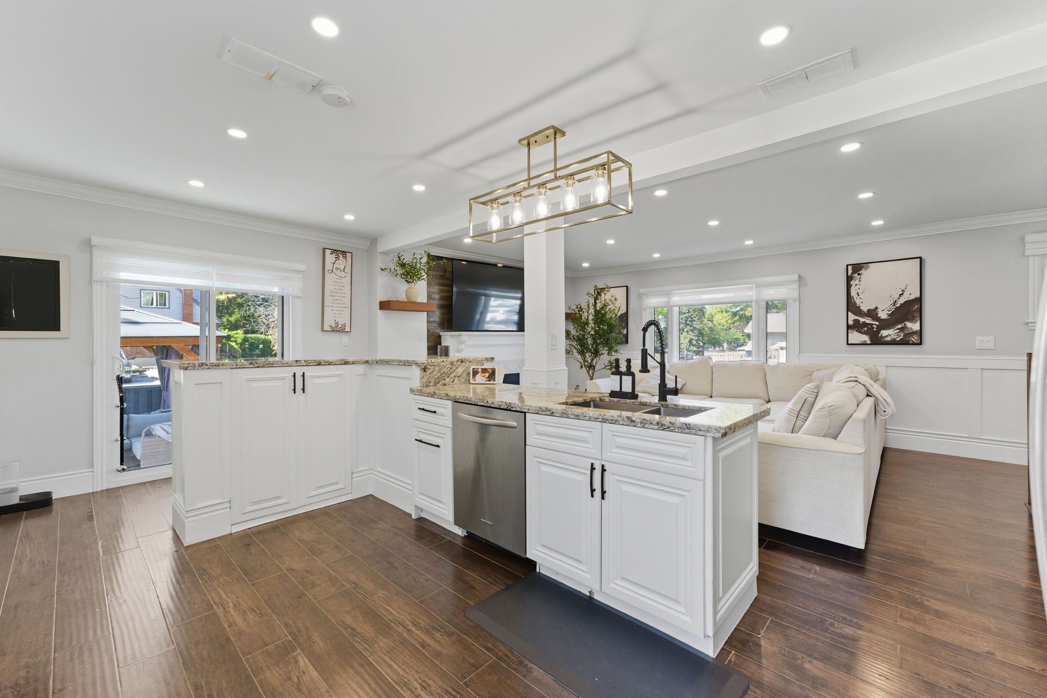 • Bright open-concept main floor with living room and eat-in kitchen.