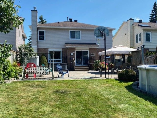 Welcome to this beautiful home and sanctuary ideally situated on an amazing 157' deep lot backing onto the wooded ncc greenbelt with access to a huge network of paths & trails! Lovingly maintained and enjoyed by long time owners this home will wow you the moment you step in to a breathtaking 2 storey entrance foyer flooded with light and a grand staircase! The former model home has a terrific 2439 s. F. 4 bdrm floorplan combining traditional features such as a separate dining rm and for the busy family a large kitchen with an island & breakfast area open to the family rm with a gas fireplace! Also enjoys a spacious ensuite bath and main floor laundry with a side door entry! The backyard provides year round outdoor enjoyment with an above ground swimming pool, gazebo, pretty gardens with perennials & berries and plenty of space for the kids to play and in the winter relax in the steaming hot tub or cross country ski from your backyard! Many great features & updates include... Hardwood flooring in lr, dr & family rms, laminate in kitchen 2023, patio door & windows 2011&2018, skylight 2024, front entry door 2022, roof shingles, gas furnace 2014, a/c 2016, garage doors 2021, driveway 2021, front interlock patio & walkway! The unfinished basement has a games area, large workshop area with built-in shelving, cold storage and plenty of space for storage or future development. This lovely family home represents a wonderful opportunity to live in an established treed & quiet section of bridlewood with no through traffic and close access to the ncc pathways, trans canada trail & parks! Bike or walk for miles... Perhaps bike in the summer to work at the dnd hq carling campus or enjoy a bike ride to the ottawa river! Ideal location with a short walk to a bus stop and hazeldean mall, quick access to the 417 at eagleson & close proximity to schools, shops and amenities! 24 hour irrevocable on all offers.