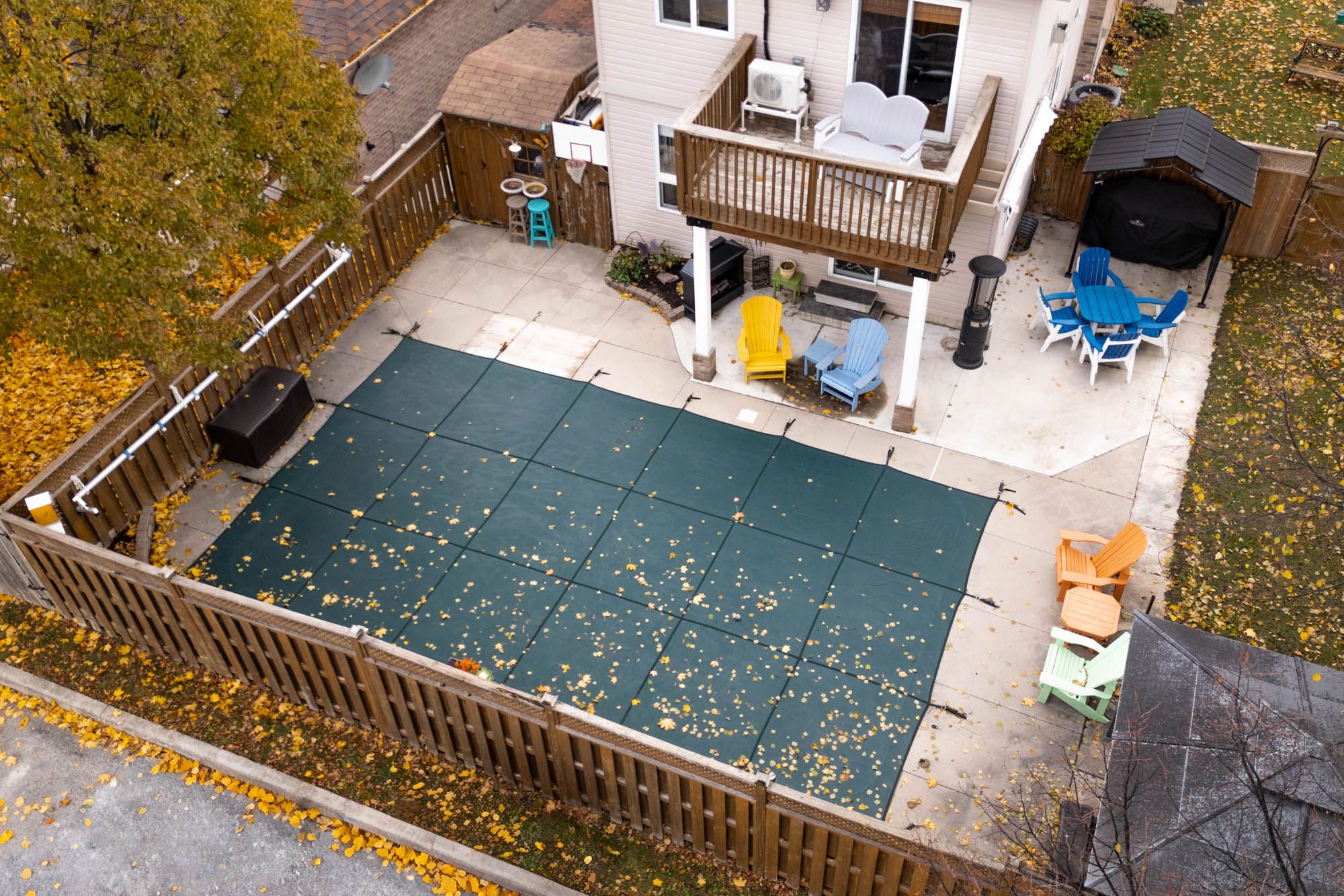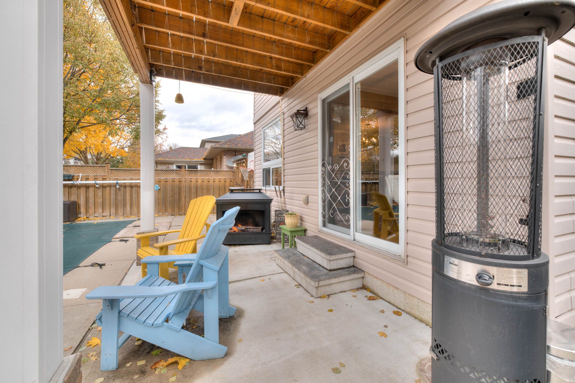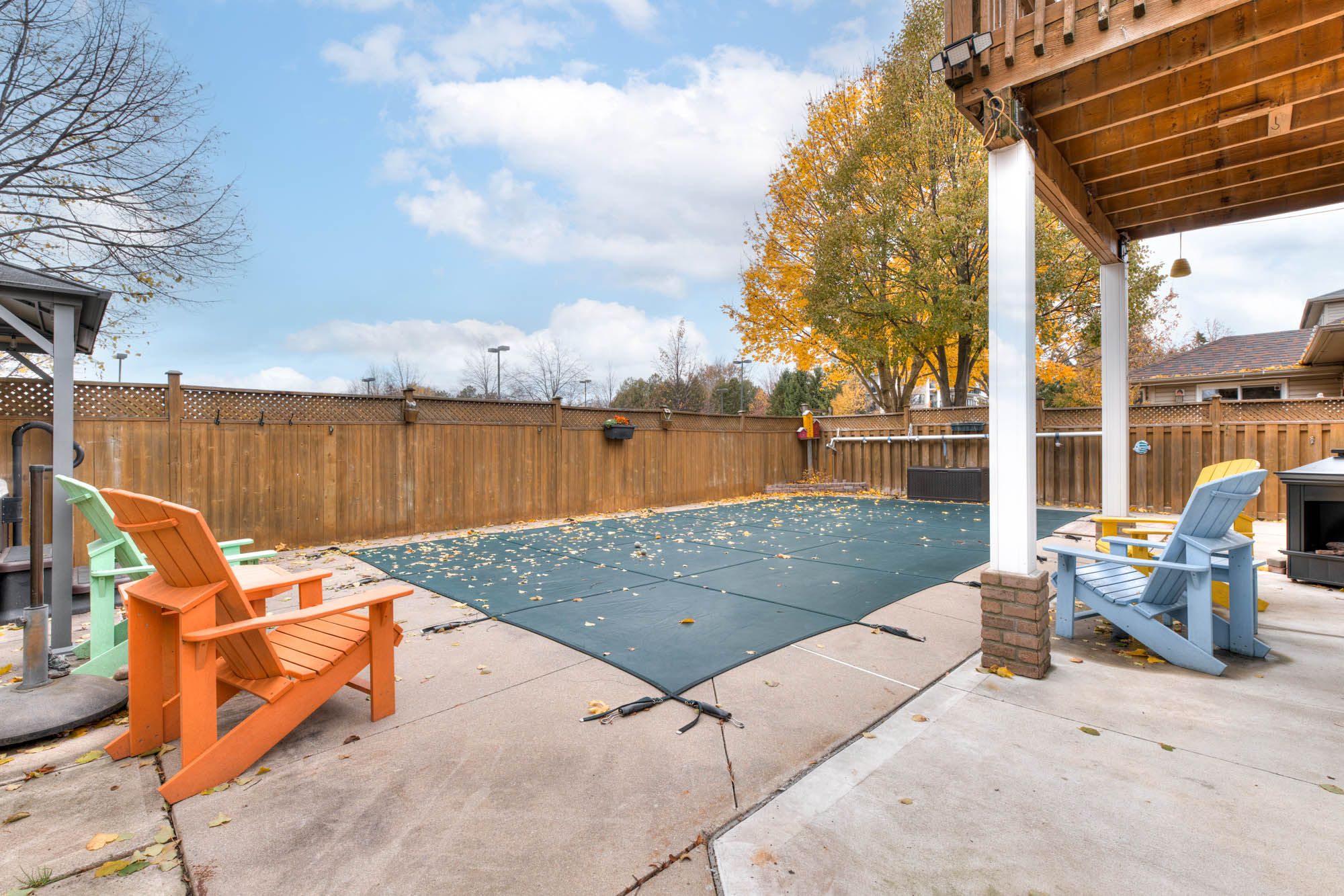 • Private backyard oasis with a heated inground pool and hot tub.