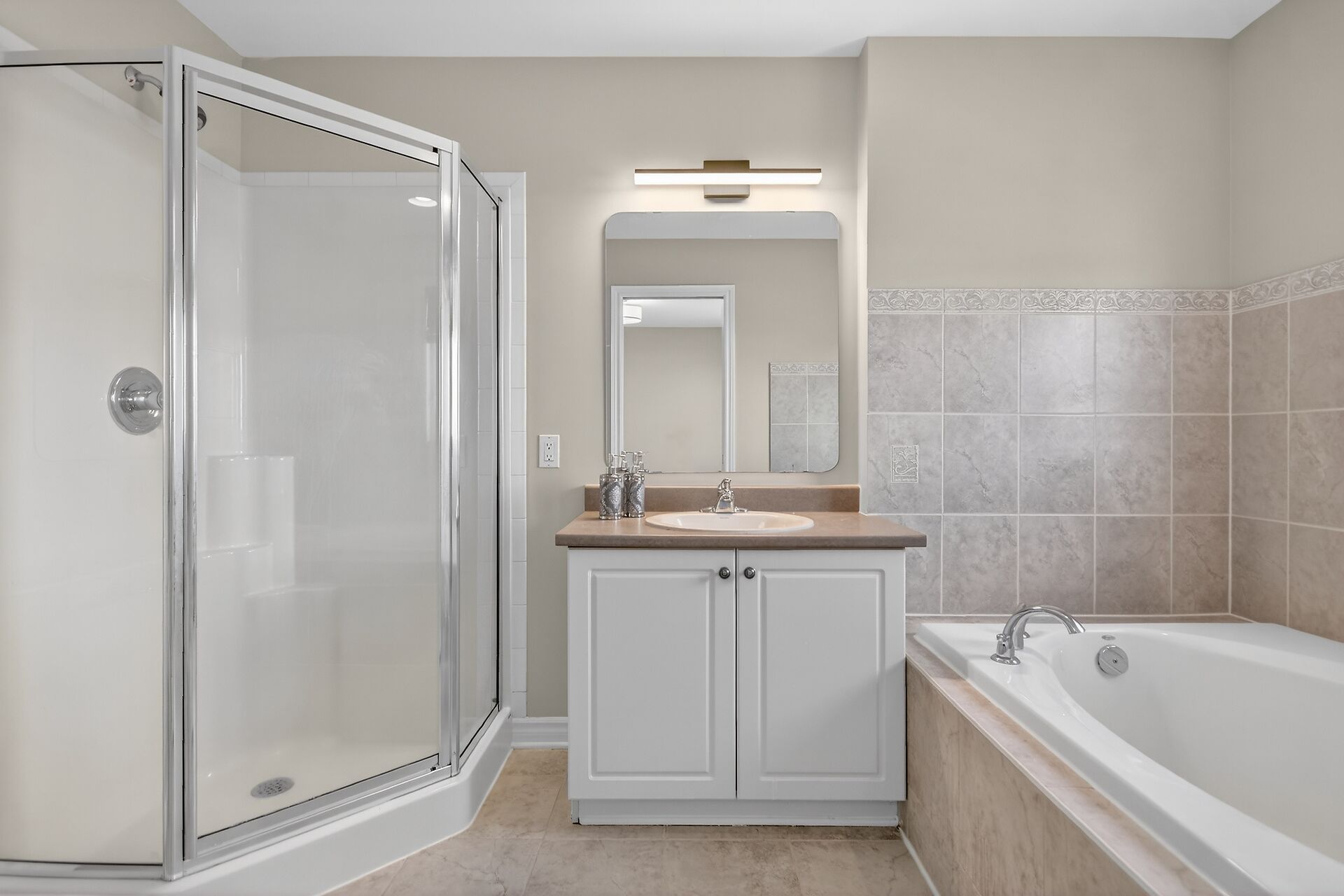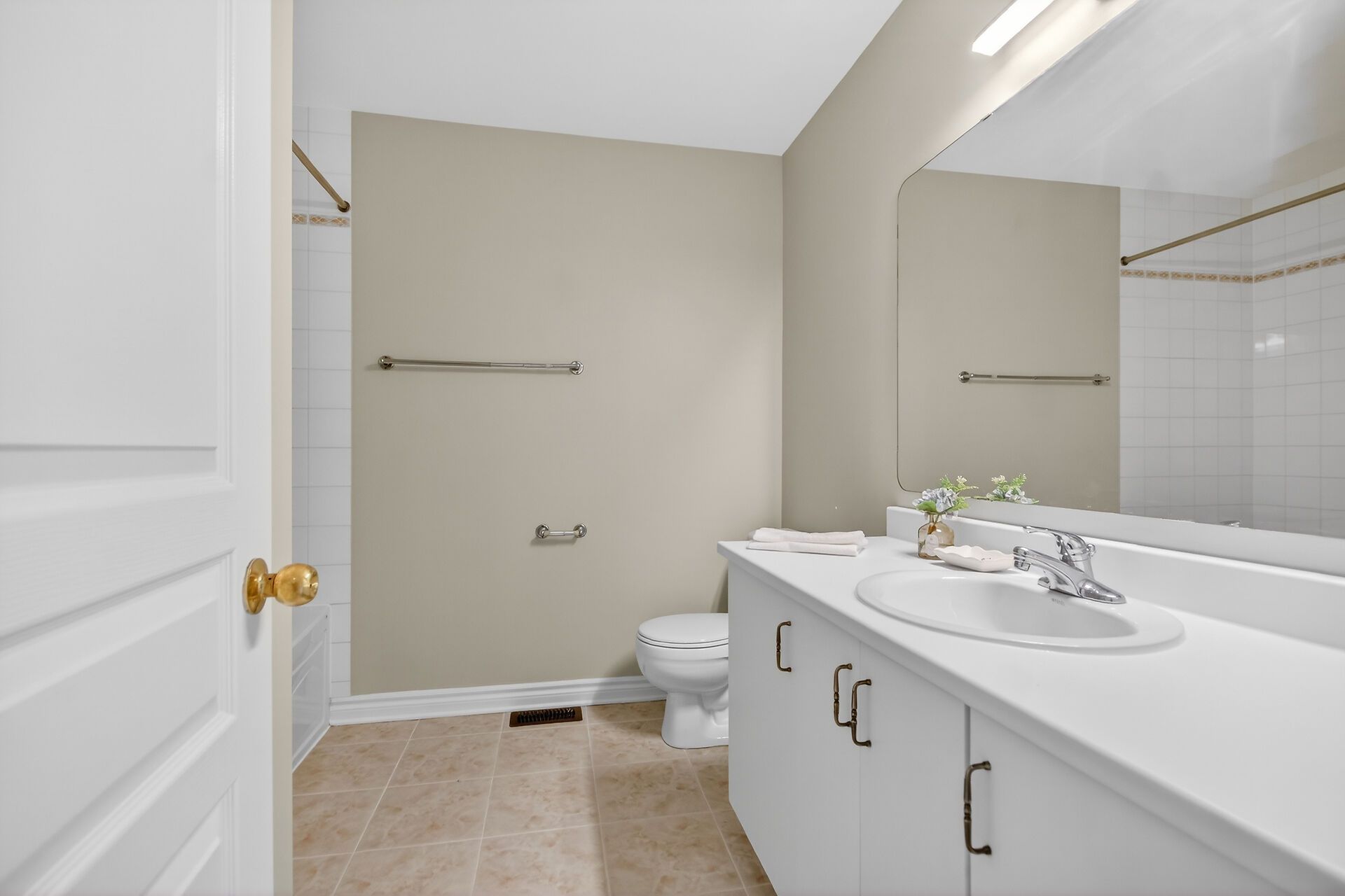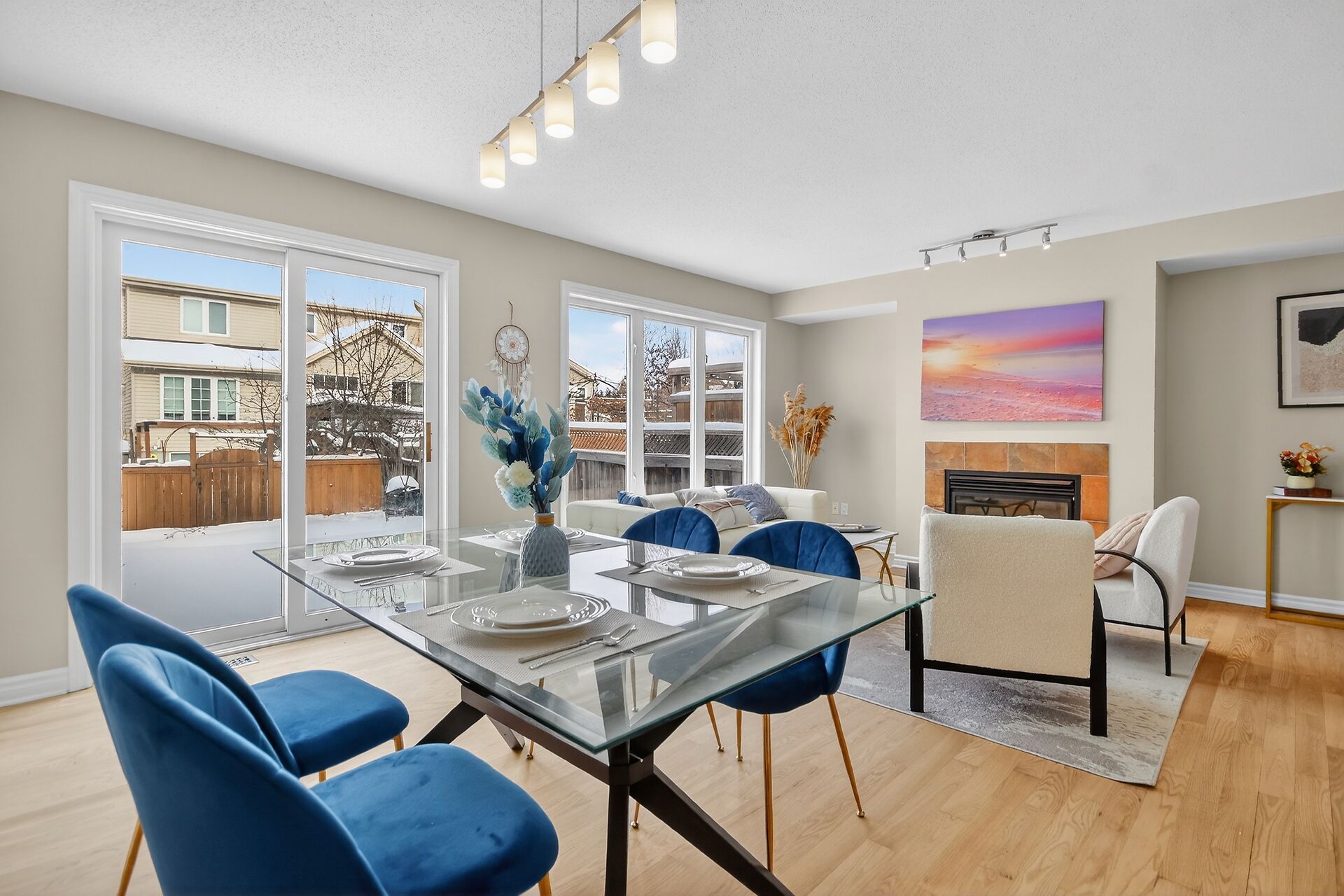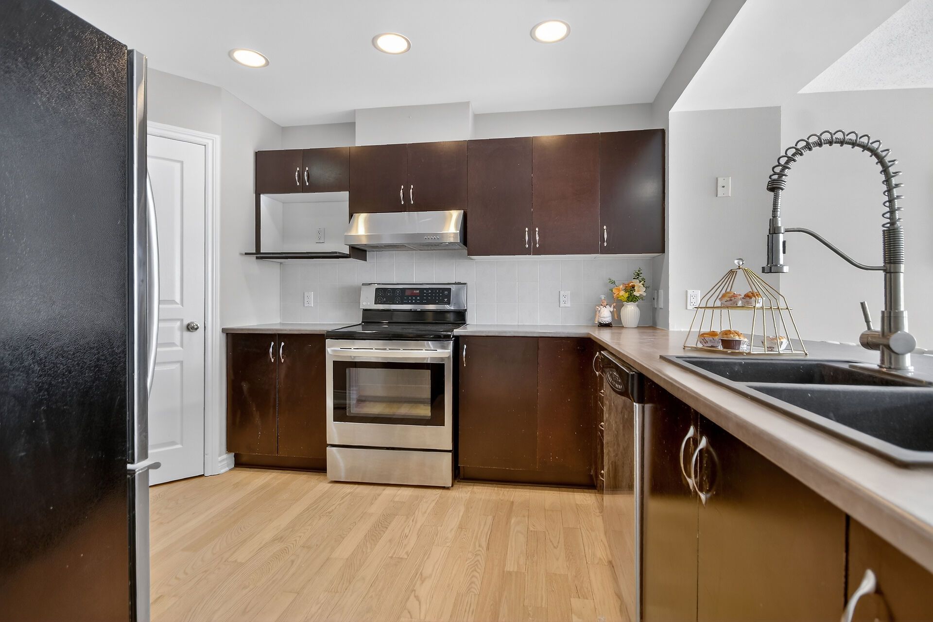 Welcome to 182 saddlesmith drive, a beautifully updated and well-maintained townhome offering a bright, functional layout and inviting living spaces. The main level features gleaming refinished hardwood floors and large, bright windows that fill the home with natural light. An open-concept design seamlessly connects the living room, dining area, and kitchen-ideal for both everyday living and entertaining. The living room is anchored by a cozy gas fireplace, creating a warm and welcoming focal point. Ceramic flooring enhances the foyer, kitchen, and all bathrooms, adding durability and style. The home has been freshly painted throughout in tasteful, neutral tones, making it truly move-in ready. The kitchen offers ample counter space with a convenient pantry and breakfast bar which overlooks the main living area, perfect for hosting family and friends. Refinished hardwood railings add a polished touch to the interior. Upstairs, newer berber carpeting leads to a spacious primary bedroom that serves as a private retreat, complete with a walk in closet and full ensuite featuring a separate shower and a relaxing soaker tub. Two additional well-sized bedrooms and a full main bathroom complete the upper level. The finished lower level provides versatile living space ideal for a family room, media area, or home gym, along with generous storage and rough in for future bath . Step outside to the fully fenced backyard and enjoy the wonderful deck-perfect for summer barbecues and outdoor relaxation. Additional updates include : garage fully finished and painted, insulated garage door, aluminum wrapping around the frame, updated weather stripping , freshly painted utility room floor, fixtures, gas hook up for bbq and dryer, much more ! Situated on a quiet street with convenient access to parks, top rated schools, shopping, and transit, this home offers comfort, quality upgrades, and an exceptional opportunity in a desirable kanata neighbourhood.