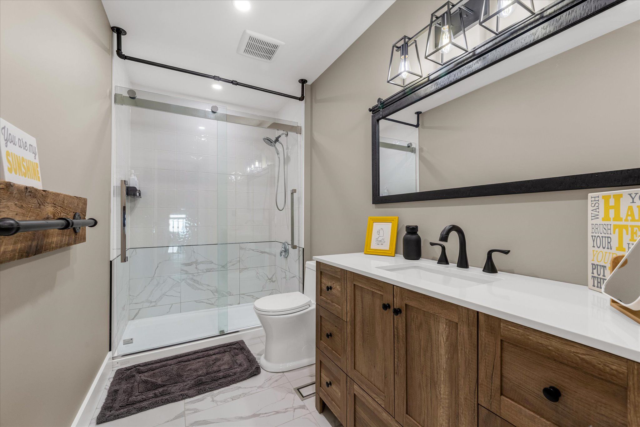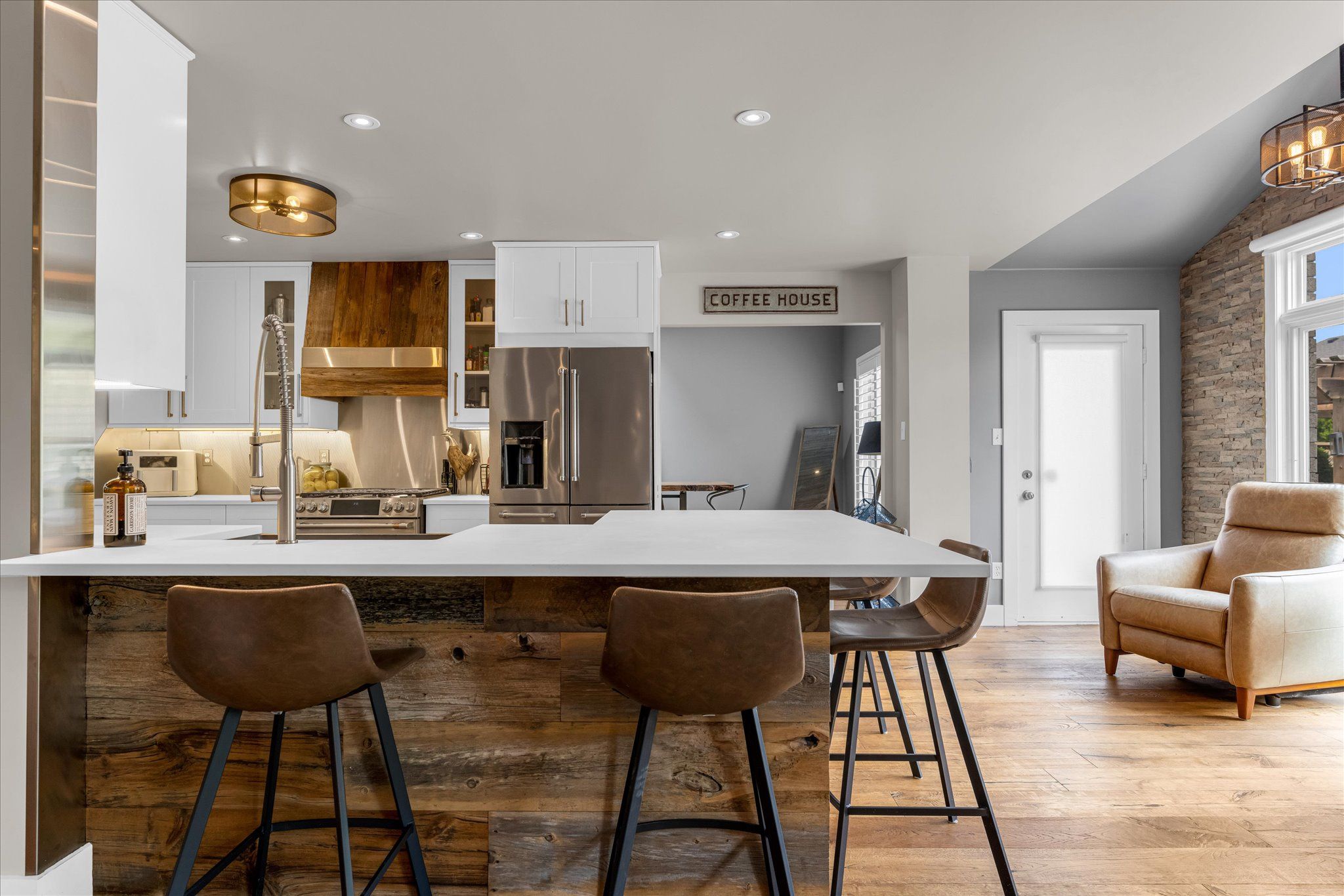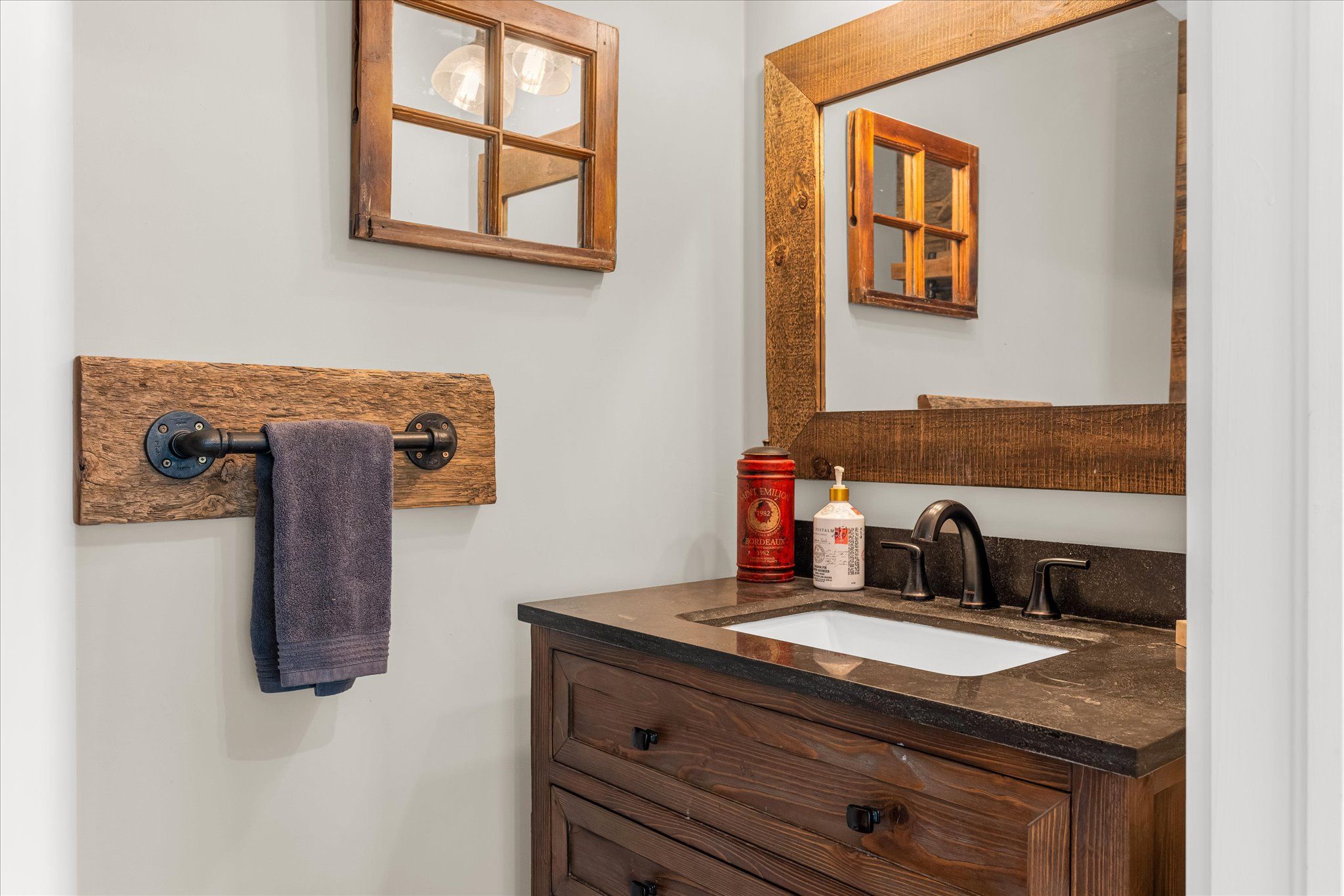 • Rustic décor creates a warm and inviting atmosphere throughout.