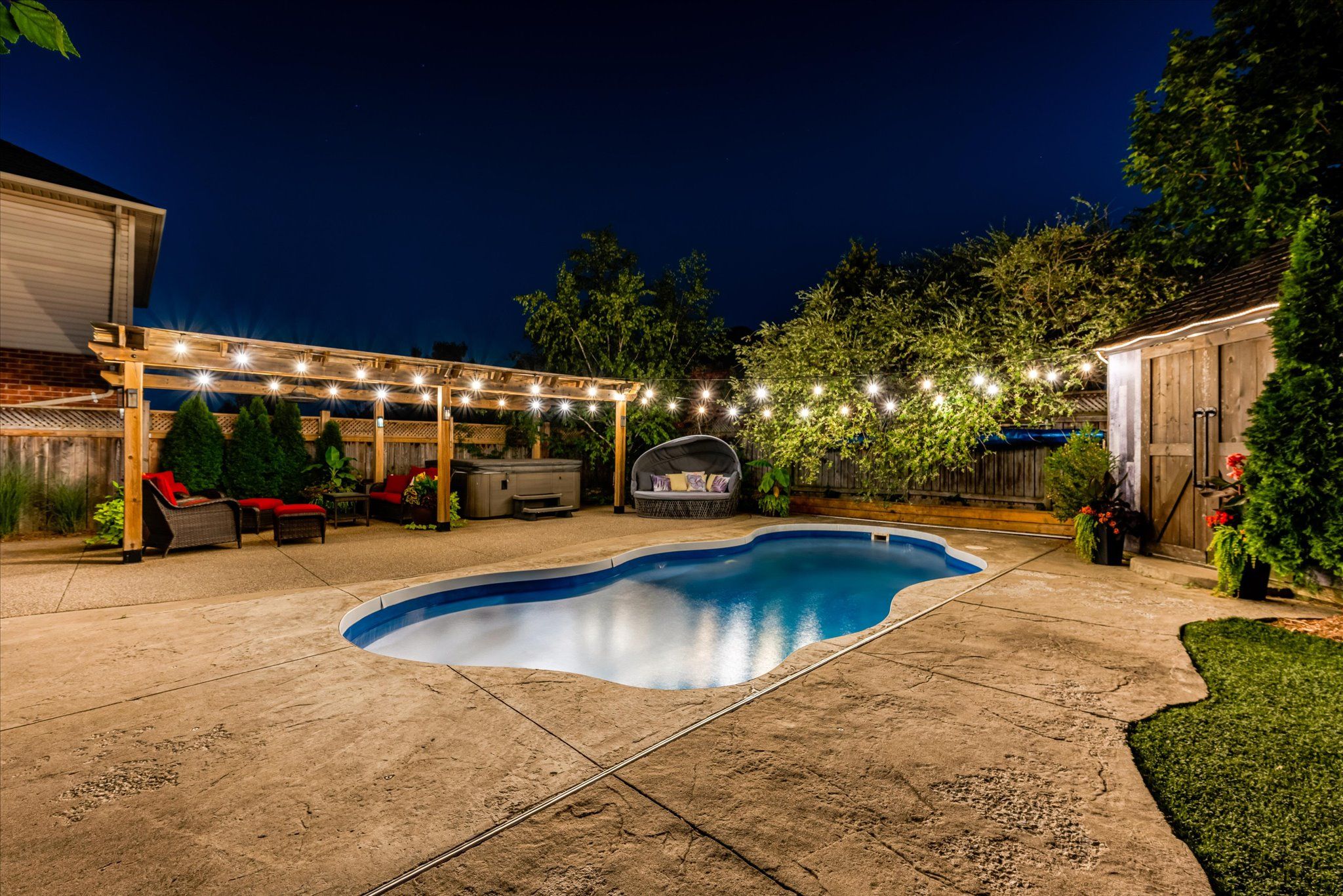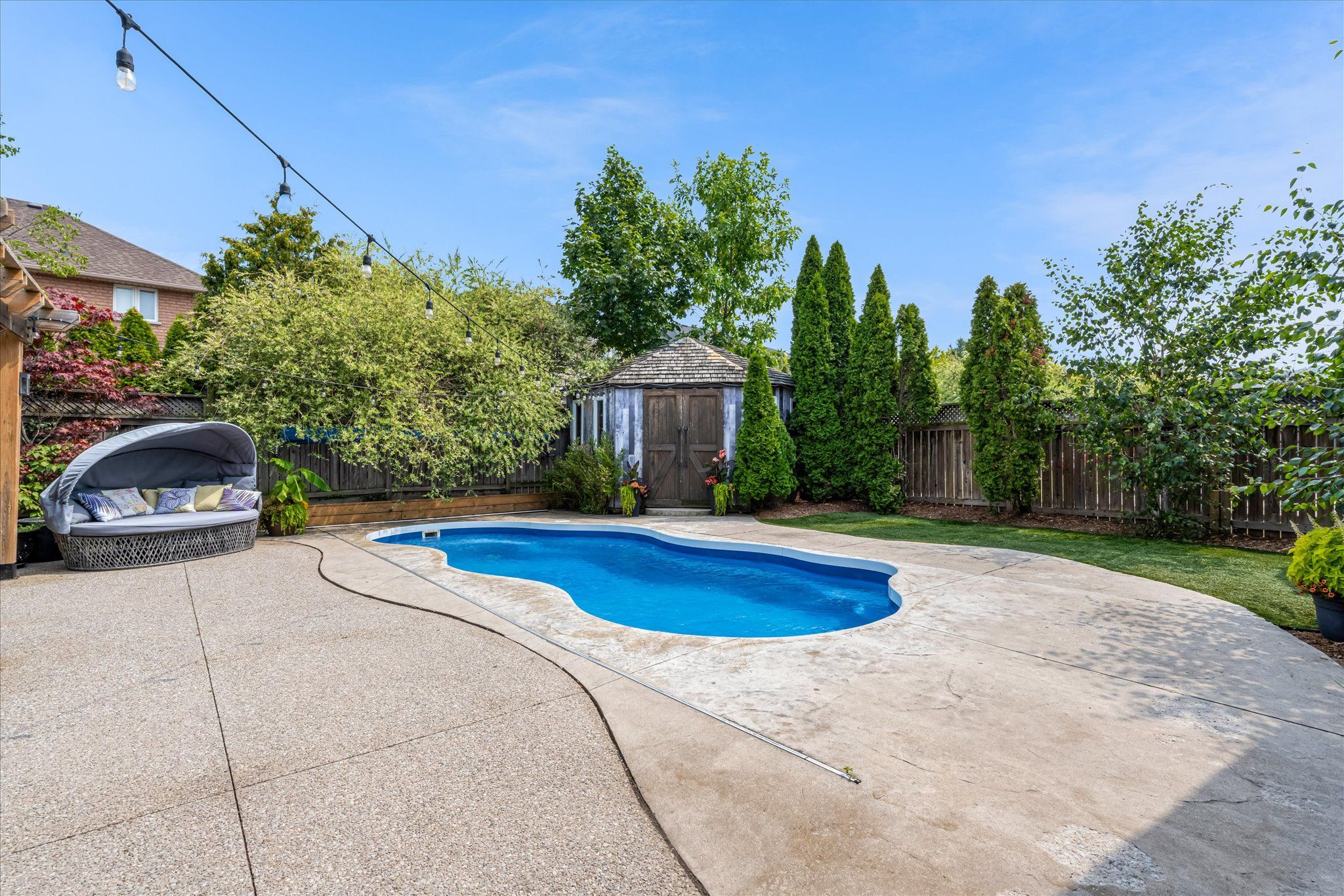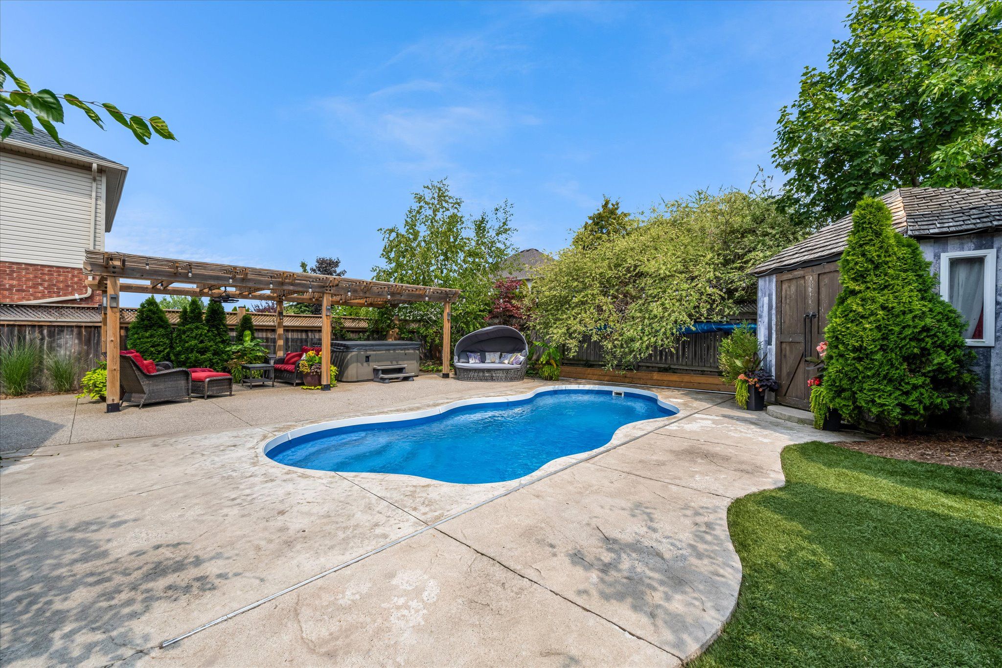 In desirable winona, this stunning upgraded two-storey home with a finished basement offers the perfect blend of luxury living and warm cottage-inspired charm. The home features numerous upgrades and a thoughtfully designed interior with rustic décor that creates a welcoming lifestyle atmosphere. The finished basement provides additional living space ideal for family living or entertaining. Step outside to a dream private backyard oasis complete with an incredible inground pool, relaxing hot tub, and a beautiful gazebo for gatherings. The exterior is finished with exposed aggregate and professional landscaping throughout, creating a truly impressive outdoor setting. Located in a highly sought-after family-friendly neighbourhood, this home is just minutes to parks, schools, costco, and everyday amenities. Brand new to the market and sure to attract strong interest. Make an appointment today to view this exceptional property.