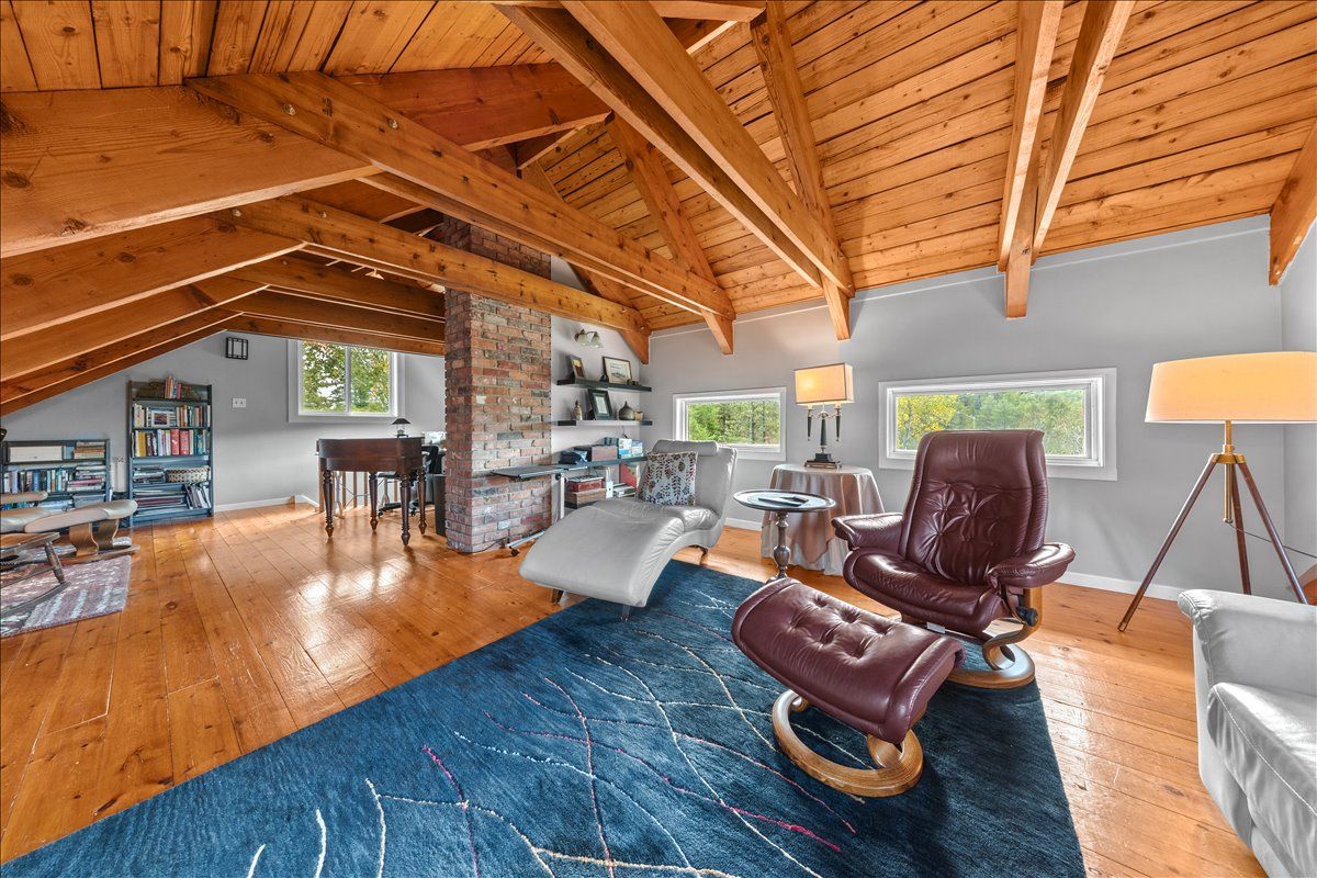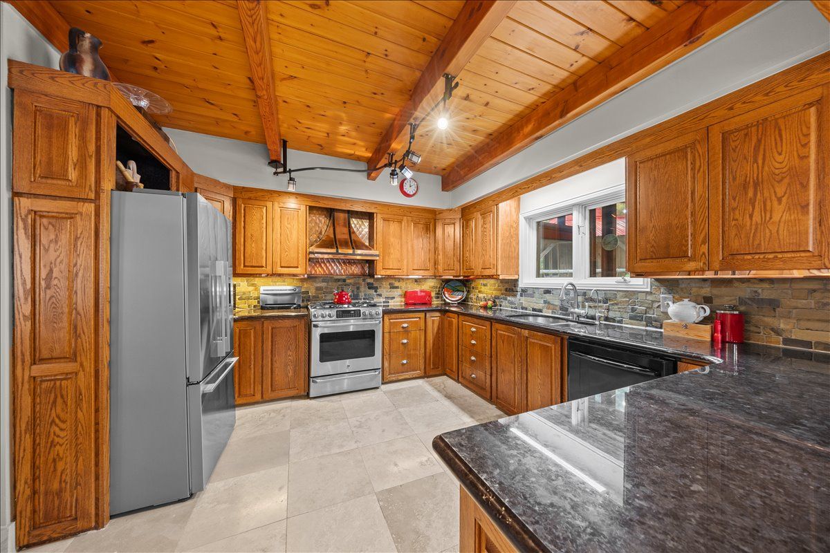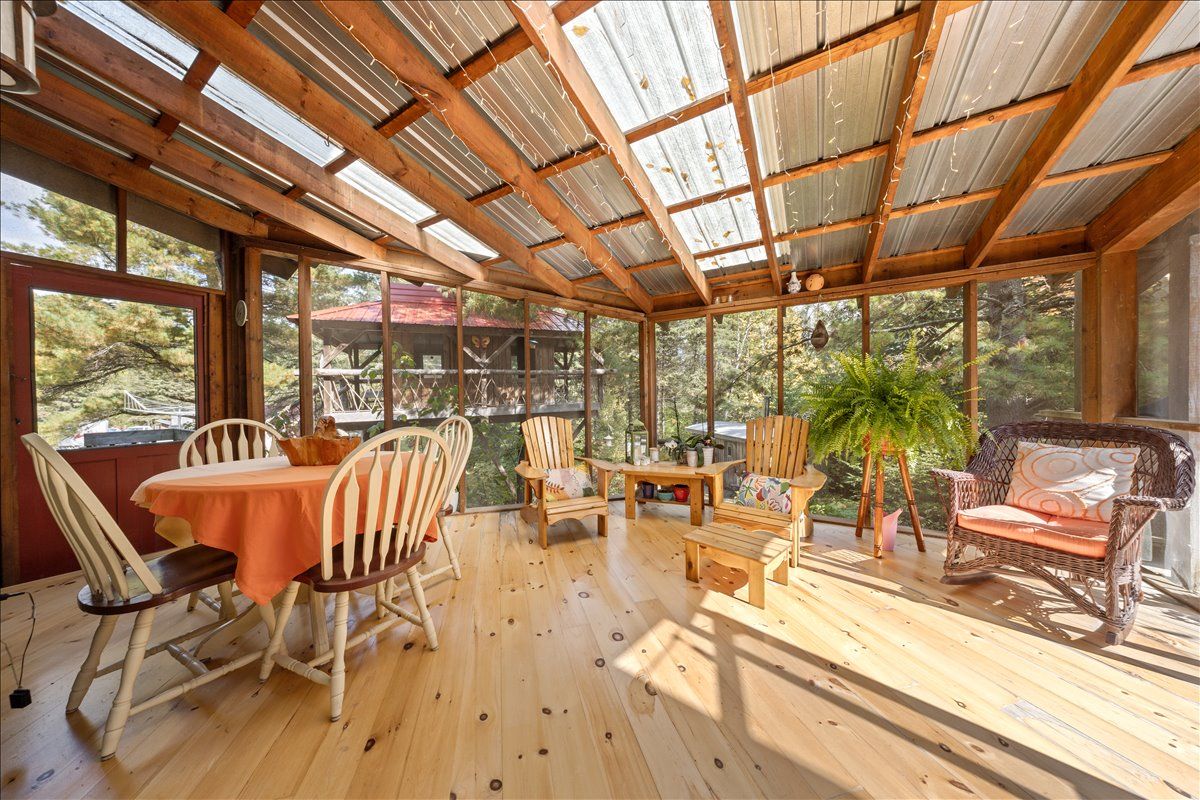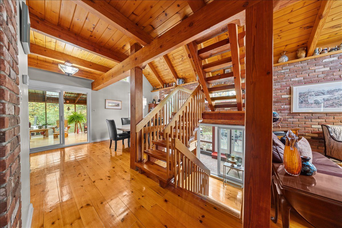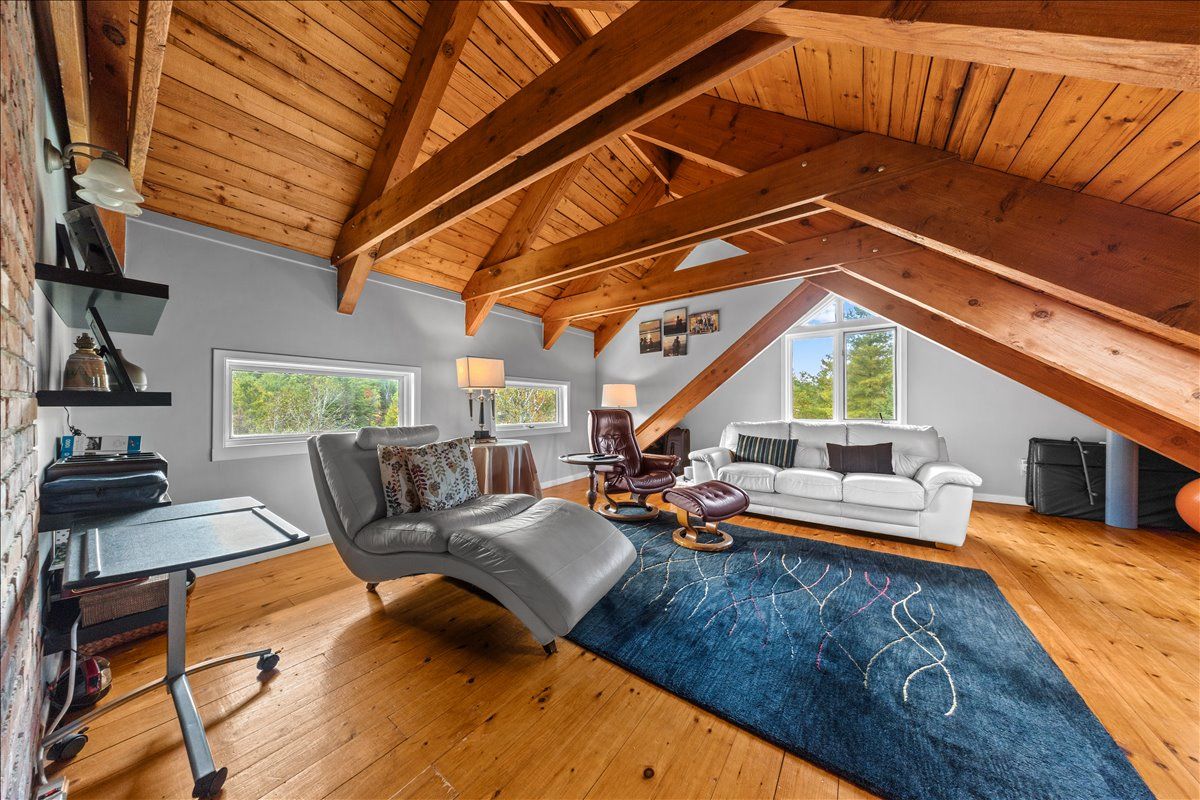 Incredible opportunity to own a one-of-a-kind custom home on 25 acres of private, wooded land with vast future potential. Designed with passive solar principles, this home features a south-facing double brick wall encapsulated by a greenhouse, maximizing energy efficiency and natural light throughout the seasons. Inside, handcrafted details shine with exposed structural bc fir beams, wide plank pine flooring, and custom oak kitchen cabinetry. The kitchen is both functional and beautiful, complete with stainless steel appliances and a custom hood fan, all thoughtfully integrated into the homes warm, natural aesthetic. The multi-level layout offers spacious principal rooms, vaulted ceilings, a screened-in porch, and flexible areas ideal for family living, working from home, or entertaining. Step outside to your private backyard oasis featuring a wood-burning sauna, scenic trails, and a custom treehouse nestled in the trees perfect for relaxation or play. A large detached shop provides excellent space for a home-based business or serious hobbyist, while the attached garage adds everyday convenience. Roofing has been thoughtfully maintained with new shingles installed in 2024, and durable metal sections designed for long-term performance. Located just 5 minutes to farm boy, 20 minutes to kanata, and featuring side yard frontage on hazeldean road, this home offers unmatched privacy with excellent proximity to amenities and significant future development potential thanks to its visibility and access. A truly rare property that combines craftsmanship, energy efficiency, and long-term opportunity.