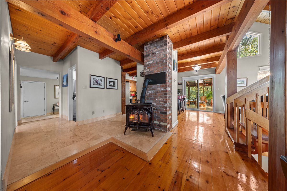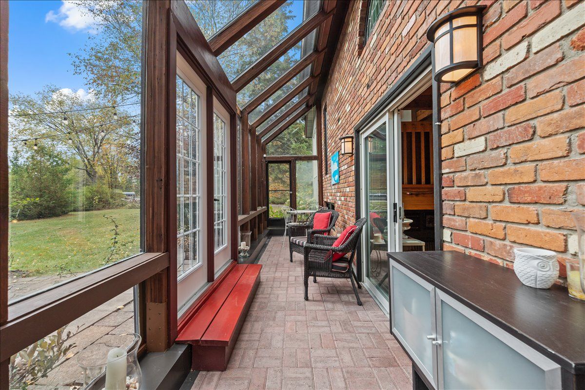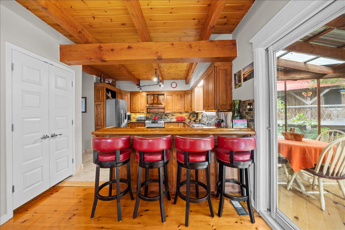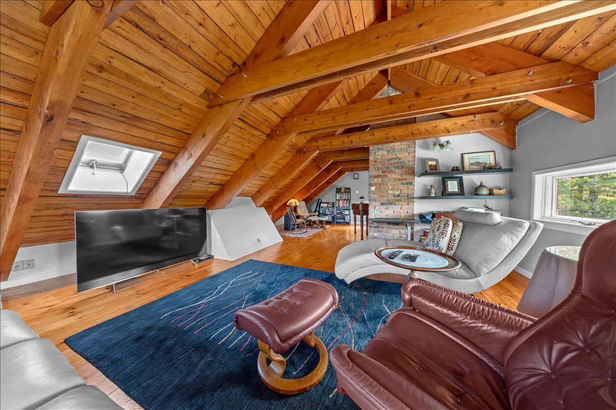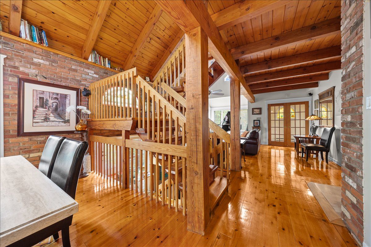 Incredible opportunity to own a one-of-a-kind custom home on 25 acres of private, wooded land with vast future potential. Designed with passive solar principles, this home features a south-facing double brick wall encapsulated by a greenhouse, maximizing energy efficiency and natural light throughout the seasons. Inside, handcrafted details shine with exposed structural bc fir beams, wide plank pine flooring, and custom oak kitchen cabinetry. The kitchen is both functional and beautiful, complete with stainless steel appliances and a custom hood fan, all thoughtfully integrated into the homes warm, natural aesthetic. The multi-level layout offers spacious principal rooms, vaulted ceilings, a screened-in porch, and flexible areas ideal for family living, working from home, or entertaining. Step outside to your private backyard oasis featuring a wood-burning sauna, scenic trails, and a custom treehouse nestled in the trees perfect for relaxation or play. A large detached shop provides excellent space for a home-based business or serious hobbyist, while the attached garage adds everyday convenience. Roofing has been thoughtfully maintained with new shingles installed in 2024, and durable metal sections designed for long-term performance. Located just 5 minutes to farm boy, 20 minutes to kanata, and featuring side yard frontage on hazeldean road, this home offers unmatched privacy with excellent proximity to amenities and significant future development potential thanks to its visibility and access. A truly rare property that combines craftsmanship, energy efficiency, and long-term opportunity.