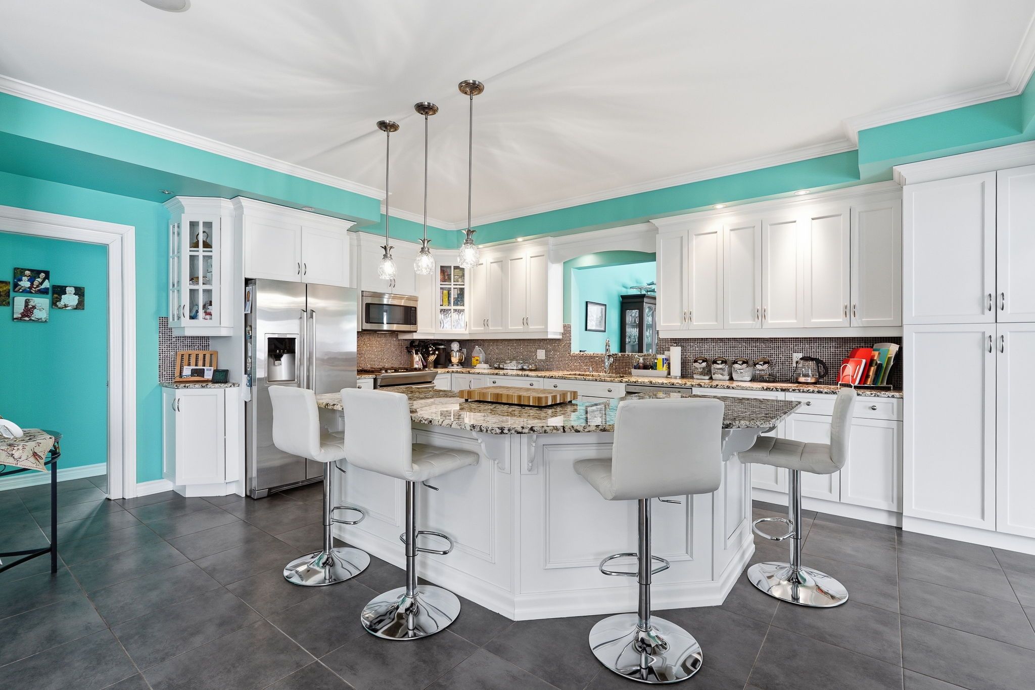 • Functional kitchen with Electrolux appliances and access to dining areas.