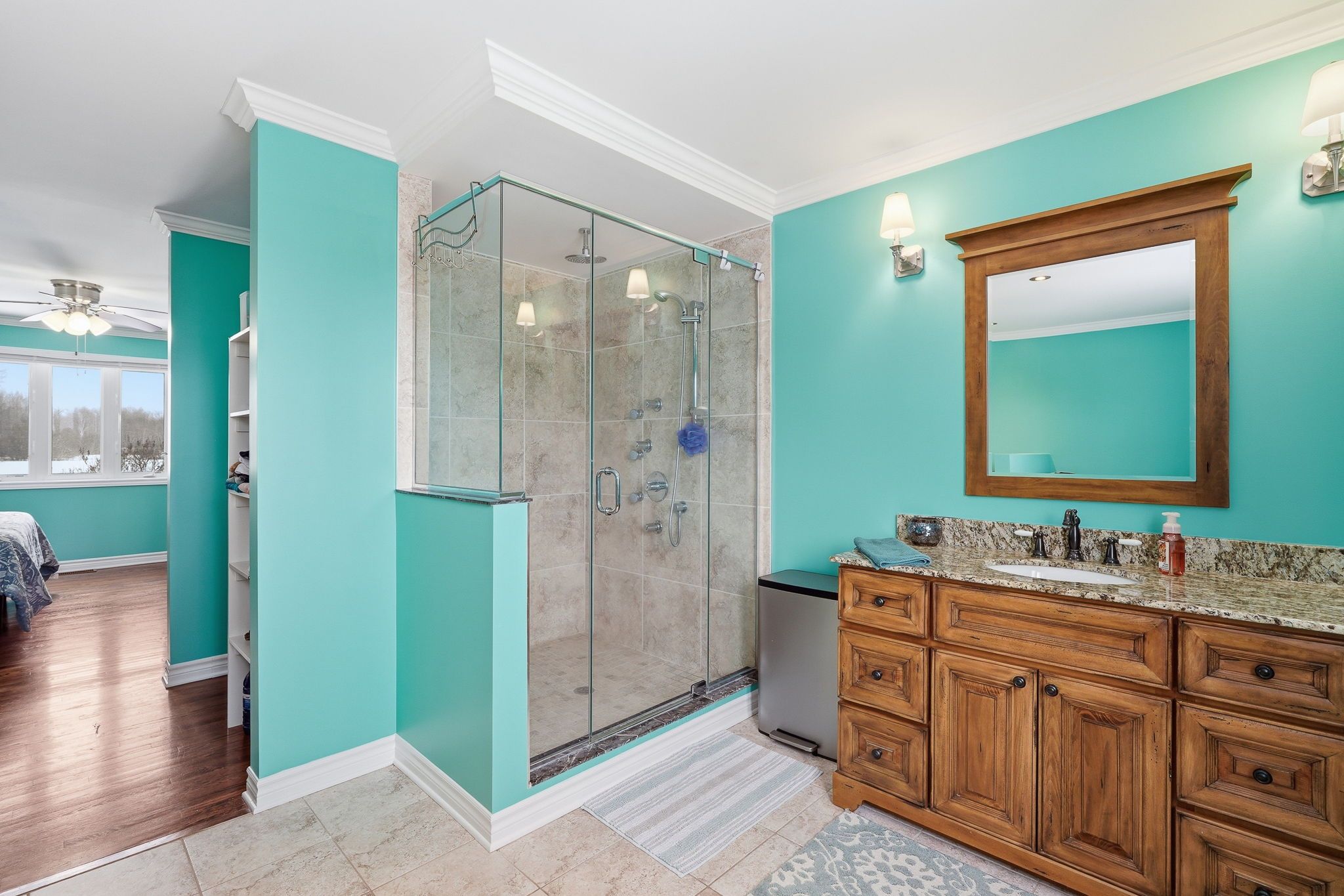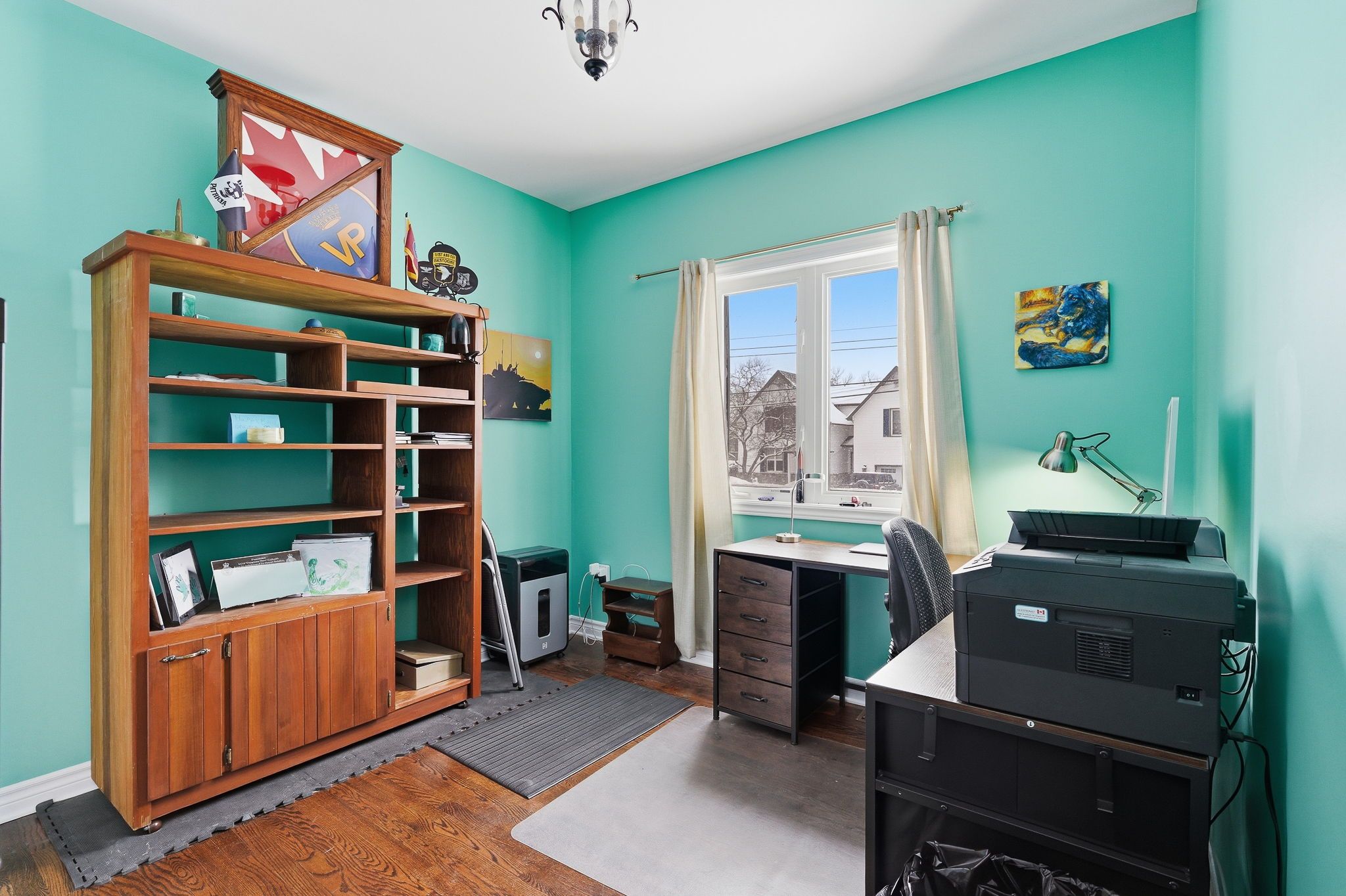• Versatile main-floor bedroom currently used as an office for extra flexibility.