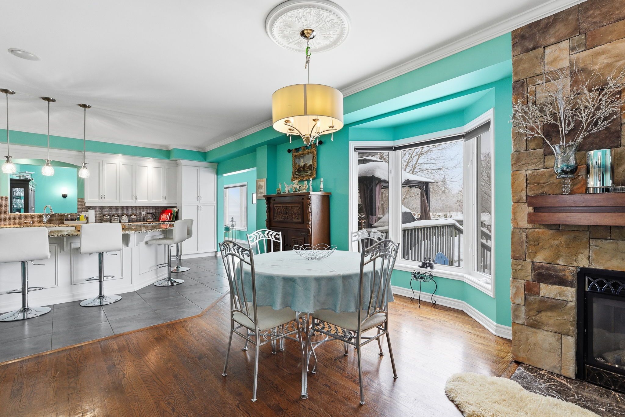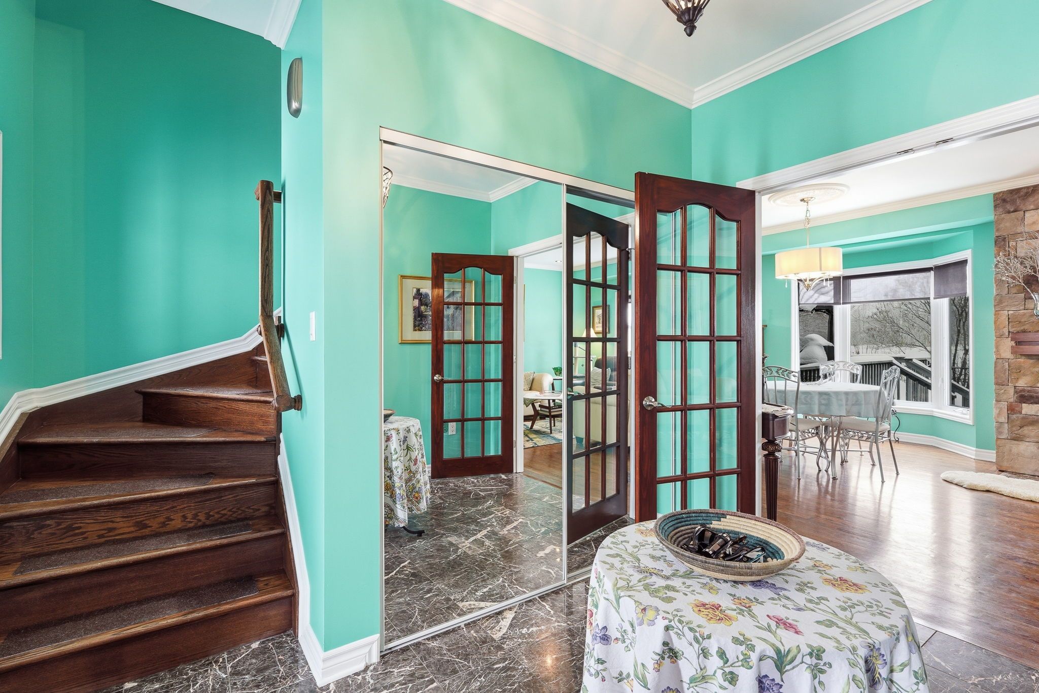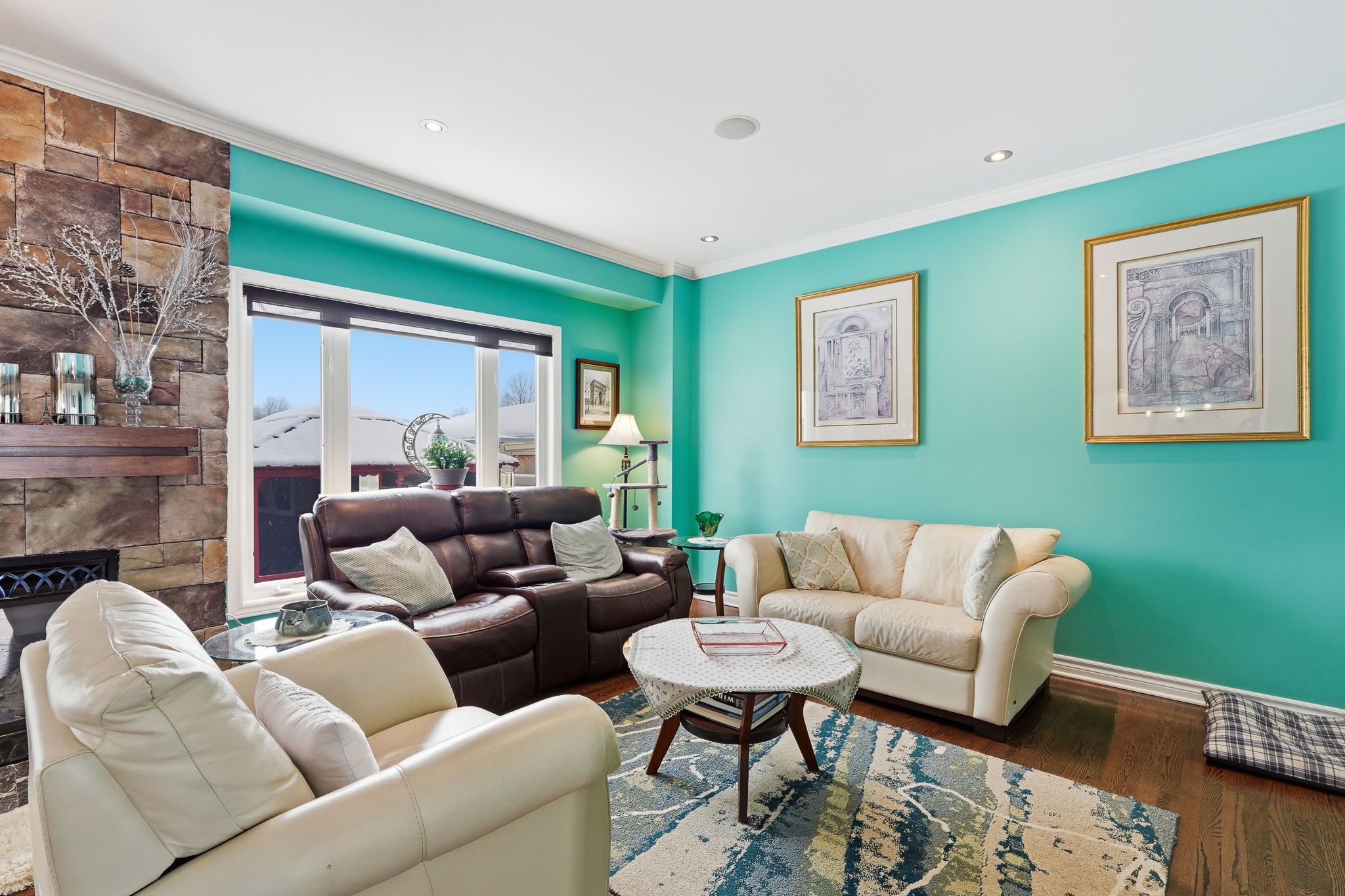 • Spacious foyer and bright living room with a cozy gas fireplace.