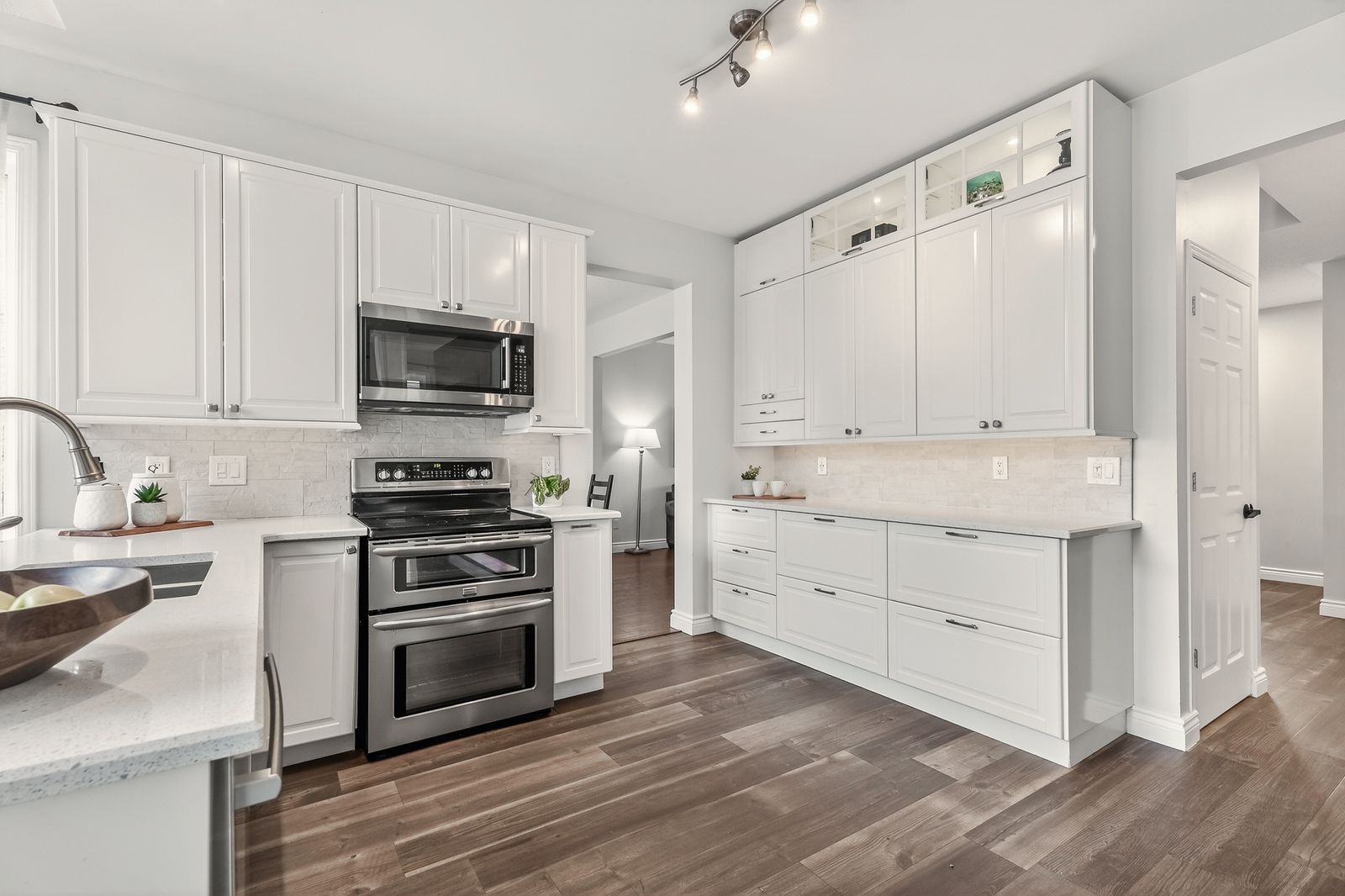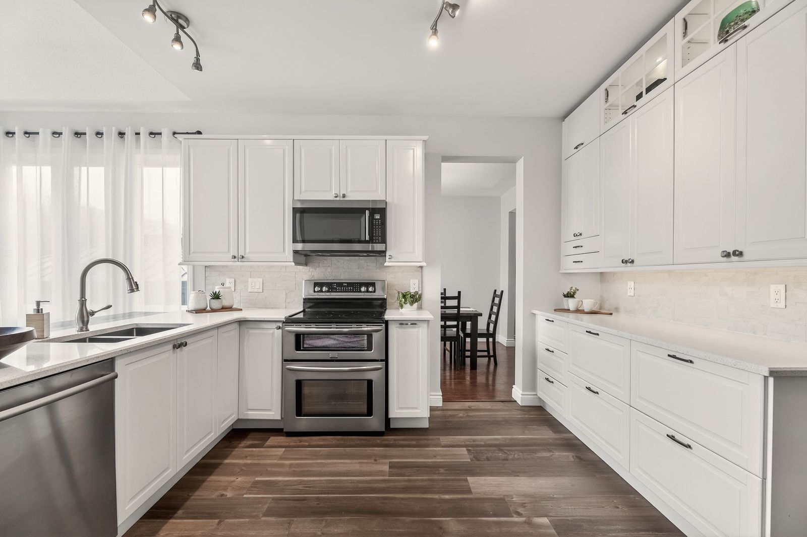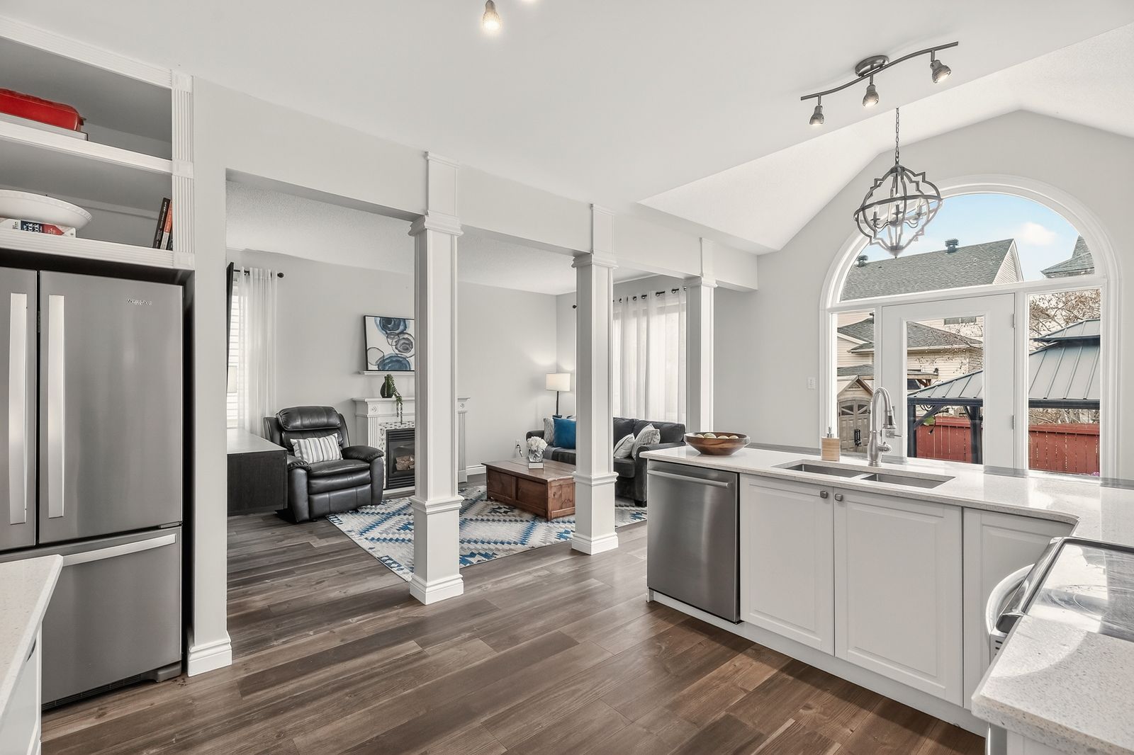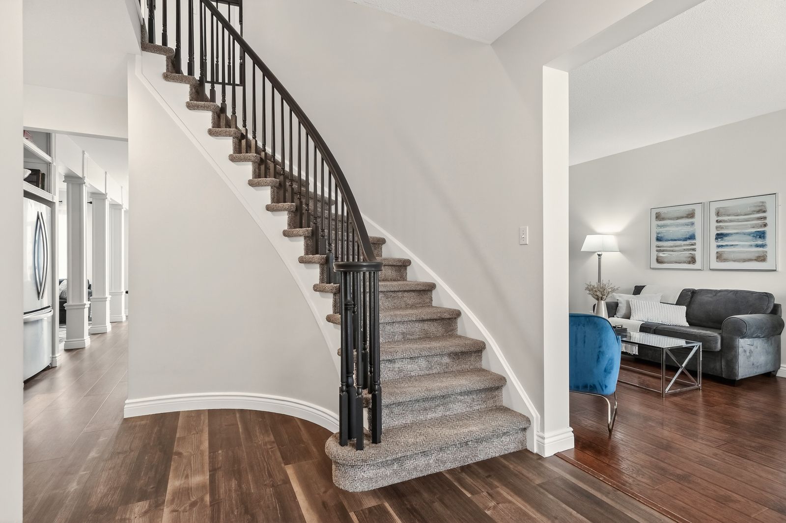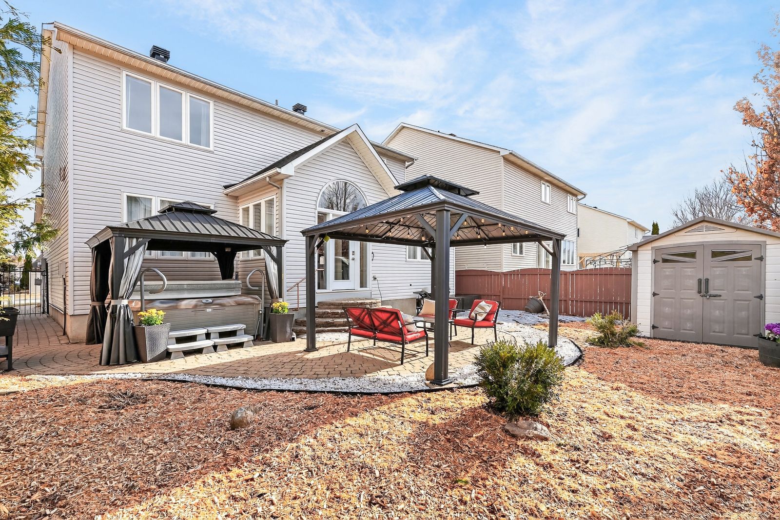 Set on a quiet street with minimal traffic, this beautifully maintained 6-bed, 4-bath home with a 2-car attached garage offers 2,352 sq ft above grade (as per mpac) plus a fully finished basement, with 4 bedrooms upstairs and 2 more in the basement. With many young families already on the street, a true sense of community is built right in. The surrounding area is hard to beat. Parks, a running track, baseball fields, a soccer pitch, an outdoor rink, walking paths, and playgrounds are all close by, along with schools across four different boards covering both elementary and high school. Shops and restaurants are just minutes away, and the trim park & ride is nearby with the lrt extension on its way. Inside, the main floor has separate living and dining rooms, a dedicated office, a mudroom, and a powder room. The renovated kitchen features quartz countertops, an undermount double sink, pot drawers, a pantry, in-cabinet lighting, and stainless steel appliances, including a double2 oven and french door fridge. An added breakfast bar adds casual dining space, and direct access to the backyard makes summer entertaining effortless. The adjacent family room is anchored by a natural gas fireplace and is the perfect place for winding down to watch your favourite tv show, sporting event or kids' show. Upstairs, the primary suite has a large walk-in closet and a 5-piece ensuite with a soaker tub, stand-up shower and double sinks. The three additional bedrooms are all comfortably sized and share a full 4-piece bathroom. The fully finished basement has a large rec room with pot lights, two additional bedrooms, a half bath, a utility room, and ample storage. Out back, the fully fenced and landscaped yard includes two gazebos, a hot tub, and a storage shed.